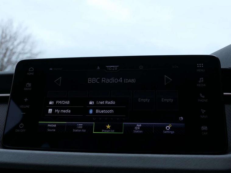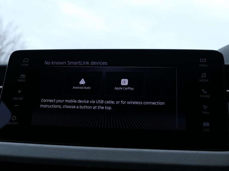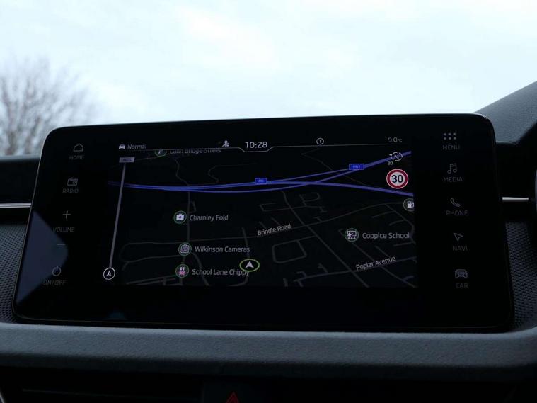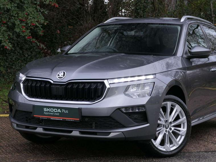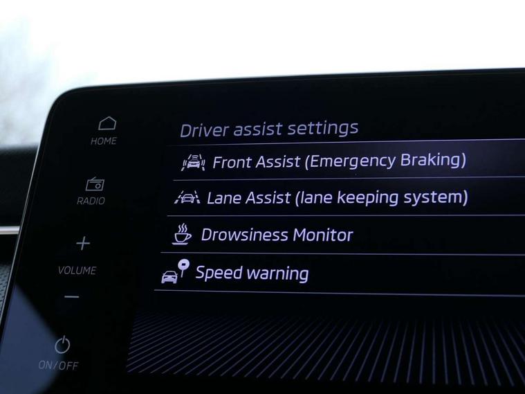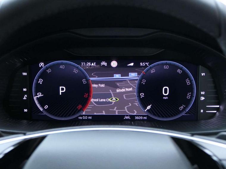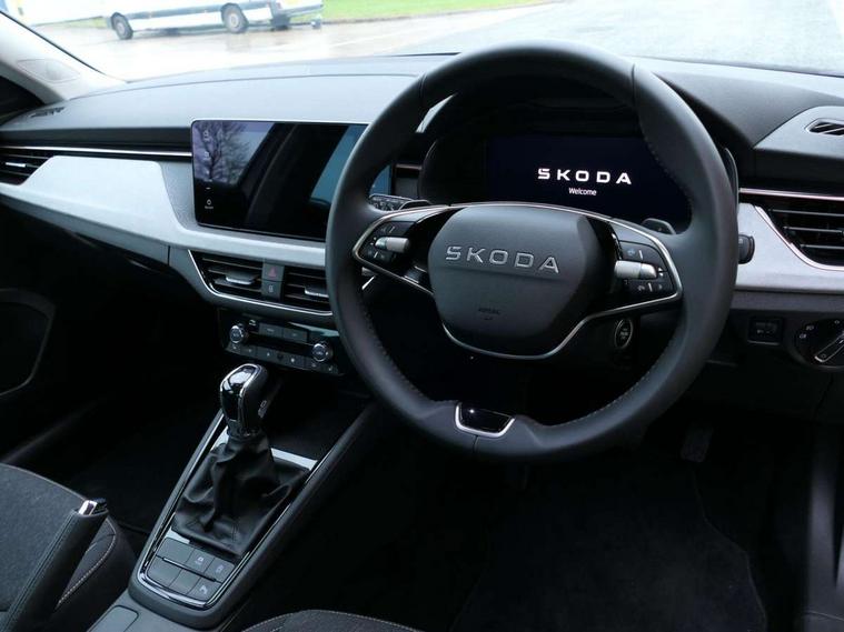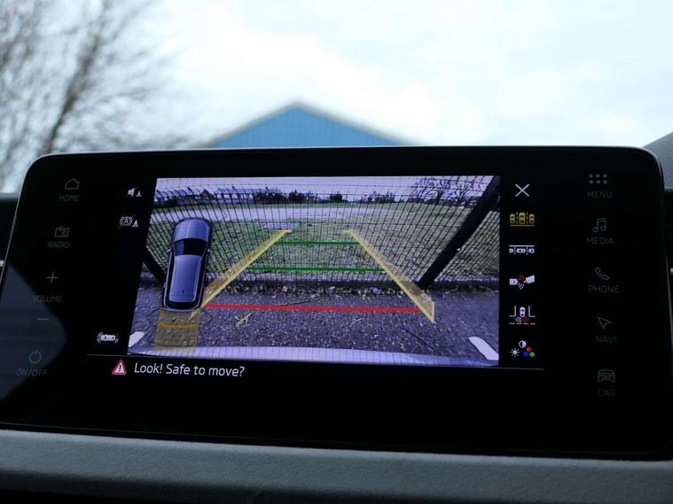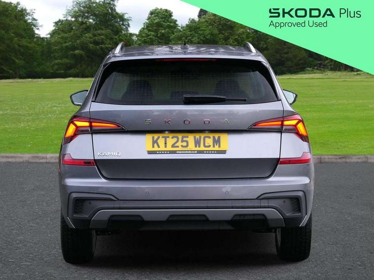 Advanced driver attention and drowsiness monitor, Bluetooth system, E-call, Front assist system, PAS, Rear parking sensors, Rear view camera, Service indicator, Speed limiter, Traffic sign recognition, Virtual cockpit with 10.25" display, Voice control system, Wireless smartlink, 4 USB C ports, 8 Speakers, 9.2" Skoda navigation display, DAB Digital radio, Auto dimming rear view mirror, Automatic headlight control with coming home and leaving home feature, Body colour bumpers, Body colour door mirrors and handles, Chrome grille surround, Chrome roof rails with chrome window surround, Front and rear electric windows, Heated rear window, LED daytime running lights, LED high beam, LED low beam, LED third brake light, Light sensors, Privacy glass, Rear side wing doors, Rear wiper, Ticket holder inside windscreen, 12V socket in luggage compartment, 3 seat bench in 2nd row, Accent black door inserts, Ambient lighting in white/red, Cargo elements, Chrome inner door handles, Copper hotstamping, Driver and passenger sun visors with vanity mirror, Dual zone climate control, Front and rear roof lights, Front centre armrest, Front head restraints, Glove compartment with illumination, Height adjustable driver seat, Height adjustable front passenger seat, Ice scraper, Inner circulation control with pollen filter, ISOFIX on front passenger seat, Isofix preparation for back seats, Leather gearknob and handbrake lever, Lodge cloth upholstery, Manual lumbar support for front seats, Net package and top tether hooks in boot space, Net under rear shelf, Overhead glasses storage compartment, Pocket on the back of both front seats include mobile phone pockets, Rake/reach adjustable steering wheel, Reading lights, Rear centre armrests, Single front passenger seat, Suedia grey decor inserts, Textile floor mats, Third rear headrest, Top tether for front passenger seat, Umbrella in driver's door, Convenience pack - Kamiq, 3x3 point rear seatbelts, Airbags - driver and front passenger, Disc brakes, ESP, Extended and predictive pedestrian/cyclist protection, Front passenger airbag deactivation switch, Front side airbags with curtain airbags, Hill hold control, Manual leather parking brake, Manual rear child locks, One tone horn, Seatbelt reminder for driver an co-driver, Traction control, Tyre pressure monitor, Anti-theft alarm system with interior monitoring, backup horn, towing protection and remote central locking with SAFE system, Anti-theft wheel bolts, Electronic engine immobilizer,