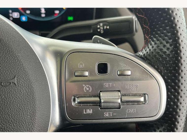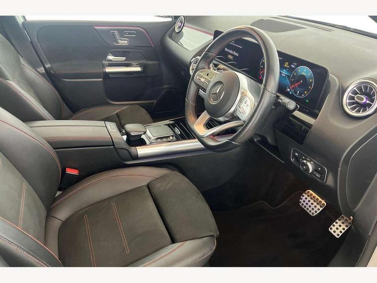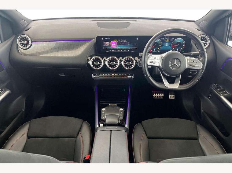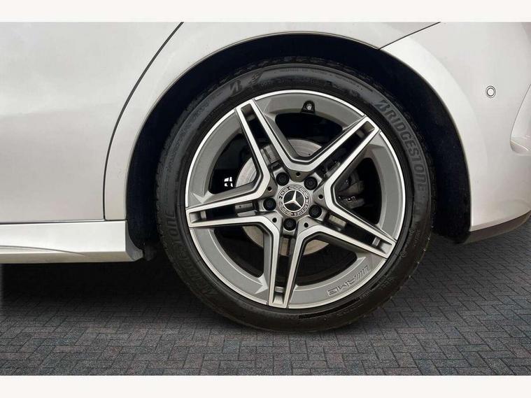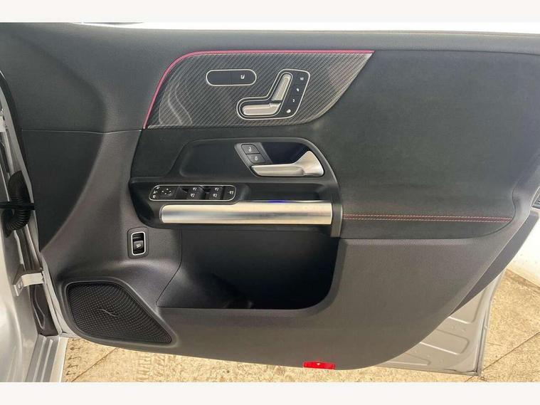 10.25" Digital instrument cluster display screen, 10.25" media display, 7 inch digital cockpit display, Attention assist - Monitors steering behaviour and long journey fatigue, Brake pad wear indicator warning light, Dual bluetooth interfaces, DYNAMIC SELECT with a choice of driving modes (ECO, Comfort, Sport and Individual), Easy-pack tailgate, ECO start/stop function, Fluid level warning indicator for fuel, oil, coolant and washer fluid, Lamp failure indicator, Live traffic information, MBUX multimedia system with Hey Mercedes, DAB Digital Radio and hard disc navigation, Mercedes me connect including emergency call system, accident recovery, breakdown and maintenance management, Outside temperature gauge, Owners manual and service booklet in English, Pre-installation for private car sharing, Pre-installation for Vehicle Monitoring, Pre-installation for Vehicle Setup, Preinstallation for Mercedes Benz link, Service indicator (ASSYST), Smartphone integration with Apple CarPlay and Android auto, Speed sensitive power steering, Traffic sign assist, Trip computer in multifunction display with current consumption indicator, Wireless charging, Lowered comfort suspension, Rear axle multi-link, 2 USB ports (type C) in rear stowage compartment and one in front of center console, Mercedes-Benz advanced sound system - 225W, 4 Electric Front and Rear windows, Active radiator shutters open for cooling air and close when not needed to improve aerodynamics and fuel efficiency, Adaptive brake lights, AMG body styling - AMG front apron with chrome front splitter, AMG side sill panels and AMG rear apron with chrome trim and visible exhaust tailpipe, Body coloured bumpers, Body coloured door handles, Body coloured side skirts, Car wash function, Chrome beltline strips, Diamond radiator grille pins in chrome with silver painted louvres and chrome insert, Electric adjustable and heated door mirrors with integrated LED side indicators, Exhaust system with 2 Visible tailpipe trim elements and rear apron with trim in chrome, Headlamp assist automatic headlamp activation, Heated glass rear windscreen + timer control, High level LED third brake light, Interior mirror with black reading lamps and frameless, LED high performance headlamps with integrated LED daytime running lights, LED tail lamp, Multibeam LED with adaptive highbeam assist plus, Panoramic sliding sunroof, Pre-installation for trailer coupling, Privacy glass, Radio aerial, Rain sensing windscreen wipers with two sensitivity settings, Rear fog lamp, Rear windscreen wiper, Window line trim strip in chrome, 3 spoke multifunction sports steering wheel in nappa leather with flattened bottom and perforated grip area, 40:20:40 split folding rear seat backrests, Air conditioning - air vents with silver chrome surround, Air conditioning - Two zone thermotronic luxury automatic climate control with display, Artico man-made leather/Microfibre Dinamica upholstery with red contrast stitching, Automatic child seat recognition sensor, Black roof lining, Brushed stainless steel sports pedals with rubber studs, Electrically adjustable front memory seats including lumbar support, Floor mats with stitched AMG lettering, Freight packaging without tie-down hooks, Front and rear head restraints, Front centre armrest with stowage, Front seat cushion length adjustment, Front sports seats with adjustable head restraints, Galvanished gear shift paddles on steering wheel, Heated front seats, Illuminated glove compartment stowage, Interior lighting - 64 colour Ambient lighting, Luggage net on driver/front passenger seat backrest, Manually height and reach adjustable steering column, Rear armrest with 2 cupholders, Rear seats with fore/aft adjustment, Seat occupancy sensor for front passenger seat, Stowage compartment in centre console with retractable cover, Sunvisors with illuminated vanity mirrors, Touchpad on center console, Twin front cupholders, Two outer rear seat isofix and top tether child seat fixing points, Interior lighting with light and sight pack - B Class, Mirror package - B Class, Parking pack - B Class, Seat comfort pack - B Class, 3 rear three point seatbelts, Active bonnet pedestrian safety measure which detects an impact and raises bonnet, Active brake assist includes forward collision warning system with autonomous braking, Adaptive brake assist with hold function and hill start assist, Airbags - kneebag for driver, Anti-lock braking system (ABS) with brake assist, Black seat belts, Childproof locks manually operated for rear doors and electrically operated for rear power windows, Crash responsive emergency lighting, Curve dynamic assist, Driver and front passenger head and sidebags, Driver and front passenger windowbags, Dual stage driver/passenger airbags, Electric parking brake, Electronic stability programme with acceleration skid control, Front and rear seatbelt reminder, Front brake callipers with Mercedes Benz lettering, Tyre pressure monitoring system, Warning triangle and first aid kit, Alarm system with immobiliser and interior protection -Thatcham category 1, Keyless entry lock/unlock, Remote central locking and crash sensor with emergency opening function, Urban guard vehicle protection - Anti theft alarm system, tow away protection with visual and acoustic warning and alarm siren, Carbon structure trim, Light switch in high-gloss black with ring in silver chrome, 18" AMG 5 twin spoke design alloy wheels painted in titanium grey with high sheen finish, Summer tyres, Tirefit tyre sealant kit,