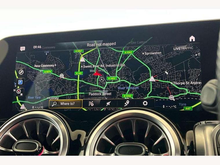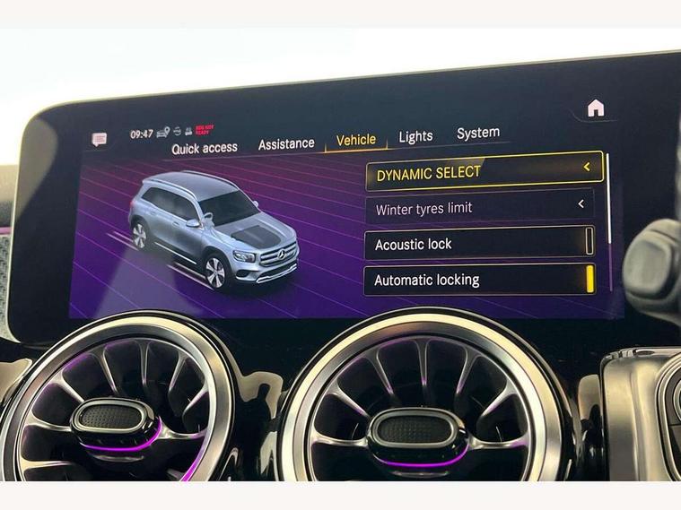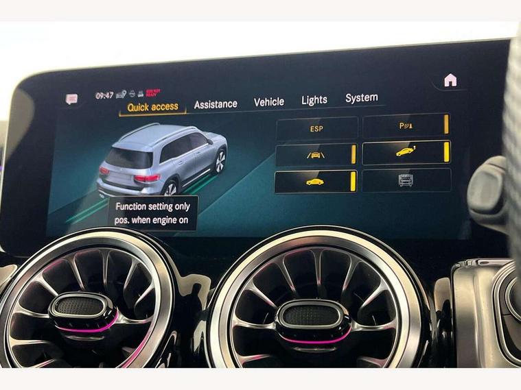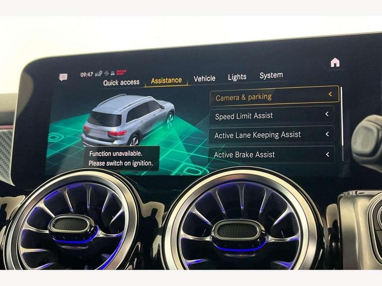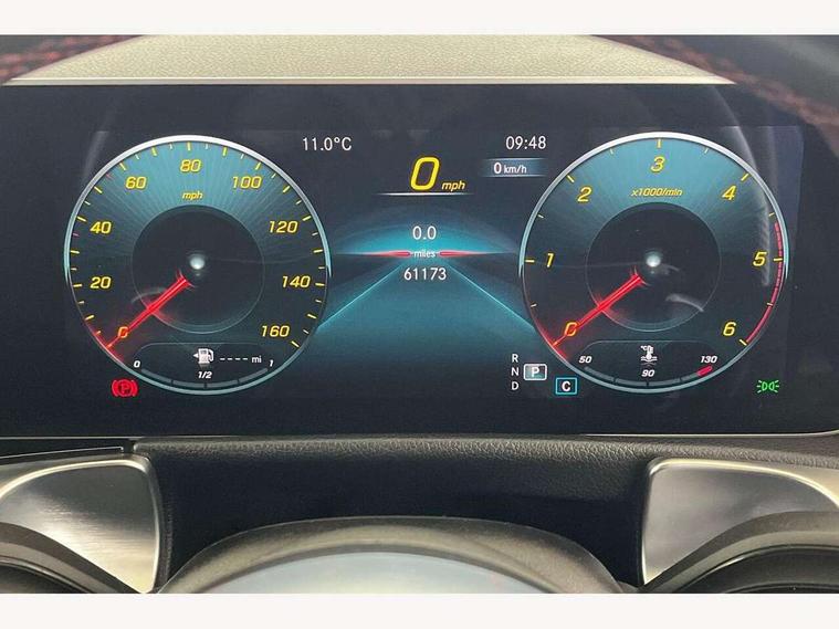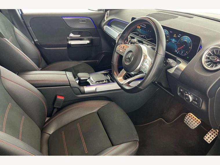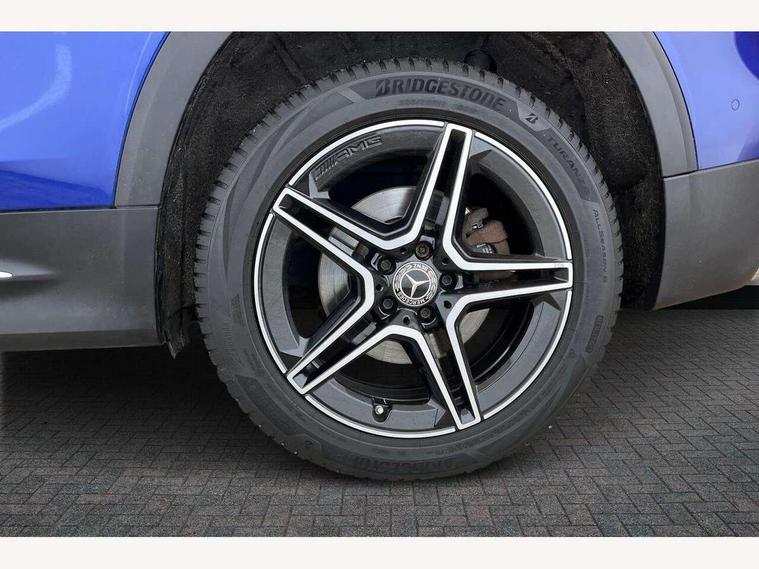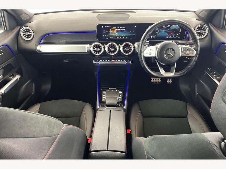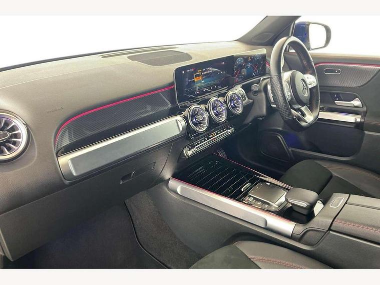 10.25" Digital instrument cluster display screen, 10.25" Digital media screen display, Active lane keeping assist, Attention assist - Monitors steering behaviour and long journey fatigue, Brake pad wear indicator warning light, Car wash mode, Cruise control with limiter, DYNAMIC SELECT with a choice of driving modes (ECO, Comfort, Sport and Individual), ECO start/stop function, Fluid level warning indicator for fuel, oil, coolant and washer fluid, Hard disk navigation, Hey Mercedes Voice activation, Lamp failure indicator, Mercedes me connect including emergency call system, accident recovery, breakdown and maintenance management, Mercedes me remote services, Outside temperature gauge, Owners manual and service booklet in English, Parameter steering system, Pre-installation of private car share, Preinstallation for parking damage notification, Radio aerial integrated into front and rear windshields, Service indicator (ASSYST), Smartphone integration with Apple CarPlay and Android auto, Speed limit assist, Trip computer in multifunction display with current consumption indicator, 23.8 litre AdBlue fuel tank, Comfort suspension, Rear axle multi-link, DAB digital radio tuner, MBUX multimedia system with DAB digital radio and touchpad including satellite navigation, Mercedes Benz sound system (225 W) with 10 speakers, 1 central speaker, speakers on doors, a tweeter on door, one sub woofer + boost amplifier, Pre installation for Mercedes Benz Link, USB (type C) port in front stowage compartment, USB (type C) ports (2) in stowage compartment, Adaptive brake lights, Aerial for GPS, AMG bodystyling door panels black grained with chrome plated inserts, AMG bodystyling front apron with chrome splitter, AMG bodystyling rear apron with diffuser optics and chrome trim element, AMG specific front and rear bumper including underride guard in high gloss chrome, Beltline strips and weather strip in chrome, Body coloured bumpers, Body coloured door handles with chrome insert for keyless entry, Body coloured door mirror caps, Electric adjustable and heated door mirrors with integrated LED side indicators, Exhaust system with dual flow exhaust pipes (non-functional), Front and rear electric windows, Headlamp assist automatic headlamp activation, Heated glass rear windscreen + timer control, High level LED third brake light, Interior mirror with black reading lamps and frameless, LED high performance headlamps with integrated LED daytime running lights, LED tail lamp, Polished aluminium roof rails, Privacy glass with dark tinting on rear side windows and rear window, Radiator grille with pins in chrome and single louvre with chrome insert, Rain sensor windscreen wipers, Rear fog lamp, Rear side wing doors, Rear wiper, Two visible tailpipe trim elements exhaust, 3 seat bench in 2nd row, 3 spoke multifunction sport steering wheel in nappa leather, Air conditioning - Two zone thermotronic luxury automatic climate control with display, AMG sports pedals with brushed stainless steel surfaces and black rubber studs, Artico man-made leather/Microcut microfibre upholstery with red contrast stitching, Automatic child seat recognition sensor, Black floor mats with AMG lettering, Black roof lining, Fore/aft adjustment rear seats, Freight packaging with tie-down hooks, Front centre armrest with stowage, Front door sills with illuminated changeable cover, Front passenger grab handle with brushed side silver chrome, Front sports seats with adjustable head restraints, Galvanished gear shift paddles on steering wheel, Heated front seats, Height/reach adjustable steering column, Interior lighting - 64 colour Ambient lighting, Luggage net on driver/front passenger seat backrest, Net in front passenger footwell, Rear armrest with two integral cup holders for drinks, Rear seat easy entry, Single front passenger seat, Stowage compartment in centre console, Stowage compartment with retractable cover, Third row of seats for two people on rear seat, Touchpad on center console, Twin front cup holders, Two outer rear seat isofix and top tether child seat fixing points, Interior lighting with light and sight pack - GLB, Keyless go comfort pack - GLB with easy pack tailgate, Mirror pack - GLB, Parking pack - GLB, Seat comfort package - GLB, 3 rear 3 point seatbelts, Active bonnet pedestrain safety measure which detects an impact and raises bonnet by 65mm, Active brake assist includes forward collision warning system with autonomous braking, Adaptive brake assist with hold function and hill start assist, Airbags - kneebag for driver, Anti-lock braking system (ABS) with brake assist, Childproof locks manually operated for rear doors and electrically operated for rear power windows, Crash responsive emergency lighting, Curve dynamic assist, Driver and front passenger head and sidebags, Driver and front passenger windowbags, Dual stage driver and front passenger airbags, Electronic parking brake, Electronic stability programme with acceleration skid control, Front and rear seatbelt reminder, Front brake callipers with Mercedes Benz lettering, Front passenger seat occupancy sensor, Tyre pressure monitoring system, Warning triangle and first aid kit, Guard 360 degree vehicle protection - Anti theft alarm system, tow away protection with visual, acoustic warning and alarm, Interior monitoring system, KEYLESS-GO Spanner communicates with the vehicle within two metres of the door, Remote central locking and crash sensor with emergency opening function, Thatcham category 1 alarm system with immobiliser and interior protection, Vehicle key with decorative surround in chrome, Black air vents with chrome surround, Carbon structure trim, 19" AMG 5 twin spoke light alloy wheels painted in high gloss black with high sheen finish, Summer tyres, Tirefit tyre sealant kit,