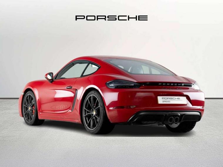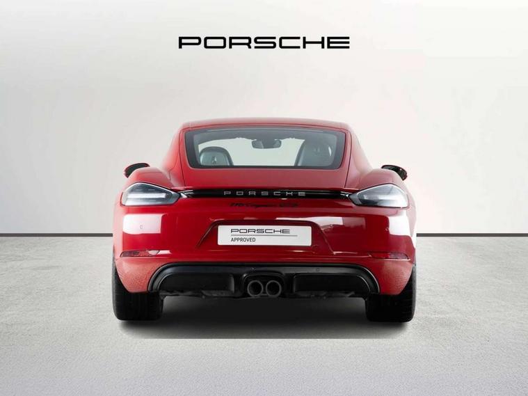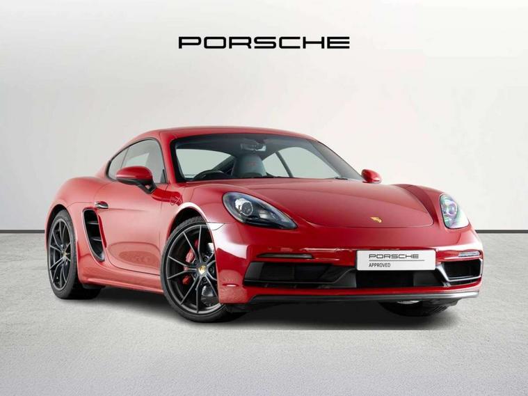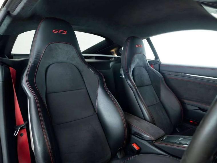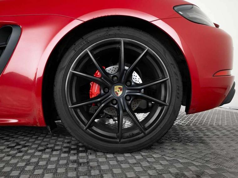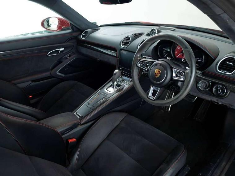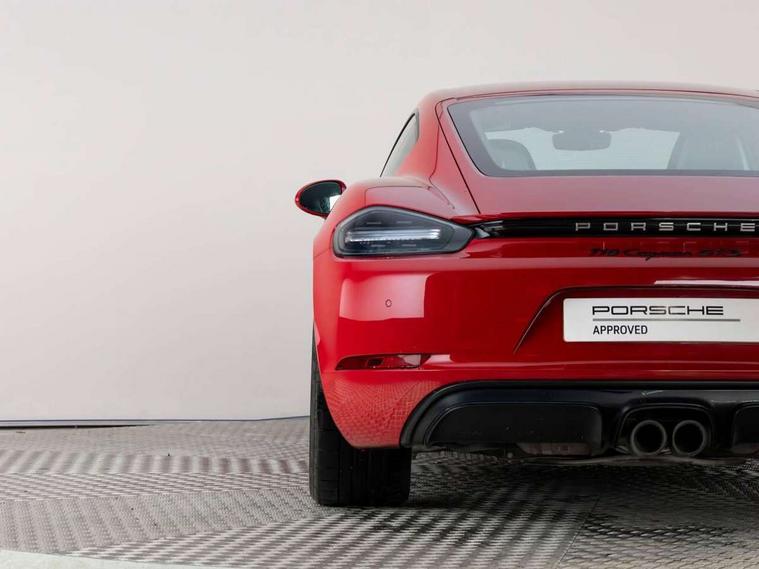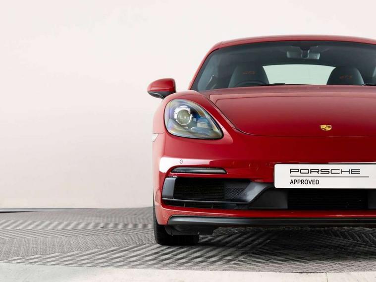 Connect Plus, Apple CarPlay, telephone module, wireless internet access, carfinder, remote vehicle status, remote service, vehicle track, Digital displays for vehicle speed, chosen gear, odometer, trip odometer and clock, Instrument cluster with central rev counter and high-resolution 4.6 inch colour display, Porsche Communication Management (PCM) including online navigation module, mobile phone preparation, audio interfaces and voice control system, 64 litre fuel tank, Gasoline particulate filter, Porsche Doppelkupplung (PDK), Porsche Stability Management (PSM), ABS with extended brake functions, Porsche TORQUE Vectoring (PTV) with mechanical rear differential lock, Turbocharger with variable turbine geometry (VTG) and intercooler, VarioCam Plus variable valve timing and switchable valve lift, DAB Digital radio, Integrated compatible SIM including Porsche Connect Services, Wifi and music streaming, Aerodynamic wipers, Automatic headlight activation including welcome home lighting, Automatically extending rear boot spoiler, Black model designation on doors, Body colour bumpers, Electrically adjustable heated exterior mirrors on door waist rails, aspherical on driver's side, Green tinted heat insulating glass, GTS front apron partially painted in black, GTS rear apron partially painted in black, Intelligent lightweight body in Aluminium/Steel composite construction, LED tail lights and integral 4 point brake lights and reversing lights, Painted Porsche logo and model designation, Power windows with one touch operation and door seal protection, Separate auxiliary lights in the front end with LED indicators and position lights, Top tinted windscreen, Twin tract sports exhaust system with black central twin tailpipe in stainless steel, Wide opening rear hatch with heated screen, Windscreen washer system with two wiper speeds and washer jets, 12V sockets in passenger footwell and centre console storage compartment, Adjustable fan with air recirculation and defroster functions, Clothes hooks on front seat backrests, Door sill guards with model designation logo, Elevated centre console with uncovered storage compartment and closed storage compartment, Front and rear luggage compartments, Front centre console storage box, GT alcantara sports steering wheel and PDK gear selector, LED reading lights, orientation, ignition lock, additionally luggage compartment and glove compartment lighting, Lockable glovebox, Smooth finish leather on steering wheel rim, gear lever and door handles, Storage compartments in each doors, Three way catalytic converter and on board diagnostics for monitoring emission control system, Two individual cup holders (integral to dashboard trim strip), Sport chrono package including mode switch - Cayman, Electrically controlled parking brake, Front and rear 4 piston aluminium monobloc fixed calipers, discs internally vented and cross drilled, front/rear disc diameter, brake calipers in red, Front and rear lightweight spring strut axle, Full size driver and passenger airbags, Porsche side impact protection doors with thorax airbag in outer backrest side bolster and head airbag for driver/passenger in door panel, Tyre pressure monitoring system, Alarm system with interior surveillance, Anti-theft wheel bolts, Auto start/stop function including coasting (in connection with PDK), Engine immobiliser with in key transponder, central locking and remote control, Tyre sealing compound and electric air compressor kit,