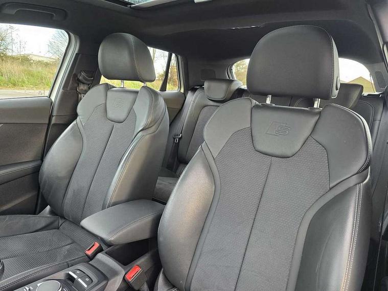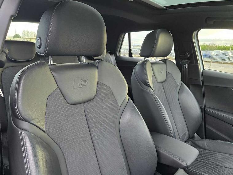 Aluminium interior element, Matt brushed aluminium trim inlays, Anti theft alarm, Anti theft wheel bolts, 2 x SDXC card reader, 8 passive loudspeakers, DAB Digital radio, DVD Drive, 3x3 point rear seatbelts, 6 airbags - Front, curtain and front side airbags, Electromechanical parking brake, Electronic stabilisation control including ABS, ASR and EDL, Hill hold assist, Pre-sense front with pedestrian recognition, Seatbelt monitoring, Tyre pressure warning light, Warning triangle and first aid kit, Auto dimming rear view mirror, Black window trims, Body colour door mirrors, Electrically adjustable, auto dimming and heated door mirrors with integrated LED side indicators, Front windscreen with grey tinted sunband, LED headlights with LED rear lights, S Line badges on the front wings, S Line body styling - front and rear bumpers, side skirts, radiator grille, rear diffuser insert and front air intakes, Wheel arch trims in manhattan grey, 4-way electric lumbar support for front seats including seat height adjustment for both front seat, 60/40 split folding rear seat bench, Black cloth headlining, Electronically operated child locks, Front and rear head restraints, Front centre armrest, Front/rear floor mats, Height/reach adjust steering wheel, Illuminated door sill trims with S logo, ISOFIX child seat mounting for front passenger with airbag deactivation and outer rear seat including top tether attachment point for outer rear seats, Stainless steel pedals, Tool kit, Audi connect navigation and infotainment includes innovative services, Audi connect remote and control connects your vehicle to your smartphone, Audi drive select, Audi smartphone interface, Audi virtual cockpit, Automatic start/stop system with recuperation, Bluetooth interface includes bluetooth audio streaming, Cruise control, MMI navigation plus with MMI touch, Power operated tailgate, Progressive steering, Rear parking sensors,