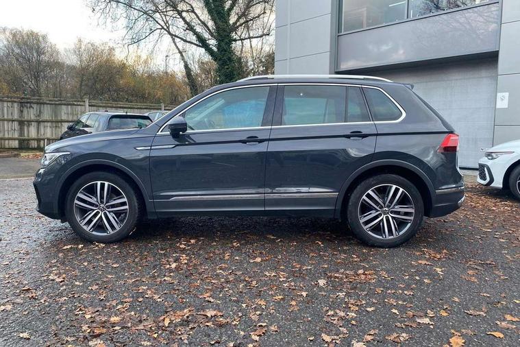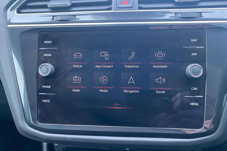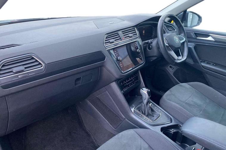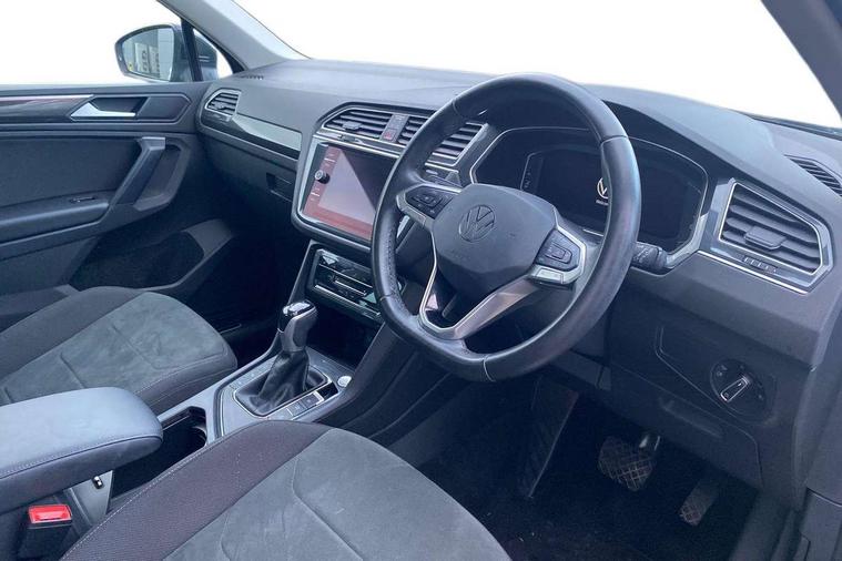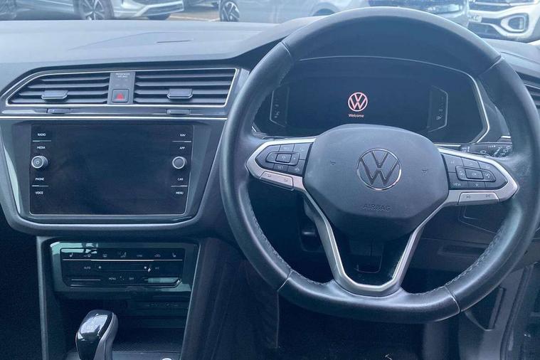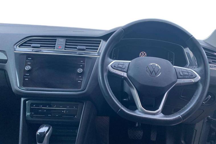 Adaptive cruise control ACC stop and go including speed limiter, App-Connect incl. App-Connect Wireless for Apple CarPlay and Android Auto, Bluetooth phone integration system, Distance control assist, Driver alert system, Driver profile selection, Dynamic road sign display, eCall emergency call system, Electromechanical speed sensitive power steering, Engine start/stop button, Lane keeping system Lane Assist, Lights on warning, Motorised electric tailgate operated via key fob, drivers door and foot movement under tailgate, Multifunction front facing camera, Outside temperature display, Premium multifunction display with multi colour display, Remote control boot opening, Rev counter, Revision / skills operating concept travel assistant, Service interval indicator, Speed limit display, Start/stop system with regenerative braking, Tailgate/trunk lid unlocking from outside, Trip computer, Warning sound and light for doors and tailgate open, Battery regeneration during braking, XDS electronic differential lock for improved traction and handling, 4 X 20 watt output, 8 Speakers, Diversity antenna for FM reception, Radio, SD card slot, Simultaneous pairing of 2 compatible mobile devices, SMS functionality - read, compose and send SMS messages using touch-screen display, Title and cover art display, USB C ports, Aluminium door sill protectors, Auto dimming interior rear view mirror, Automatic headlight control system, Body colour door handles, Body coloured bumpers, Body coloured door mirrors with integrated indicators, Coming/leaving home lighting function, Dynamic headlight range control, Front and rear electric windows, Heated rear window, High level 3rd brake light, IQ light-Adv high beam, Dynamic light assist for LED matrix headlamp+LED separate DRL+DCL, dark red rear LED tech, Poor weather light+ cornering light, Laminated safety glass windshield, heat and sound insulating, LED rear number plate lights, Poor weather light and cornering light, Privacy glass for rear side windows and rear window, Rain sensor windscreen wipers, Rear exhaust tailpipe, Rear fog lamp, Rear side wing doors, Rear windscreen washer and wiper with interval delay, Side and rear windows in heat insulating glass, Tilting and sliding panoramic sunroof with rear panoramic sunroof, Trailer Stability Programme, Windscreen wipers/ intermittent wipe + 4 position delay, 12V outlet in center console rear and in luggage compartment, 12V outlet in front and tray, 2 cup holders in front, 2 LED front reading lights, 2 LED rear reading lights, 3 bench rear seats in 2nd row, 3 rear headrests, 4 load lashing points, 40:20:40 split folding rear seats, Air Care Climatronic 3 zone automatic climate control with enhanced air filter and controls in the rear, Backrest release for left front seat, Climate control unit rear with touch function, Door and side trim panel in foam film and woven fabric, Front centre armrest, Front footwell illumination, Front seats head restraints (x-adjustment), Height adjustable front seats, Height/reach adjust steering wheel, Instrument lighting white adjustable panel illumination, Interior light with delay, Isofix Preparation 2 Rear child seats, Leather gear knob, Lockable cooled glovebox, Luggage compartment lighting, Luggage net, Rear bench seat asymetrically split folding, longitudinally movable and folding with load-through hatch and center armrest, Remote unlocking for rear seat backrest, Removable luggage cover, Removable rear headrests, Safety optimised front head restraints, Single front passenger seat, Sliding/reclining rear seats, Standard rear seat release, Storage compartment in driver's door, Storage compartment in passenger's door, Storage compartment in rear doors, Storage compartments in luggage area left and right, Storage tray on dashboard, Sun visors with illuminated vanity mirrors, Top front comfort seats, Variable boot floor, height adjustable and removable, Easy open and close pack with safelock - Tiguan, 3 point seat belt for centre rear seats, 3 point seat belts with seat belt pretensioners for the outer rear seats, Active bonnet, Curtain airbags for front and rear passengers, Driver/Front Passenger airbags, Drivers knee airbag, Electronic parking brake with auto hold, Electronic Stability Control with driver steering recommendation, ABS, ASR, EDL, EDTC and trailer stabilization, Front assist with autonomous emergency braking (for Adaptive Cruise Control ACC up to 130 mph), Front disc brakes, Front passenger airbag deactivation, Front side airbags, Height adjustable front 3 point seatbelts + pretensioners, Hill hold control, Manual child proof rear door locks, Pedestrian monitoring system, Power assisted brakes, Proactive passenger protection system in combination with front assist, Rear disc brakes, Rigid safety cell with front and rear crumple zones, Two tone horn, Warning sound and light for front seat belts if unfastened, Anti theft alarm system with interior monitoring, backup horn and towing protection, Anti theft wheel bolts, Central locking system with safelock radio remote control and 2 remote control folding keys, Electronic engine immobiliser, Tool kit,