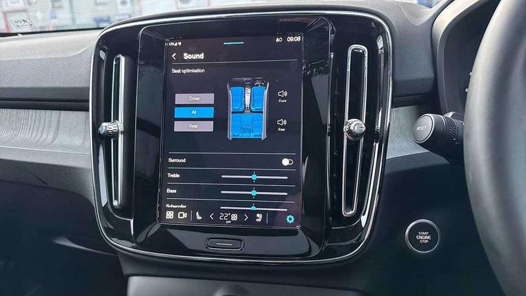 12.3" Progressive Driver Display, 360 degree surround view parking camera with side proximity sensors, 9" centre console portrait touch screen, Adjustable steering wheel force, Android auto (Wired), Apple carplay (wired), Bluetooth handsfree system, Driver alert control, Driver assistance (pilot assist and adaptive cruise control), Driver awareness - Blind spot information system with steer assist, cross traffic alert with autobrake and rear collision warning and mitigation, E-call, Front park assist, Google automotive services - Enabled entertainment apps, navigation with google maps, voice recognition with google assistant, Hands free power tailgate, Intelligent speed assistance, Lane keeping aid, Oncoming Lane Mitigation, Rear park assist, Speed sensitive steering, Volvo cars services with app - Driving journal, emergency and breakdown call, engine remote start, remote door locking/unlocking and vehicle dashboard, Wireless/Inductive Mobile Phone Charging, Automatic transmission with start/stop and manual change functions, Dynamic chassis, DAB Digital radio, Premium Sound by Harman Kardon, Dolby Pro Logic II Surround Sound, Dirac Unison, 12 speakers/600W and subwoofer, Steering wheel mounted remote controls, Active bending pixel LED headlights with adaptive shadow technology, Active high beam incorporating daytime running lights, Adaptive brake lights with high level LED brake lights, Auto dimming feature for exterior door mirrors, Auto dimming interior mirror, Automatic headlamp levelling, Dark tinted windows - rear side windows and rear screen, Front aluminium tread plates, Front and rear electric windows, Headlight cleaning system, High gloss black front and rear skid plate, High gloss black front bumper deco, High gloss black mesh front grille with high gloss black surround, High gloss black window trim, Home safe and approach lighting, Integrated roof rails in high gloss black, LED front fog lights with cornering function, Power glass tilt and slide panoramic sunroof with sun curtain, Puddle lights, Rain sensor with automatic windscreen wiper activation, Rear side wing doors, Rear wiper, Roof antenna, Roof spoiler, Visible VIN plate, 12V socket in front tunnel console and luggage compartment, 2-Zone electronic climate control with CleanZone air quality system and pollen filter, 3 seat bench in 2nd row, 3 Spoke tailored steering wheel with chrome trim, 60/40 versatile split folding rear seat, Centre console cupholders and storage, Flexible load floor and grocery bag holder, Floor mats, Front cabin courtesy lights, Front door pocket, front cupholder, ambient front door, rear reading, rear courtesy, instrument panel and tailgate lighting, Front footwell illumination, Front headrests, Front reading lights, Front seat cushion extensions, Front side step illumination (under door), Glovebox bag hook, Heated front seats, Height/reach adjustable steering column, High gloss centre tunnel deco, Illuminated glovebox, Illuminated luggage compartment, Illuminated vanity mirrors + ticket holder, Integrated waste bin, Isofix attachments on outer rear seats, Load cover, Load protection net, Multi directional lumbar support for driver and passenger seat, Power driver seat with memory + exterior mirrors memory, Power folding rear headrests, Power passenger seat, Rear armrest with cupholders, Single front passenger seat, Underfloor cargo storage, Climate pack without heated front seats - XC40, 3x3 point rear seatbelts, City safety with steering support with Pedestrian + cyclist + front collision warning with full auto brake and rear auto brake, Driver and passenger airbags, Drivers knee airbag, Electronic parking brake with auto hold, First aid kit, Front and outer rear seatbelt reminder and pretensioners, Front seats SIPS airbags, Hill descent control, Hill start assist, Inflatable curtain, Passenger airbag cut-off device, Power child locks on rear doors, Road sign information display, Run off Road Protection, SIPS (Side Impact Protection System), Slippery road and hazard light alert, Stability and Traction Control with Spin control, Engine Drag Control and Corner Traction Control, Tyre pressure monitoring system, Vehicle deceleration control with Anti-lock Brake System, Electronic Brake Distribution and Emergency Brake Assist, Warning triangle, WHIPS whiplash protection system - front, 2 x Key integrated remote control central locking including with deadlocking system and auto open/close windows and sunroof, Anti-theft alarm including immobiliser/volume sensor + level sensor, Keyless drive includes keyless entry and keyless start, Locking wheel nuts,