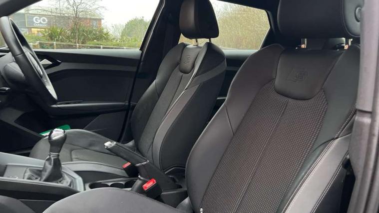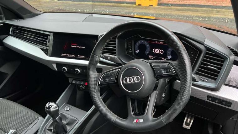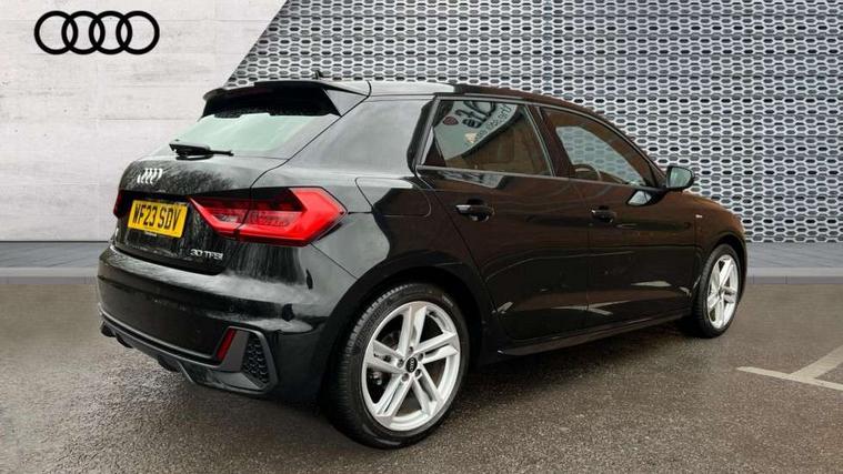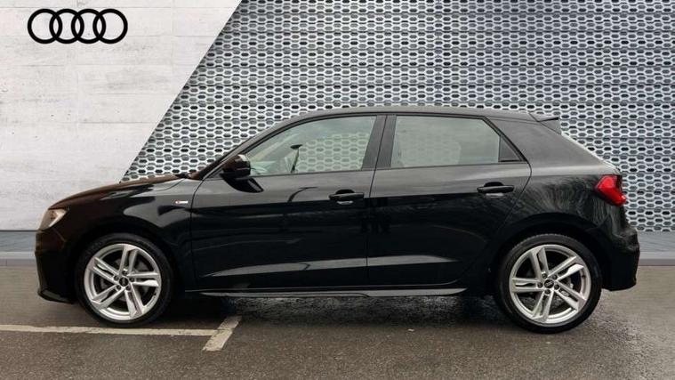 10.25" Digital instrument cluster display classis style instrument dials + speed, odometer, time, outside temperature, telephone menu + fuel level warning, Audi drive select - power steering assistance + engine, Audi smartphone interface with connect compatible smartphone via USB directly MMI display + Nav, music, third party apps controlled via MMI controller, Automatic start/stop system, Bluetooth interface, Cruise control, Driver's information system, Electromechanical power steering, Emergency e-call, Emergency services call system, Lane departure warning system, Service interval indicator, Speed limiter, Voice control system, Washer fluid level indicator, Sports suspension, 1 x SDXC card reader, 2 x USB type C connection points, DAB Digital radio, MMI radio plus with 8.8" colour MMI display screen and MMI touch, Auto dimming rear view mirror, Body coloured door mirrors, Door sills with aluminium inlays and S Line logo, Electric front and rear windows, Electrically adjustable, heated, folding door mirrors with integrated LED side indicator, Front side air inlets in grained matt black and C frame in anthracite black, Heat insulating glass windscreen and side windows, Heated rear windscreen, High level LED brake light, LED headlights with LED rear lights + dynamic rear indicators + headlight adjustment and high beam, turning light + LED daytime running lights, Radiator grille and rear diffuser in matt anthracite black, Radiator protective grille frame in matt aluminium silver, Rain and light sensors, Rear fog lights, Rear side wing doors, Rear wing door, Rear wiper, S line badges on front wings, Side front spoiler lips in grained matt black, 12V socket in centre console with two cup holders, 3 rear seats with headrests, 3 seat bench in 2nd row, 3 spoke leather multi-function plus steering wheel features S badging and grips in perforated leather with contrast stitching, 40:60 Split folding rear seat or folded fully, Black cloth headlining, Driver and passenger seat with manual height adjust with forward and backwards adjustment, Front and rear black floor mats with contrast stitching in fine silver, Front head restraints, Front passenger seat, Height and reach adjustable steering wheel, ISOFIX child seat mounting for front passenger and outer rear seats including top tether attachment point of outer rear seats, Leather gear knob with aluminium trim, Luggage compartment light with front and rear reading lights, Manually adjustable lumbar support in front seats, Stainless steel pedals, LED interior lighting pack - A1, Luggage compartment pack - A1, S line exterior styling pack - A1 Sportback, 3x3 point rear seatbelts, Audi pre-sense front with pedestrain and cyclist recognition, Brake assist function, Driver and front passenger airbag with front side and head airbags, Electronic Stability Control including ABS, EBD, ASR and EDL, Front passenger airbag deactivation switch, Hill hold assist, Manual rear child locks, Seatbelt height adjustment for front seats, Seatbelt monitoring, Tyre pressure warning light, Warning triangle and first aid kit, Anti theft alarm, Anti theft wheel bolts and loose wheel warning, Immobiliser, Remote central locking with 2 foldaway keys, Aluminium trim for control switches, air vents and digital instrument cluster, Silver grey inlays polygon structure in diamond paint finish, Structured grey accent areas including air vents, door handle recesses and centre console in quartz paint finish,