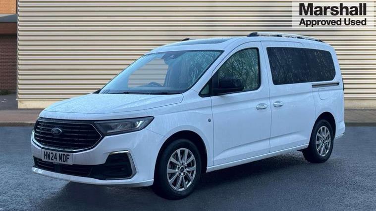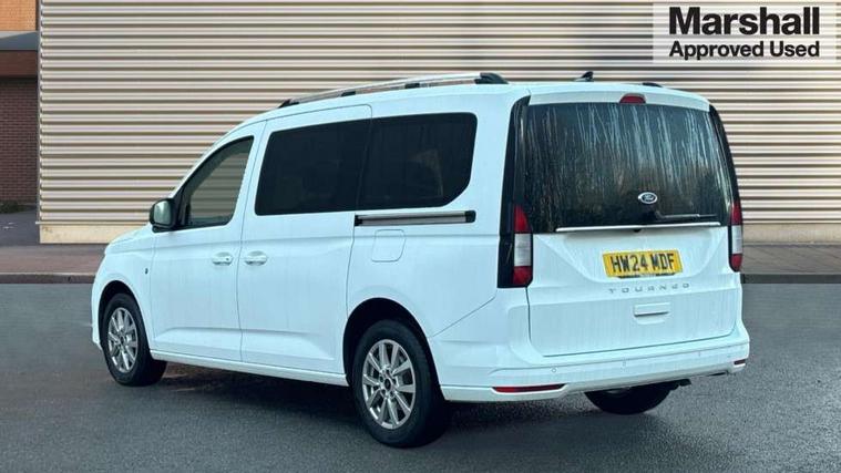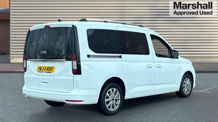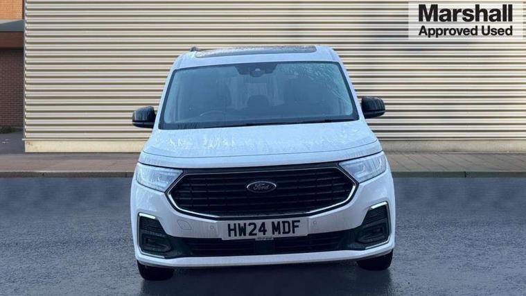 Analogue cluster, Brake wear indicator, Driver impairment monitor, E-call, Embedded modem, Mobile phone interface, PAS, Speed control with ASLD, Stop/start system with regenerative braking, Trip computer, 50 litre fuel tank, Diesel particulate filter, Standard duty alternator, Media hub 2x USB and rear USB Unit, Steering wheel mounted radio controls, Adaptive cornering lamps includes fog lamp, Auto headlamps On/off, Automatic windshield wiper, Black coloured exterior mirror finish, Black grille with chrome surround, Body coloured exterior door handles, Body coloured exterior tailgate handles, Body coloured plastic front bumper, Body coloured plastic rear bumper, Dark tinted rear privacy glass, Daytime running lights, Dual power fold heated mirrors, Dual sliding side load doors, Electric rear window defroster, Electric windshield defroster, Electrochromic inside mirror, Fixed 3rd row LHS and RHS window, Fixed rear window, Follow me home headlamps, Front bumper with chrome insert, High mounted stop lamp, Intermittent variable windshield wiper, Liftgate rear cargo door, Rain sensor, Rear registration plate light, Rear window wash/wipe, Roof rack silver painted rails, Standard green glass windscreen, Tail lamp - Level 1, Weather protection seals, 2 front row cupholders, 2nd and 3rd row rear overhead courtesy light, 3 seat bench in 2nd row, 3x hooks on trim panel storage, 4 tie down hooks, A/C Refrigerant - HF01234YF, Air register Chrome, B Pillar assist handle, Base luggage compartment trim, Bubble fabric upholstery, Carpet load floor cover, Carpet partial floor cover, Center console level 4, Driver seat rotary recliner, Front door trim panel - Level 2, Front interior grab handles, Front seat tray table, Front throw in carpet floor mats, Glovebox lid with light, Header courtesy light with maplight, Height adjustable headrests, IP open storage above driver area, LED Load compartment light, Misfuel protection cap, Overhead storage shelfs, Painted instrument panel, Passenger lumbar support, Passenger seat rotary recliner, Passenger sunvisor with mirror, Pollen filter without carbon filter, Power point plug 2 off, Reach + rake adjustable steering column, Rear luggage compartment bag hook, Recirculation heater, Regular size washer tank, Second row 60/40 folding seats, Sensico gearshift knob, Sensico steering wheel, Side/rear door trim panel - Level 1, Single driver sunvisor illuminated with mirror, Single front passenger seat, Standard design foot pedal, Storage in front cab doors with bottle holder, Storage in rear doors with bottle holder, Third row dual individual seat, Driver assistance package - Tourneo Connect/ Grand Tourneo Connect, High acoustics package - Tourneo Connect/ Grand Tourneo Connect, Ice feature pack 4 - Tourneo Connect/ Grand Tourneo Connect, Restrain device pack 3 - Tourneo Connect/ Grand Tourneo Connect, Seat pack 18 - Tourneo Connect/ Grand Tourneo Connect, 2nd row rear seat belts, 3rd row rear seat belts, 4 wheel disc brakes, Black seat belts, Brakes - (HLA)Hill launch assist/TC, Driver, passenger, 2nd and 3rd row rear seat belt reminder, Electric parking brake with auto hold function, Electronic emergency brake assist, Emergency brake light flashing, ESC with ABS, Front 2 way head restraints, Front active seat belts and manual adjuster seat belts, Front side airbags, Isofix hard point attachment, Manual passenger airbag deactivation function, Post collision braking, Rear 2 way head restraints, Rear removeable package tray, Tire pressure sensors, 2 remote flip keys, Child proof rear door locks, Configurable Unlocking 2, Engine immobilizer - Securilock, Keyless entry and start with double locking, Locking wheel lug nuts, Power door dead locks and enabled door automatic relocking, Thatcham category 1 alarm B, 16" Titanium pearl grey alloy wheels with centre wheel hub cups and standard tread, Less wheel cover, Tyre repair kit,