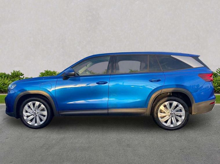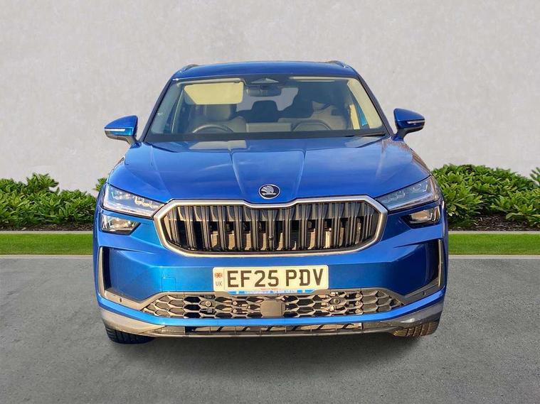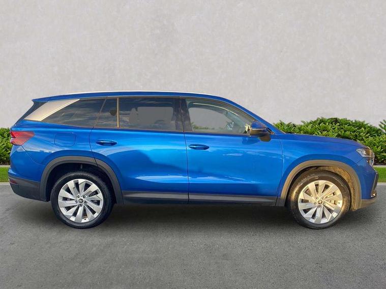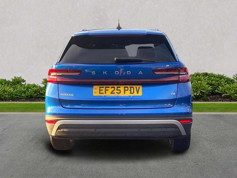 13" satellite navigation touchscreen display, Blind spot detection with door exit warning, Bluetooth system, ChatGPT functionality, Driver alert - Fatigue and drowsiness monitor, Dry display cleaner, Emergency call, Front and rear parking sensors, Front cross traffic assist, Lane assist, PAS, Rear traffic assist, Tailgate unlocking from outside, Traffic sign recognition, USB C Port x 2 in front centre console, Virtual Cockpit - 10.25" digital display, Voice control system, Wireless charging for two smartphones (15W) with cooling function, Wireless SmartLink for Apple CarPlay and Android Auto, 32A charging cable, Stop/start function, 2x USB-C in the rear, DAB Digital radio, Aero front windscreen wipers with intermittent function, Auto dimming rear view mirror, AWL (all weather lighting) and all weather light with cornering function, Black wheel arch surrounds, Body colour bumpers, Body colour door mirrors and handles, Cornering light and poor weather light, Electric folding /adjustable/separted heated/folding door mirrors, auto dimming with boarding sports and memory function, Electric front and rear windows, Exterior black decorative trims, Heat insulating glass in windshield, Heated rear window, Ice scraper in fuel tank cap, Invisible tailpipe, LED daytime running lights, LED third brake light in rear spoiler, Light assistant with automatic headlight control and coming home feature, Logo projection in door mirrors, Privacy glass, Rear roof spoiler, Rear side wing doors, Rear window wiper, Red decorative strip between rear LED lights, Safety reflectors on front and rear doors, Unique dark chrome design logo on alloy wheels, Window control switches with black trim, Windscreen wipers with rain sensor, Without engine designation, 1.5l bottle holder points in all door, 1x centre rear reading light, 3 configurable smart dials with 32mm coloured display, 3 seat bench in 2nd row, 4 foldable roof handles with rear coat hooks, Ambient interior lighting - Dashboard, front-door stowage compartments, front and rear door panels and footwell lighting, Automatic gear selector on steering column, Chrome interior door handles, Driver/front passenger reading lights, Fabric headlining, Fixed bench 40:60:40 split folding backrests, Front and rear floor mats, Front centre armrest with jumbo box storage compartment, cup holder and 12V socket, Height adjustable front headrests, Isofix child seat fittings in outer rear seats and front passenger with top tether, iV badging on boot, Manually adjustable steering column, Pollen filter, Rear centre armrest with cupholders, Rear seat boot backrest release, Single front passenger seat, Skoda lettering on steering wheel, Storage pocket including mobile phone pockets on the backs of the front seats, Sunvisors with illuminated vanity mirrors, Three rear height adjustable headrests, Ticket holder on A Pillar, Tri zone climate control, Umbrella in door panel x1 made from sustainable materials, Upper and lower glovebox with card holder and coin compartment, USB C port by rear view mirror for charging only (15W), Exterior styling pack - Kodiaq, Auto door release and activation of warning lights in the event of an accident, Driver and front passenger airbag with knee airbag and front passenger airbag deactivation, Electric child locks, Electronic parking brake, ESC (incl. ABS+EMD+MSR+ASR+EDL+HBA+DSR+RBS+ESBS+MCB+TSA+XDS), Front assist with braking reaction to vehicles, pedestrians and cyclists, Front disc brakes, Fuel cut off safety device, Height adjustable front 3 point seatbelts + pretensioners, Hill hold assist, Junction assist with automatic emergency braking, Rear disc brakes, Safety vest holder in door, Seat belt reminder for all seats, Three point rear seat belts, Two tone horn, Tyre pressure monitor, Anti-theft wheel bolts, Immobiliser, Remote central locking with 2 keys, Breakdown kit, Tool kit,