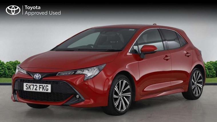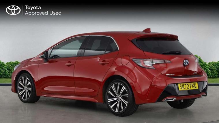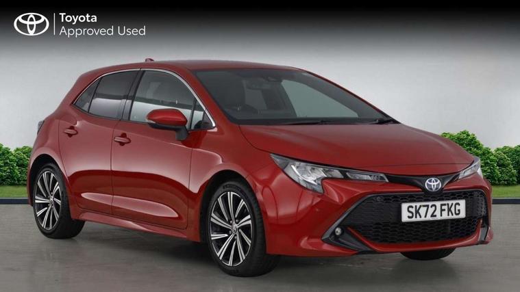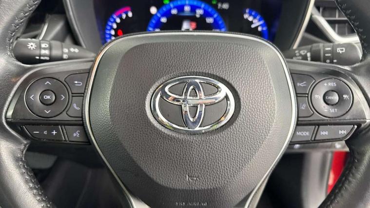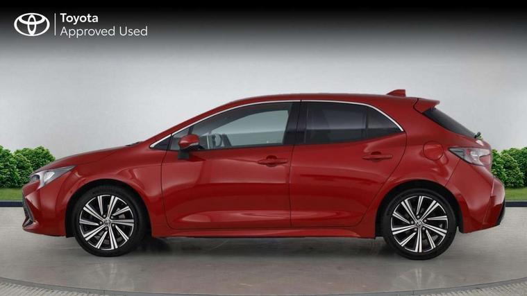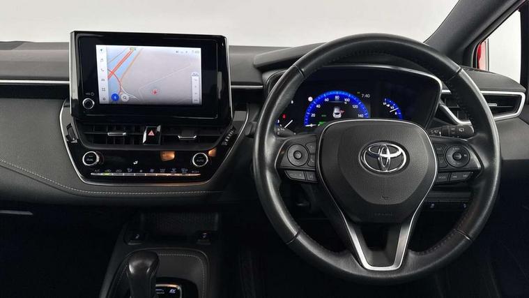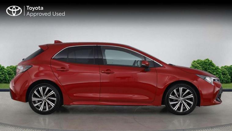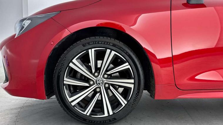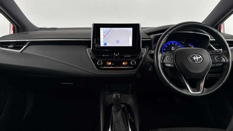 7" Multi information display screen, Bluetooth telephone connectivity, Connected car functionality upgrade, tracker, remote status and e-care, Door trim and centre console material, Dynamic radar cruise control (with RSA) including switch on steering wheel, E-call, Electrically assisted power steering, EV drive indicator, Intelligent park assist, Lane Departure Alert (LDA) switch on steering wheel, Memory on adjustable speed limiter, Push button start, Reversing camera, Smartphone integration with Apple CarPlay and Android auto, Gasoline particulate filter, Vehicle Stability Control (VSC), 6 speakers, 8" Touchscreen with MM19 Multimedia system and voice recognition, AM/FM radio, DAB Digital radio, Toyota touch 2 with go navigation system, USB and Aux in connectors + 12V front outlet, Anti-jam protection on power windows, Auto dimming inside rear view mirror, Auto up and down function on all power windows, Automatic folding mirrors, Automatic headlights with high beam assist, Black metallic surround on lower front grille, Black toyota logo in front, Black window frames, Body colour rear spoiler, Body coloured bumpers, Body coloured door mirrors, Body coloured outside door handles, Follow me home headlights, LED daytime running lights, LED front fog lights, LED Headlights, LED High mounted stop light, LED rear combi lights with LED lightguide, Power adjustable heated door mirrors, Power front windows, Power rear windows, Privacy glass, Rain sensing wipers, Rear bumper with chrome plated inserts, Rear side wing doors, Rear window defogger, Rear window wiper, Reverse tilting door mirrors, Shark fin antenna, Time adjustment on intermittent wiper, Turning signal integrated indicators in door mirrors, Unique lower skirt, Unique side rocker with black insert, UV-filter on driver and passenger windows, 3 rear headrests, 3 seat bench in 2nd row, 3 spoke leather steering wheel + gear knob, 60/40 split folding rear seat, Adjustable speed limiter switch on steering wheel, Audio, multimedia and telephone switches on steering wheel, Blue ambient interior illumination to centre tray, front cup holders and front door trim, Boot light, Centre room light, Clean air filter, Driver and front passenger personal light, Driver and passenger assist grip, Driver and passenger sun visor with mirror and light, Dual zone automatic air conditioning with ECO mode switch, Fabric/synthetic leather upholstery, Front and rear cup and bottle holders, Front door pockets, Front head restraints, Front passenger seat, Heated driver and front passenger seats, Illuminated entry system in room lamp, ISOFIX seat fixing (2 fixings on rear outer seats), Leather gear shift with satin chrome on gear shift console, Leather style armrests, Manual height adjustable for driver and front passenger seat, Paddle shifts, Parcel shelf, Passenger seat back pocket, Pollen filter, Power adjustable lumbar support on driver seat, Power window switches with satin chrome inserts, Rear armrest with 2 cupholders, Rear passenger coat hooks (2), Satin chrome inside door handles, Shopping bag hooks in luggage compartment, Sliding armrest on centre console box, Slow opening glovebox with lights, Tilt/telescopic steering column, Voice recognition switch on steering wheel, Whiplash Injury Lessening (WIL) feature (active headrest) for seats, Parking pack - Corolla, Toyota safety sense 2 pack - Corolla, 3x3 point rear seatbelts, Adjustable driver and front passenger seat belt extender to top anchor point, Anti lock braking system + Electronic brake force distribution, Brake assist function, Child locks on rear doors, Downhill Assist Control (DAC), Electronic parking brake, Emergency brake light signal (EBS), Front passenger airbag on/off switch, Front seatbelt reminder, HAC - Hill start assist control, Rear seat belt reminder, Seatbelt pretensioners and force limiters, Supplemental restraint system (SRS) 7 airbags - dual driver, dual side curtain, side impact and driver knee airbags, Traction control, Tyre pressure warning system, Acoustic vehicle alert system (AVAS), Alarm with motion sensor and immobilizer, Remote central locking + deadlocks, Smart entry, Satin chrome dash trim, Soft touch texture on upper dashboard, Space saver spare wheel, Unique wheel finish with red wheel cap,