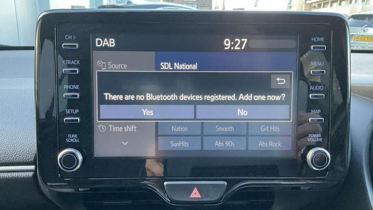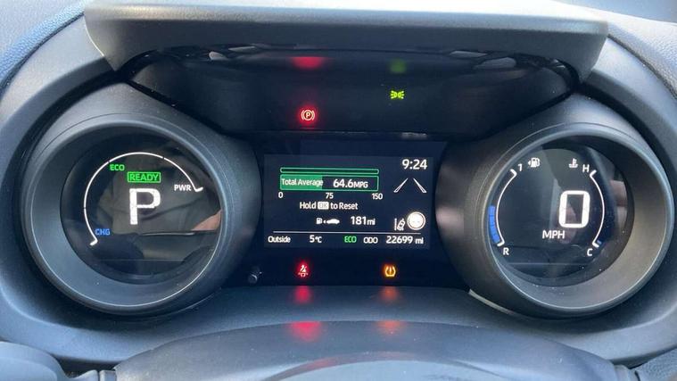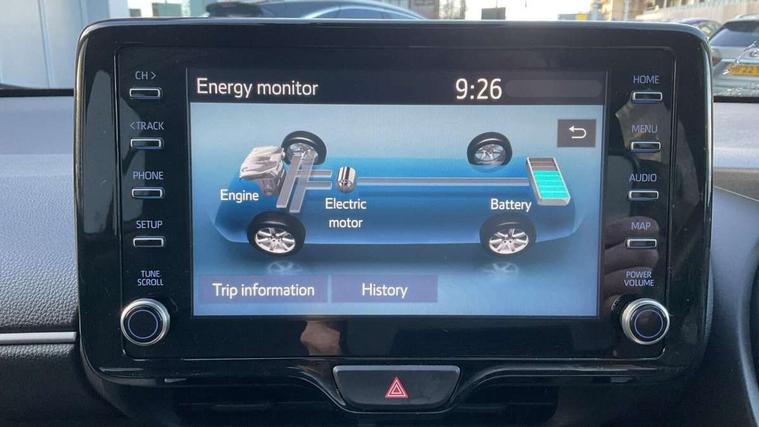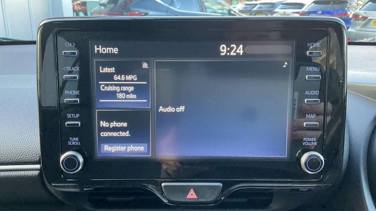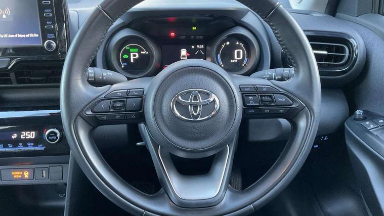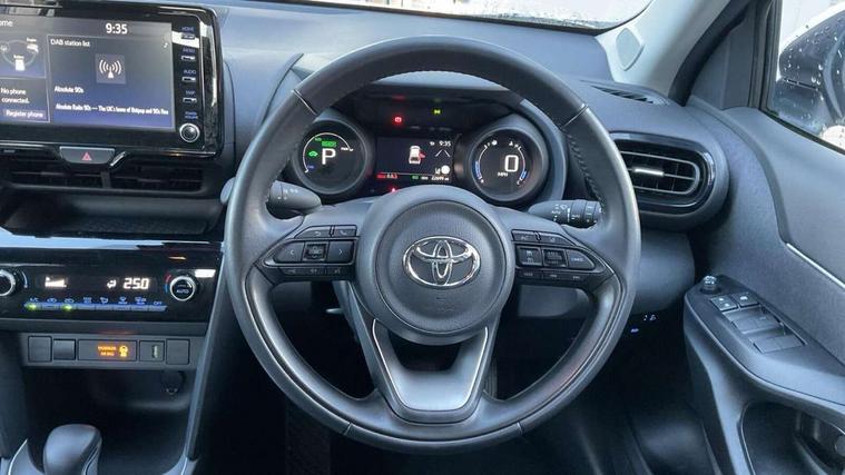 4.2" multi information display, 8" Toyota touch 2 multimedia system with Smartphone integration with Apple CarPlay and Android auto, Adjustable speed limiter, Bluetooth connectivity, Digital speedometer, Driver attention alert system, eCall emergency system, Electric power steering, Full range intelligent adaptive cruise control, Hybrid system indicator, Key reminder warning, Lane trace assist, Multimedia, audio, telephone and voice recognition switches on steering wheel, My T Connected services, Pre-collision system enhanced with emergency steering assist, Reversing camera, Road sign assist - RSA, Steering assisted vehicle stability control, 6 speakers, DAB Digital radio, USB connection, 3rd brake light, Acoustic windscreen glass, Anti-jam protection on power windows, Auto high beam [AHB] with on/off switch, Automatic headlights, Black lower front grille, Black Shark-fin antenna, Black upper front grille, Black wheel arch mouldings, Body colour door handles, Body colour front bumper, Body colour rear bumper, Electric adjustable heated door mirrors, Follow me home headlights, Front and rear electric windows with auto up/down function, Front intermittent wipers, Halogen projector headlights, Headlight cut off reminder, Indicators integrated on door mirrors, Intermittent rear wiper, LED daytime running lights, LED Indicators, Manual headlight levelling, Manually retractable door mirrors, Noise reduction layer on windscreen, Rain sensor, Rear side wing doors, Rear spoiler, Rear window defogger, 12v power outlet - front, 2x Rear coat hooks, 3 seat bench in 2nd row, 3 spoke leather steering wheel, 60/40 split folding rear seat, Adjustable speed limiter switch on steering wheel, Auto air conditioning, Boot light, Central armrest, Driver and front passenger personal lights, Fabric door trim, Fabric upholstery, Front console box, Front cup holders, Front head restraints, Glovebox, Grey roof lining, Height adjustable driver's seat, Height adjustable front passenger seat, ISOFIX child restraint system, Lane departure alert switch on steering control, Leather gearshift, Manual telescopic and tilting steering wheel, Mirror on driver and passenger sun visor, Pollen air filter, Rear head restraints, Single front passenger seat, Soft tonneau cover, 3x3 point rear seat belts, ABS+EBD+Brake assist, Driver and passenger central airbags, Driver and passenger front airbags, Driver and passenger side airbags, Electronic parking brake, Emergency brake light system (EBS), Front seat belt reminder, Hill start assist control (HAC), Passenger airbag on/off switch, Pre-collision system with pedestrian and cyclist detection, Rear door child safety locks, Rear passenger side airbags, Rear seat belt reminder, Traction control, Tyre pressure warning system, Immobiliser, Intrusion alarm, Keyless smart entry with push button start, Power door locks, Power passenger window lock, Remote door lock, 16" 10 spoke alloy wheels, Tyre repair kit,