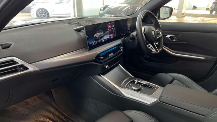 Active guard plus, Attentiveness assist, Automatic Start/stop button, Bluetooth Wi-Fi interface, BMW iDrive, BMW Teleservices, ConnectedDrive Services - last state call, Live cockpit plus with Navigation + 12.3" instrument display + 14.9" display, Intelligent voice assist, 2 USB, 4G LTE connect, Oil sensor for level and grade, Personal e-SIM, Shifting point display, Double joint spring strut front axle, Fuel tank breather system, Public mode 3 professional fast charging cable with 5m length, Steptronic Sport automatic transmission with steering wheel mounted gearshift paddles launch control and xtreme drive lever control, DAB tuner, 3rd brake light, Auto dimming rear view mirror, Automatic headlight beam throw control with load dependent regulating reaction, dynamic compensation of braking dive and acceleration squat, Bi-LED Low and high beam headlights, BMW emblem, engine compartment lid and tailgate, Body colour roof fin, Door sill strips, Electric windows - front and rear, with open/close fingertip control, anti-trap facility and comfort closing, Fading support, Folding wing mirror with auto dimming, Follow me home headlight function, Front and rear bumper system with replaceable deformation elements, Front apron plastic in body colour, Fuel filler flap - right rear in body colour, Heat protection glazing on front windows and windscreen, Heated washer jets, High gloss chrome kidney frame with high gloss black kidney struts, LED daytime running lights, LED rear lights, LED turn indicator, Licence plate panel integrated into front bumper and tailgate, M high gloss shadow line exterior trim, Matt black B-pillar finsher, Matt black window recess cover, Model designation on right side of tailgate, One piece front bumper cover including towing eye cover in body colour, Rain sensor with automatic headlight activation, Rear boot, Rear side wing doors, Reversing lights, Side frame decorative moulding black matt, Trailer stabilisation logic, Visible exhaust tailpipe finisher, Welcome lights in interior and door handle area, 12V power socket in front storage compartment, 2 front cupholder in centre console with clamping elements and matt black inlay, 3 seat bench in 2nd row, 3 spoke M Sport multifunction flat bottom leather steering wheel, 3 zone automatic air conditioning, 40:20:40 split folding rear seat with loading system, Anthracite headlining, Armrest integrated in front and rear door trim + front centre console armrest, Battery in luggage compartment, BMW ID, Cruise control operation in steering wheel, Driving experience mode switch, Folding rear centre armrest with 2 cupholders, Front and rear headrests, Front and rear velour floor mats, Front reading light, Heated front seats, Height adjustable mechanically and infinitely variable steering column, Illuminated armrest storage compartment, Illuminated glove compartment, Illuminated luggage compartment, Lashing eyelets in luggage compartment, Single front passenger seat, Sunvisors with illuminated vanity mirrors and ticket pocket, Toolkit located in luggage compartment, Connected pack professional - 3 Series Saloon/Touring, Interior and exterior mirror pack - 3 Series Touring/Saloon, M sport exterior styling pack - 3 Series Saloon/Touring, Parking assistant pack - 3 Series, 3x3 point rear seatbelts, BMW emergency call, Child locks on rear doors, Crash sensor activating of airbags, Unlocking doors, hazard warning lights, interior light, safety battery terminal, Drive-off assistant, Driver and front passenger with seat occupancy detection for driver's and passenger side, Driver and passenger side airbags, body protection at side and airbags deploy from seat backrests, Dry braking, Dynamic brake control, Dynamic stability control + (DSC+) - Anti-lock Braking System (ABS) with brake assist and cornering brake control + Automatic Stability Control (ASC), Dynamic Traction Control - DTC, Electric parking brake including automatic hold function and automatic release of the parking brake when driving off, Electronic differential lock control (EDLC), Front airbag deactivation, Front airbags for driver and front passenger, Head airbags in 1st and 2nd row, head protection at side, curtain airbags open from headliner above 1st and 2nd row, Plastic fuel tank, Side impact protection, Tyre pressure sensors, Ventilated front and rear disc brakes, Warning triangle and first aid kit, Alarm system, Centre lock switch, Closing system with central locking, Electronic vehicle immobiliser, Locking wheel bolts, Tyre repair kit,