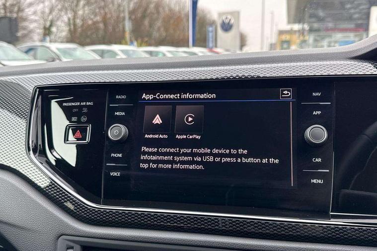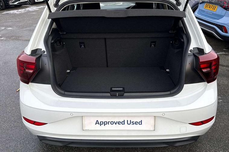 Advanced driver attention and drowsiness monitor, Bluetooth mobile phone interface, Dynamic road sign display, Emergency call service, Mobile phone preparation with inductive charging function, Multifunction front facing camera for distance control, Power assisted speed sensitive steering, Predictive adaptive cruise control without follow-to-stop and speed limiter, Preparation for navigation system with media and internet package, Preparation for We connect and We connect plus, Rear view camera, Speedo and rev counter, electronic odometer, trip, service interval display and exterior temperature gauge, Standard rear axle, Travel Assist - Lane keeping system and traffic jam assist, Travel assist including emergency assist, Trip computer, Warning signal and warning light for front and rear seatbelts not fastened, Washer fluid level indicator, Wireless app connect, Front wheel drive, Rear shock absorpion, Start-stop system with battery regeneration (recuperation - energy recovery during braking), DAB Digital radio, Diversity antenna for FM reception, Automatic dimming interior rear view mirror, Automatic headlight control with LED separate daytime running lights with coming/leaving home function, Body colour bumpers with chrome inserts, Body colour door handles, Body colour door mirrors, Electric front windows, Engine badge deletion, Headlight range adjustment, Heat insulating and laminated safety glass windshield, LED Headlights, LED rear combination lamps, Power folding adjustable/heated exterior mirrors and front passenger exterior mirror lowering function, Rain sensor, Rear electric windows, Rear fog light, Rear side wing doors, Rear tinted glass from B-pillar backwards approx 65% tinted, Rear windscreen washer and wiper with interval delay, Third brake light, 12V power socket in centre console, 2 front and 2 rear reading lights with switch off delay and dimmer, 2 USB-C ports in the front, 2 USB-C charging sockets on the center console in the rear, 3 rear head restraints, 60/40 split folding rear seat and rear seat bench not split, Ceramique roof lining, Chrome plated radiator grille inserts, air vent surrounds and light switch surrounds, Door and side trim panel, Driver and front passenger seat height adjustment, Driver/passenger sunvisors with illuminated vanity mirrors, Front centre armrest, Front seat backrest storage pockets, Front standard seats, Handbrake lever handle in leather, Hartley/Thomas cloth upholstery, Headliner in recycled material, Isofix child seat preparation easy-fit (for two outer rear seats, and front passenger seat) compatible with I-size, Leather trimmed gear knob, Luggage compartment cover, Luggage compartment lighting, Removable luggage compartment floor, Single front passenger seat, Standard climatic zones, Standard pedal cluster, Three spoke leather wrapped multifunction steering wheel with shifting paddles, Light and vision pack - Polo, 3 point height adj front seatbelts + pretensioners, 3 point seat belt for centre rear seat, 3 point seatbelts, outer rear with ECE lable, ABS, Driver and front passenger airbag with front passenger airbag deactivation, Drivers and front passengers safety optimised head restraints, ESC (Electronic stability control) + EDL (Electronic Differntial lock) and ASR (Traction control), Extended and predictive pedestrian/ cyclist protection, Front assist with autonomous emergency braking (for Adaptive Cruise Control ACC up to 130 mph), Front curtain and side airbags with center airbag, Front disc brakes, Hill hold control, Manual child lock in rear doors, Rear drum brakes, Single tone horn, Tyre pressure loss indicator, Alarm with interior protection, Anti-theft alarm system with interior monitoring, backup horn, and towing protection, Anti-theft wheel bolts, Electronic engine immobiliser, Lava stone black gloss/matt decorative inserts in dash and front door panels, 16" Torsby alloy wheels, Low rolling resistance tyres,