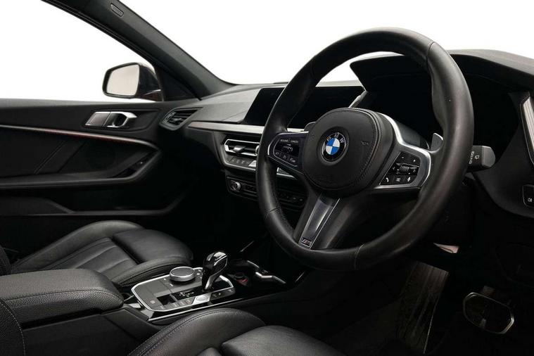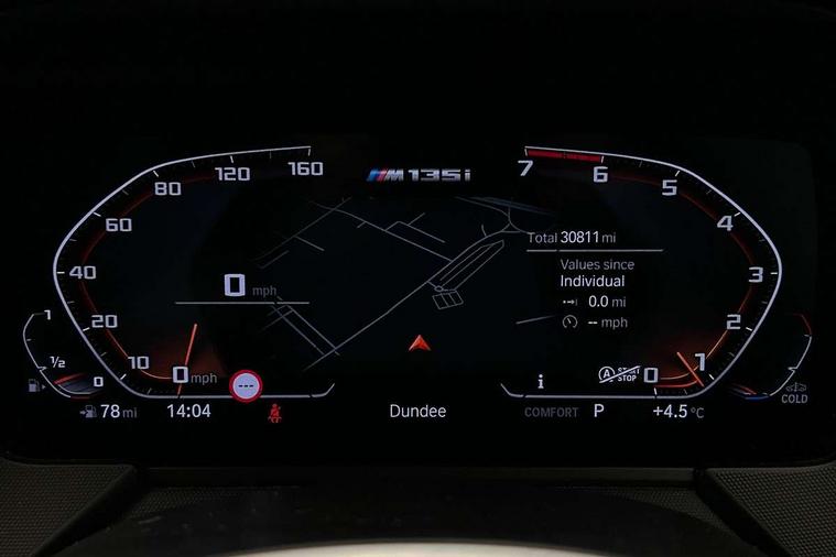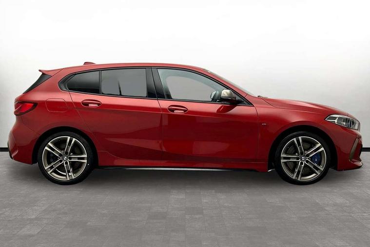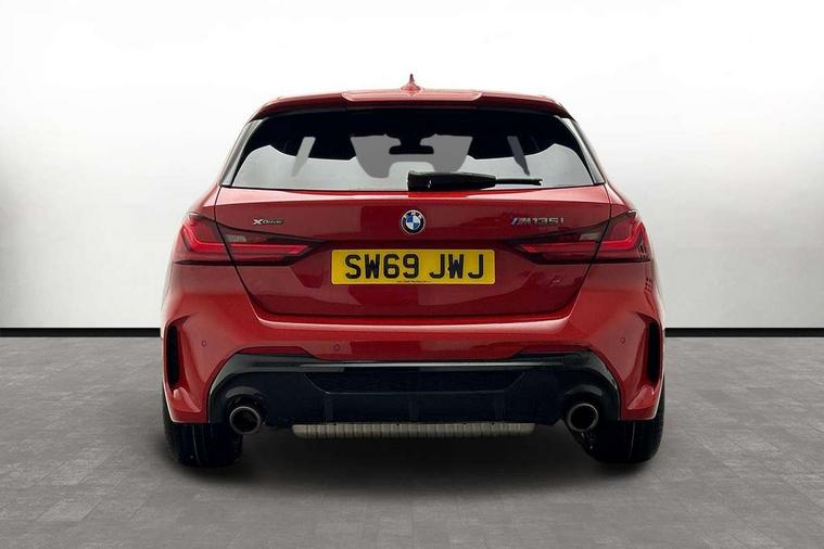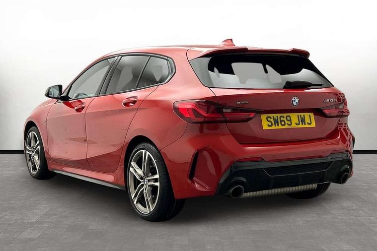 Active guard plus, Attentiveness assist, BMW Live Cockpit Professional sat nav system including 10.25" high resolution display and Intelligent Voice Assistant, BMW Online services, BMW Teleservices, Check Control warning system for monitoring of lights and door/luggage compartment open warning, Eco pro mode, Integrated owners handbook, M Sports steering, On board computer, Optimum shift indicator, Personal Profile, Pull away assistant, Speed limiter, Anti roll bar front and rear, Balancer shaft, Double VANOS, Drive Performance Control, Electronic differential lock, Engine cover with M performance designation, High precision injection, Larger fuel tank capacity (50 litres), Launch control, Petrol Particulate Filter, VALVETRONIC engine management, Bluetooth audio streaming, DAB Digital radio, Auto dimming rear view mirror, Body colour door handles, Cerium grey exterior mirror caps, Direction indicator side lights in exterior mirrors, Electric folding and anti dazzle exterior mirrors, Fading support, Follow me home headlights, Front and rear electric windows with open and close fingertip control, anti trap facility and comfort closing, Front door sill finishers with M135i designation, Green tinted heat protection glazing, Headlight beam throw control, High gloss shadow line exterior trim, High level third brake light, Kidney grille frame in Cerium Grey with Mesh design, LED daytime running lights, Lightweight engineering, M logo designation side in cerium grey, M performance exhaust system, M rear spoiler, Matt black air guide grilles, Matt black roof moulding, B pillar finisher and wheel arch trim, Matt black window frame, Model designation on right side of tailgate, Nearside reverse light in rear light cluster, Rain sensor including auto headlights activation, Rear fog lights, Rear window wiper, Round exhaust system with twin cerium grey tailpipes in left and right split, Shark fin antenna, Visible VIN plate, Welcome lighting, Windscreen wipers with integrated washing jets, 12V power socket in centre console, 2 cupholders in front centre console, 3 rear seat head restraints, 3 spoke M sports design leather steering wheel finished in nappa leather with specific M badge, Anthracite headlining, Anthracite Velour floor mats, Child seat ISOFIX attachment for two outer rear seats and front passenger seat with anchorage points, Conditioned based service, Driver and front passenger seat heating, Driver side folding compartment in instrument panel, Folding rear clothes hook, Folding rear seats, Four grab handles integrated in roof lining, Front and rear door pockets, Front and rear side armrest integrated into door trim, Front Armrest foldable with integrated storage compartment, Front M seats, Glove compartment, Height adjustable front head restraints, Manual adjust steering wheel, Multi-function controls for steering wheel, Rear seat backrest with manual 60:40 split folding with 3 top tether clips integrated on rear of seat panels, Storage compartment in centre console, Sun visors with vanity mirrors and insert tab, Two zone automatic air conditioning, Connected pack professional - 1 Series, Extended Lighting pack - 1 Series M135i, Extended storage pack - 1 Series, Interior lights pack - 1 Series, Luggage compartment pack - 1 Series, M Sport exterior styling aerodynamics pack - 1 Series 135i, 2 tone horn, 3 point seatbelts on all seats, front pyrotechnic belt tensioners, stopper and belt force limiters, rear coded belt buckles, Airbags - Front driver and passenger, front and rear head, front side, curtain head protection, Anti lock braking system (ABS) with brake assist, BMW emergency call, Brake drying, Braking readiness, Crash sensor activating central locking release, hazard warning lights, fuel cut off, interior lighting + activation of safety battery terminal clamp, Driver and front passenger seat belt security check, Dynamic stability control + (DSC+), Dynamic Traction Control - DTC, Electrically operated hand brake, Front passenger manual airbag deactivation, M Sport braking system, M sport seatbelt, Rear child proof door locks, Seatbelt warning, Side impact protection, Tyre pressure monitoring system, Warning triangle and first aid kit, Automatic drive away locking facility, Central locking switch for all doors, fuel filler cap and luggage compartment, Deadlocking function system to all doors, Locking wheel bolts, Remote control with integrated key with High-gloss Black inlay and M designation and 1 button for open/ close lock, window, open luggage compartment, Start/stop button with comfort go keyless engine start and auto start stop deactivation button, Thatcham Cat.1 alarm and immobiliser, Contrast stitching on instrument panel, 18" Burnished M double spoke Bi-colour alloy wheels finished in Cerium grey matt - style 556M, BMW mobility system, Reduced rolling resistance tyres,