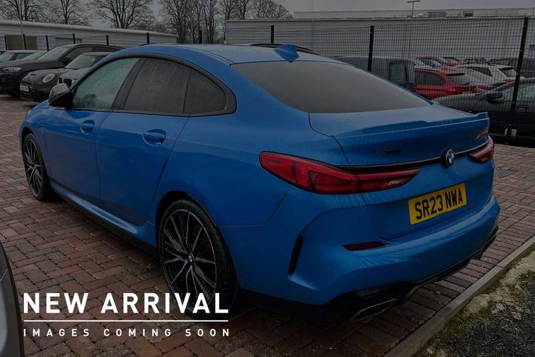 Active guard plus, Attentiveness assist, Auto start-stop, BMW ConnectedDrive online services, BMW Intelligent Personal Assistant, BMW Live Cockpit Professional with 10.25" high resolution instrument and control display, BMW Online services, BMW operating system with 7.0 mid interface, BMW Teleservices, Check Control warning system for monitoring of lights and door/luggage compartment open warning, Cruise control with braking function, Electro hydraulically controlled multi plate clutch in rear axle, Energy efficient operating strategy, iDrive controller with 7 short cut favourite buttons on centre console, Integrated navigation data with map data via USB +features such as 3D landmarks and micro city models, Integrated owners handbook, Intelligent voice assistant, Lane departure warning system, M Sport steering with M235i xDrive M performance specific settings, On board computer - average speed+fuel consumption, service interval, clock/date, odometer/trip meter, outside temperature display and ice warning, Optimum shift indicator, Personal Profile, Pull away assistant, Speed limiting function, 2 balance shafts, 8 speed sport automatic transmission with electronic selector lever, auto P function, coasting idle, race track, sport, gearchange display manual mode, Aluminium lightweight construction, BMW TwinPower twin-scroll Turbo four-cylinder petrol engine, Double VANOS, Drive performance control with ECO PRO comfort + sport mode, Electronic differential lock, Engine cover with M performance designation, High precision injection, Larger fuel tank capacity (50 litres), Launch control, M235i specific heavily de-throttled engine intake air guide, M235i specific high-performance cooling package, M235i specific larger turbocharger with integrated divert-air valve, Performance Control, Petrol Particulate Filter, Power transmission of front wheel drive on the rear axle via angle transmission on the front axle differential and two part cardan shaft, VALVETRONIC engine management, Variable, stepless and infinitely adjustable distribution of drive torque between the front and rear axles, xDrive intelligent all wheel drive with M235i specific reinforced components, 2x USB Type C ports (for charging and data transfer), 4G LTE Connectivity with hard wied 4G network sim card, DAB digital radio, MP3 players and RDS double tuner, Auto wipers, Automatically dimming rear view mirror, Body colour door handles, Direction indicator side lights integrated exterior mirrors, Electric windows - front and rear, with open/close fingertip control and trap release, Exterior mirrors - electrically folding with anti-dazzle, Fading support, Follow me home headlights, Front and rear bumper system with replaceable deformation elements, Front door sill finishers in black plastic with M235i designation, Heated, electrically adjustable exterior mirror aspheric on driver side, convex on passenger side, High gloss black B pillar finish, High gloss shadow line exterior trim, High level third brake light, LED daytime running lights, Lightweight engineering, M Performance exhaust system with valve control and minimised exhaust back pressure, M rear spoiler, Model designation on right side of tailgate includes xDrive designation onleft handside for M235i xDrive, Preparation for high beam assistant, Rain sensor with automatic headlight activation, Rear boot, Rear fog lights, Rear side wing doors, Reinforced crank drive, new pistons and adapted con rods, Reversing light in rear light cluster, Welcome lighting, 12V power socket in centre console, 2 cupholders in front centre console, 3 rear seat head restraints, 3 rear seats, 3 spoke M sports design leather steering wheel finished in nappa leather with specific M badge, Additional under floor storage in luggage compartment, Anthracite finished floor mats with contrasting surround, Anthracite headlining, Automatic two zone climate control air conditioning, Child seat ISOFIX attachment for two outer rear seats and front passenger seat with anchorage points, Conditioned based service, Driver and front passenger seat heating, Front and rear door pockets including bottle trays, Front and rear side armrests integrated into door trim, Front armrest foldable with integrated storage compartment, Front centre interior light over interior mirror and rear centre automatic interior light when door is opened/ignition switched off or via remote key, Front head restraints, Front M Sport seats, Front passenger seat, Glove compartment, Glovebox with light, Luggage compartment lighting, Manually adjustment steering wheel column, Multi-function controls for steering wheel, Shift-by-wire selector shift, Steering wheel paddles, Sun visors with vanity mirrors and insert tab, Through loading system with 40/20/40 split folding rear seat, Two lashing eyes, Additional interior lighting pack - 2 Series Gran Coupe, Connected pack professional - 2 Series Gran Coupe, Extended storage pack - 2 Series Gran Coupe, M Sport exterior styling aerodynamics pack - 2 Series Gran Coupe 235i, 2 tone horn, Airbag - Front driver and passenger, front and rear head, front side, curtain head protection, manual deactivation of front passenger airbag possible, Anti lock braking system (ABS) with cornering brake control, BMW emergency call, Brake drying, Braking readiness, City braking function, Crash sensor activating of airbags, Unlocking doors, hazard warning lights, interior light, safety battery terminal, Dynamic stability control + (DSC+), Dynamic Traction Control - DTC, Electrically operated hand brake, Integrated torsen mechanical limited slip differential on front axle, M Sport braking system in blue high gloss + blue painted brake calipers with M designation, M sport seatbelt, Rear brake discs, Rear child proof door locks, Seat belt security check for driver and front passenger, Seatbelt warning, Side impact protection, Three point seat belts on all seats including front belt stopper, pyrotechnic belt tensioners and belt forc