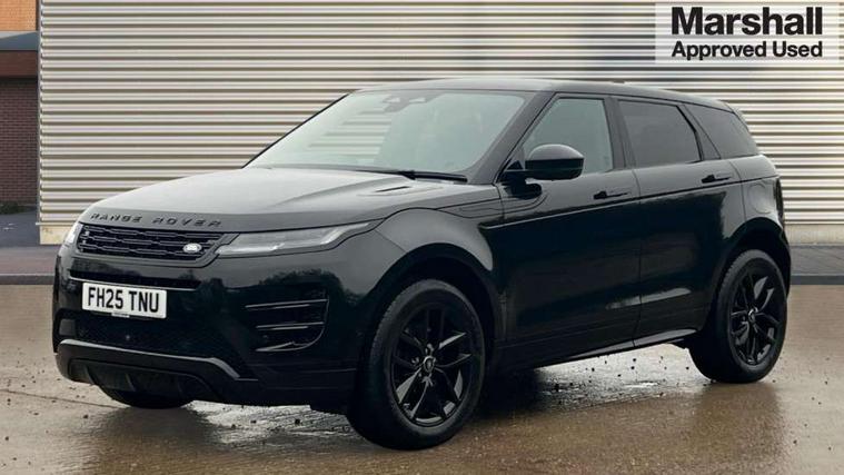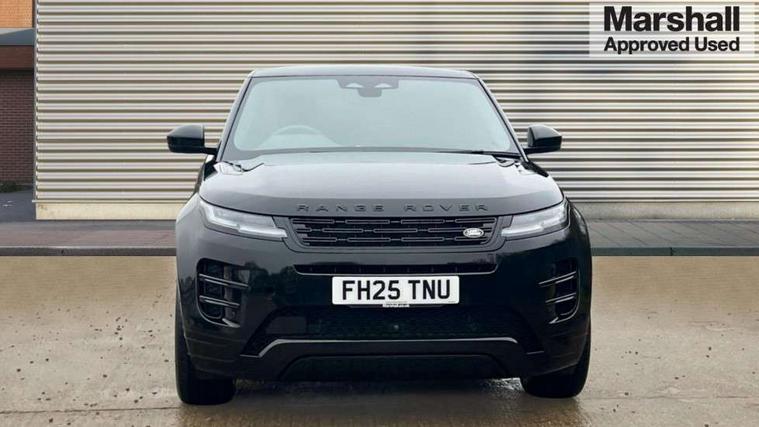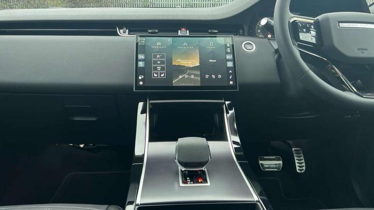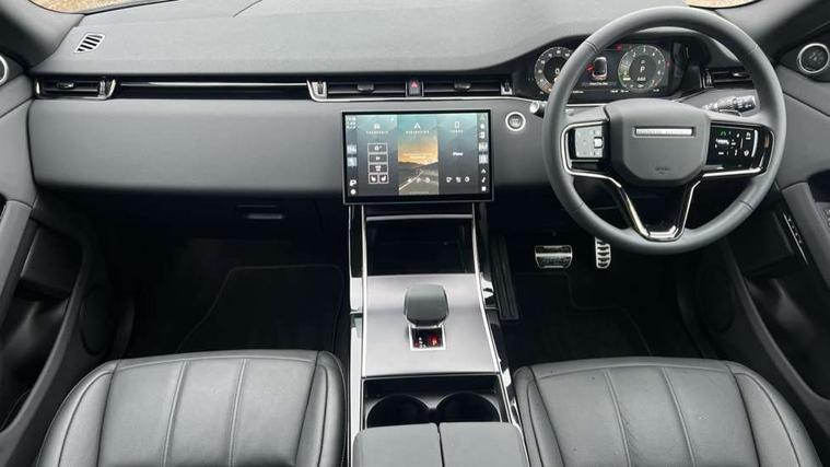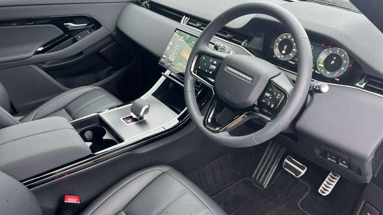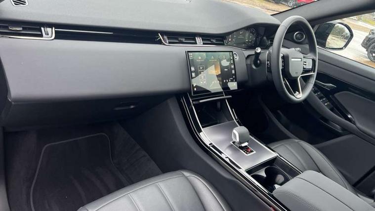 11.4" touch screen, 3D 360 degree surround camera with wade sensing, Adaptive cruise control, Android Auto, Apple car play, Blind spot assist, Bluetooth connectivity, Brake pad wear indicator warning light, Driver condition monitor, eCall emergency system, Eco mode, Electronic power assisted steering (EPAS), Front and rear parking aid, InControl remote, Interactive driver display, Land Rover InControl apps, Lane keep assist, Pivi pro connected includes diamond pivi variant, smart settings, connected navigation pro, nuance speech licence, Powered tailgate/boot lid, Rear collision monitor, Rear traffic monitor, Tailgate, Traffic sign recognition with adaptive speed limiter, Voice control system, Wireless device charging, All terrain progress control, Electric rear axle drive, Home charging cable, Large fuel tank, Passive suspension, Public charging cable, Terrain Response 2, Digital Audio Broadcast radio-DAB, Meridian sound system with 400W subwoofer and 11 speakers, Steering wheel mounted controls, Acoustic laminated windscreen, Auto dimming interior rear view mirror, Auto headlights, Auto high beam assist, Automatic headlight levelling, Black contrast roof, Electric windows with one touch open/close and anti trap, Fixed panoramic sunroof with powered sunblind, Flush deployable exterior door handles, Front and rear recovery eyes, Heated rear window with timer, Heated washer jets, Heated windscreen, LED headlights with signature DRL and LED tail Lights, Metallic paint, Power fold, auto-dimming, heated door mirrors with approach lights and auto dimming driver side, Privacy glass, Rain sensing windscreen wipers, Rear animated directional indicators, Rear fog lights, Rear side wing doors, Rear wiper, Tailgate spoiler, Third brake light, Winter wiper park position, 12 way driver memory and 10 way passenger electric front seats with 2 way manual headrest + 4 way lumbar support, 40:20:40 split folding rear seats with centre headrest and armrest, Bright metal pedals, Cabin lighting, Carpet mats, Chrome tread plates with range rover branding Includes stainless steel loadspace scuff plate with etched graphic, Customer configurable single point entry, Front and rear cupholders, Grained Leather upholstery, Heated front seats, Heated steering wheel, Isofix system on outer rear seats, Manually adjustable steering column, Overhead lighting console, Overhead stowage for sunglasses, Passive front head restraints, Rear air vents, Rear head restraints, Satin chrome gearshift paddles, Single passenger seat, Standard steering wheel with Moonlight Bezel, Sunvisors with illuminated vanity mirrors, Twin sliding front centre armrest, Two zone climate control, Black exterior styling pack - Evoque, Power socket pack 2 - Evoque, 3 rear 3 point seatbelts, Anti-lock braking system (ABS), Black brake calipers, Brake hold function, Customer configurable autolock, DSC - Dynamic Stability Control, Electronic brake force distribution, Electronic parking brake, Electronic traction control, Emergency braking, Front and rear seatbelt reminder, Hill descent control, Hill launch assist, Low traction launch, Occupant protection assist, Passenger seat occupant detector, Power operated child locks, Roll stability control, Six airbags - Driver and passenger airbags/driver knee airbag/front side airbag and curtain airbags, Torque vectoring brake, Tyre pressure monitoring system, Alarm, Immobiliser, Intrusion sensor, Keyless entry, Locking wheel nuts, Secure tracker pro, Black brushed aluminium finisher, 19" gloss black alloy wheels - Style 5136, All season tyres, Tyre repair system,