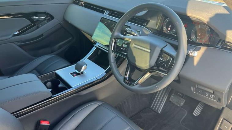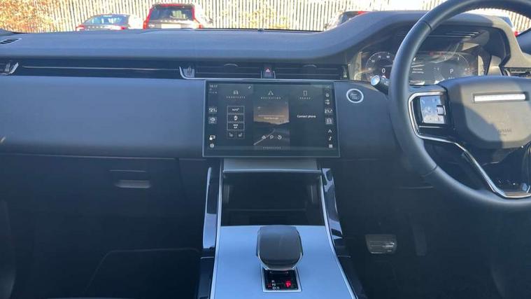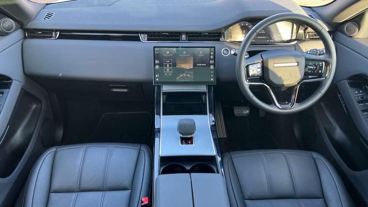 11.4" touch screen, Adaptive cruise control, Android Auto, Apple car play, Bluetooth connectivity, Brake pad wear indicator warning light, Digital driver display, Driver condition monitor, eCall emergency system, Eco mode, Electronic power assisted steering (EPAS), Front and rear parking sensors with auto brake, InControl remote, Land Rover InControl apps, Lane keep assist, Pivi pro connected includes diamond pivi variant, smart settings, connected navigation pro, nuance speech licence, Push button starter, Tailgate, Traffic sign recognition with adaptive speed limiter, Voice control system, Wireless device charging, All terrain progress control, Efficient Driveline, Passive suspension, Terrain Response 2, Digital Audio Broadcast radio-DAB, Steering wheel mounted controls, Acoustic laminated windscreen, Auto headlights, Electric windows with one touch open/close and anti trap, Flush deployable exterior door handles, Front and rear recovery eyes, Heated rear window with timer, Heated washer jets, Heated windscreen, LED headlights with Daytime running light and LED tail lights, Manual headlight levelling, Power fold, auto-dimming, heated door mirrors with approach lights and auto dimming driver side, Rain sensing windscreen wipers, Rear animated directional indicators, Rear fog lights, Rear side wing doors, Rear wiper, Side repeater indicators in mirror, Tailgate spoiler, Third brake light, Winter wiper park position, 40:20:40 split folding rear seats with centre headrest and armrest, Ambient interior lighting, Carpet mats, Customer configurable single point entry, Front and rear cupholders, Heated front seats, Heated steering wheel, Isofix system on outer rear seats, Manually adjustable steering column, Overhead lighting console, Overhead stowage for sunglasses, Passive front head restraints, Rear air vents, Rear head restraints, Satin chrome gearshift paddles, Single passenger seat, Standard steering wheel with Moonlight Bezel, Standard tread plates with range rover branding, Sunvisors with illuminated vanity mirrors, Twin sliding front centre armrest, Power socket pack 2 - Evoque, 3 rear 3 point seatbelts, Anti-lock braking system (ABS), Brake hold function, Customer configurable autolock, DSC - Dynamic Stability Control, Electronic brake force distribution, Electronic parking brake, Electronic traction control, Emergency braking, Front and rear seatbelt reminder, Hill descent control, Hill launch assist, Low traction launch, Occupant protection assist, Passenger seat occupant detector, Power operated child locks, Roll stability control, Six airbags - Driver and passenger airbags/driver knee airbag/front side airbag and curtain airbags, Torque vectoring brake, Tyre pressure monitoring system, Alarm, Immobiliser, Intrusion sensor, Keyless entry, Locking wheel nuts, All season tyres,