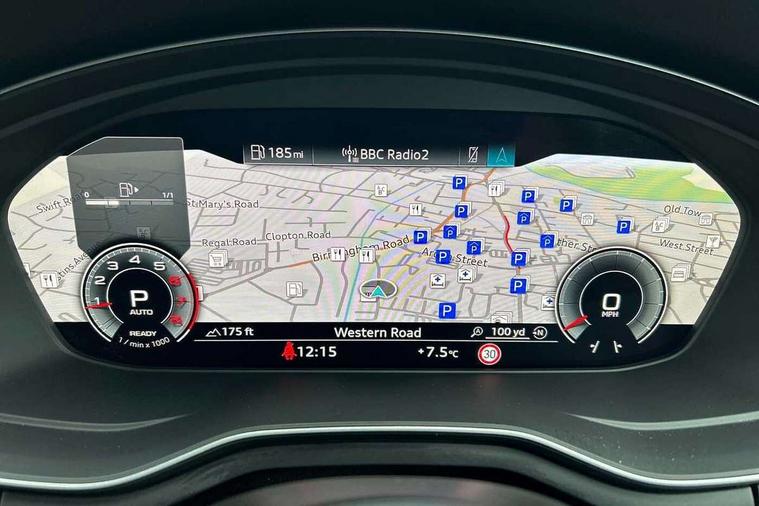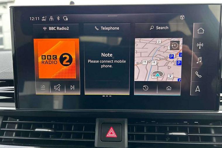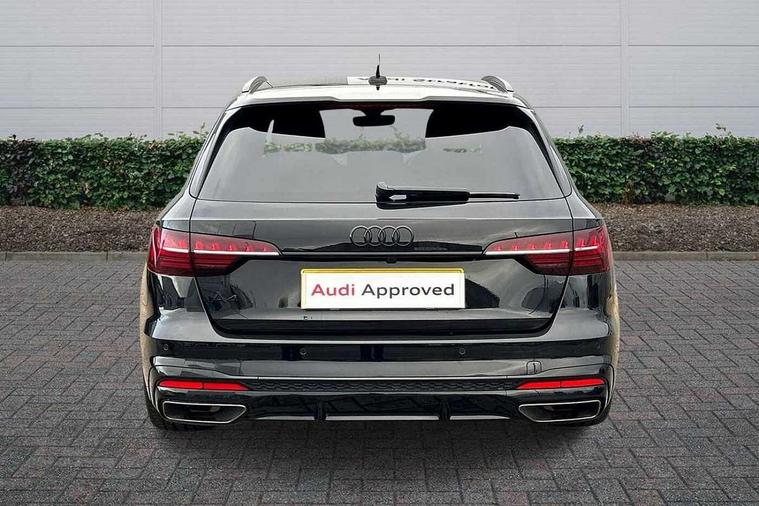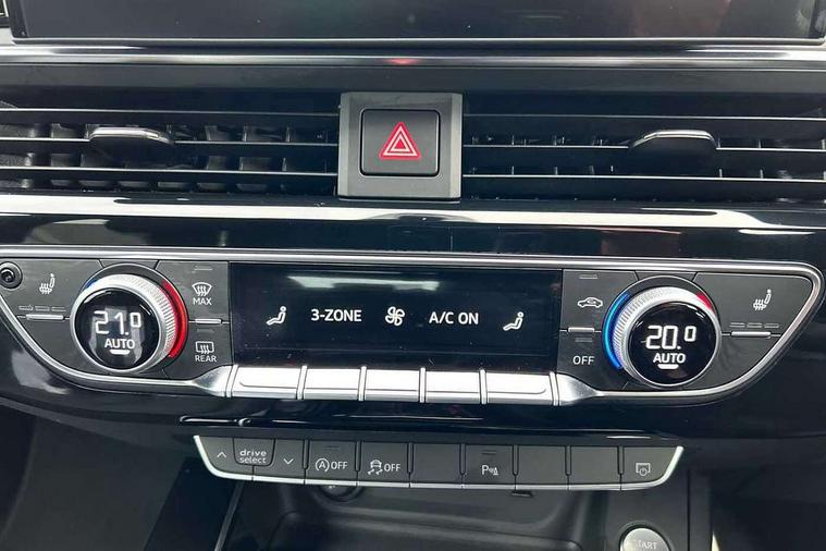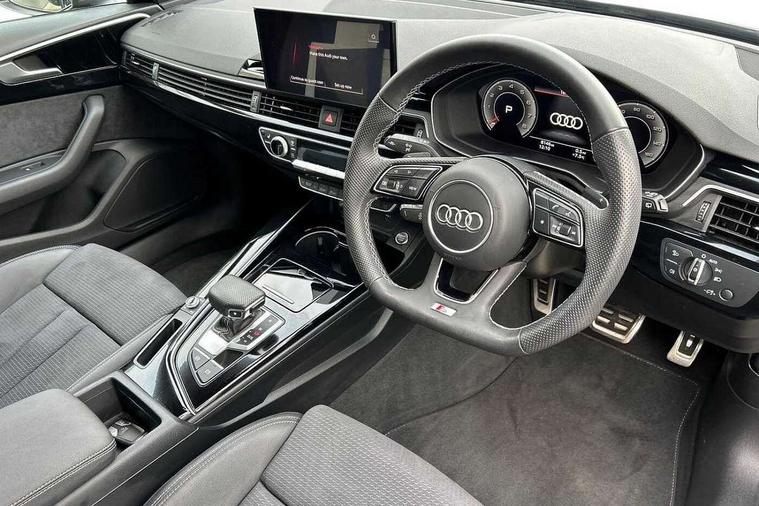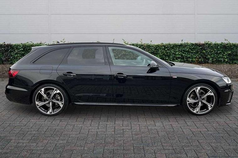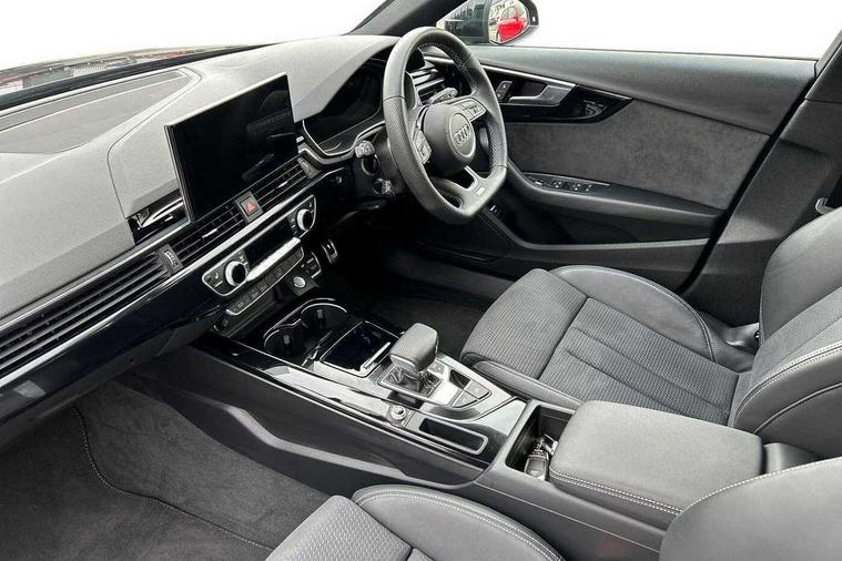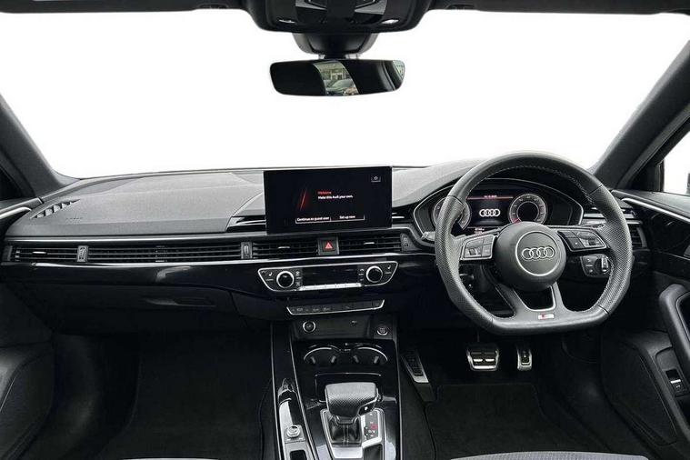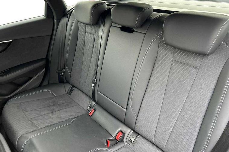 Audi connect safety and service (e-call), Audi drive select, Audi smartphone interface, Audi virtual cockpit, Automatic start-stop system with coasting functionality and efficiency programme, Bluetooth interface, Camera based traffic sign recognition, Electromechanical power steering, Email, calendar and text messages displayed via MMI, Front and rear parking sensors, Lane departure warning, MMI Navigation plus with MMI touch includes 10.1" high resolution colour MMI display, 3D map, Power operated tailgate, Rear view camera, Voice control system, 54 litre fuel tank, Sports suspension lowered by 23mm, 2 USB charging ports, 8 passive loudspeakers, DAB digital radio reception, Audi beam uses LEDs to project the audi logo onto the ground as you exit your A4, Auto dimming rear view mirror, Black Audi rings and black badging (model name in black badging, no engine badging), Body colour door handles, Body colour front spoiler lip, Body colour side sill trim, Electric adjustable/heated/folding door mirrors with auto dimming, Exhaust tailpipes in high dark chrome, Grained matt black side air inlets with matt aluminium silver inlay, High beam assistant, High gloss black B pillar trims and triangular rear door trim, LED headlights with LED rear lights + dynamic rear indicators + headlight adjustment and high beam, turning light + LED daytime running lights, LED third brake light, Privacy glass, Rain and light sensors, Rear diffuser in matt black with trim strip in matt aluminium silver, Rear side wing doors, Rear wiper, RS4 rear spoiler in body colour, S Line roof edge spoiler, Sport front and rear bumpers with side skirts, Variable intermittent front wash/wipe, Windscreen with acoustic glazing, 4 way electric lumbar support for driver and front passenger, 40/20/40 split folding 3 rear seat bench in 3 parts with rear centre armrest, Black carpets, Black cloth headlining, Black perforated leather gearknob, Contrast stitching on seats, steering wheel and gear lever gaiter, Deluxe 3 zone electronic climate control, Electric load area cover, Front and rear head restraints, Front centre armrest, Heated front seats, Illuminated door sill trims with S logo, ISOFIX child seat mounting and top tether, Manual seat adjustment, Single front passenger seat, Stainless steel pedals and foot rest, Tool kit, Black styling pack - A4 Avant, LED Interior light pack - A4/S4, 3 rear seatbelts, 6 airbags - Driver, front passenger, curtain and side windows, Attention and drowsiness assist, Electronic Stabilisation Control (ESC) including ABS, ASR and EDL, Hill hold assist, Multi collision brake assist, Pop-up bonnet for pedestrian protection, Pre sense city, Rear door child safety locks, Seatbelt monitoring, Warning triangle and first aid kit, Anti theft alarm, Anti theft wheel bolts, Central locking, Keyless Go, Piano black finish inlay, Tyre repair kit,