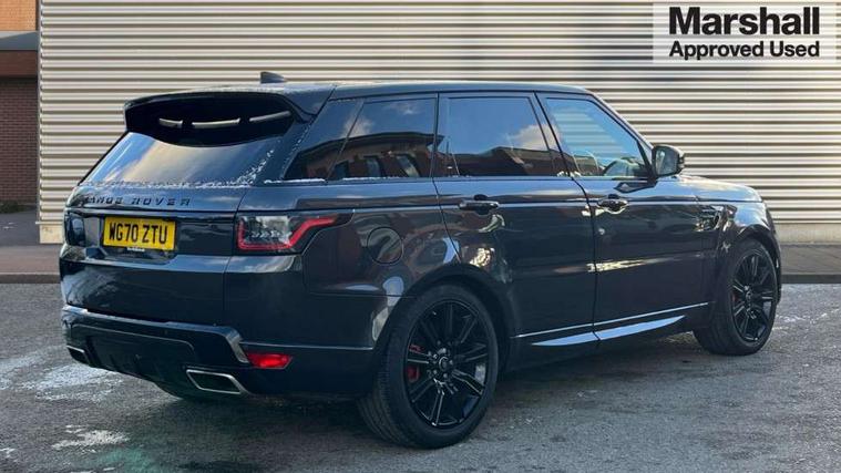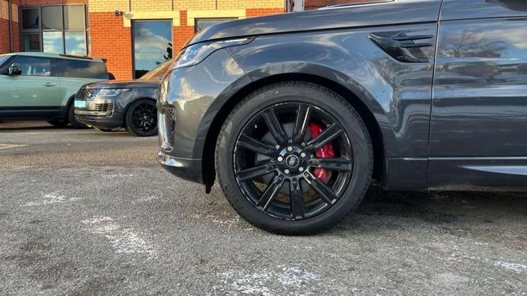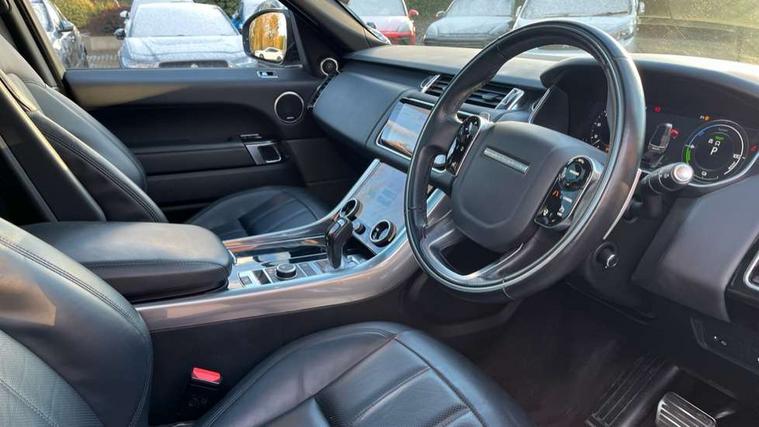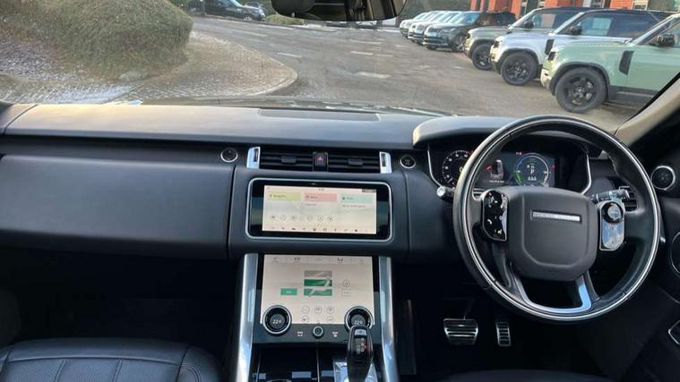 All Terrain Info Centre, Android Auto, Apple car play, Bluetooth connectivity, Electric power assisted steering (EPAS), Incontrol apps in vehicle touchscreen, Interactive Driver display instrument cluster, Mist sensor, Navigation pro system with 10" touch screen, app interface and media storage, Pro services and wifi hotspot, Push button start, Remote premium - Upgraded Incontrol remote app including remote climate control (engine dependent), remote lock + Unlock and remote beep + flash, TFT Virtual Instrument Panel, Touch pro duo system, Trip computer, 7 kW onboard charger, Adaptive dynamics, Electronic active differential with brake torque vectoring, Electronic air suspension, Gradient release control (GRC), Public charging cable, Terrain Response 2 with dynamic program, Twin speed transfer box, Bluetooth audio streaming, DAB Radio (Digital Audio Broadcasting), Incontrol protect - SOS emergency call with automatic collision detection, optimised assistance call and Incontrol remote app essential, USB/aux input socket, Acoustic front and toughened rear side glass, Acoustic laminated front windows, Adaptive brake lights, Auto dimming interior rear view mirror, Automatic headlights, Body coloured side sills and bumpers corners, Electric windows with one touch open/close and anti trap, Electrical towing preparation, Engine cover, Follow me home lighting, Front and rear recovery eyes, Front fog lights, Headlight power wash, Heated rear window, Heated windscreen includes heated washer jets, Illuminated metal treadplates with brand name script, LED rear lamps, Privacy glass (Tinted glass rear of B pillar), Rain sensing windscreen wipers, Rear fog lights, Rear wash/wipe, Remote window closing, Side repeater indicators in mirror, Sport Badge in black, Standard bonnet, Trailer stability assist, Twin bright tailpipes, 2 way active front head restraints, 2 way rear head restraints, Auto air recirculation, Bright metal foot pedals, Centre console with armrest, Climate control memory, Customer configurable single point entry, Driver's footrest, Extended leather upgrade includes door top rolls and leather instrument panel mid section, Front and rear cupholders, Front door storage space, Front map lights, Front seat back map pockets, Front stowage pocket, Front/rear passenger grab handles, Heated steering wheel, Isofix child seat preparation, Leather steering wheel with Atlas inserts, Loadspace light, Loadspace mounting provisions, Lockable glovebox, Multifunction steering wheel, Perforated Windsor leather upholstery, Pollen filter, Power socket, Reach/rake electric adjustable steering column + entry/exit tilt away, Rear centre armrest, Rear ISOFIX, Roller blind loadspace cover, Satin chrome gearshift paddles, Sports pedals, Three 12V accessory power outlets, Black Exterior pack - Range Rover Sport Dynamic, Smartphone pack - Range Rover Sport, 3 point seatbelts on all seats, Anti-lock braking system (ABS), Brake pre-fill technology, Cornering brake control (CBC), Curtain airbags, Customer configurable autolock, DSC - Dynamic Stability Control, Dual stage driver/passenger airbags, EBD - Electronic brakeforce distribution, Electric parking brake, Electronic traction control, Emergency braking includes city, urban AEB and pedestrian, Front seatbelt pretensioners, Gradient acceleration control, Height adjustable front seatbelts, Hill descent control, Hill launch assist, Low traction launch, Passenger seat occupant detector with front airbags, Power operated child locks, Roll stability control, Seatbelt warning, TPMS (Tyre pressure monitoring system), Immobiliser, Intrusion sensor, Keyless entry, Locking wheel nuts, Perimetric and volumetric anti theft alarm, Remote locking, Grand black veneer, 21" 9 spoke gloss black alloy wheels - style 9001, Tyre repair system,