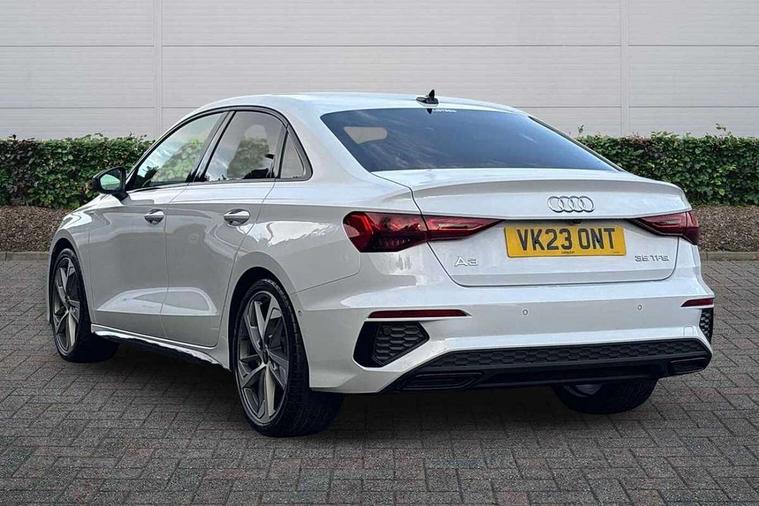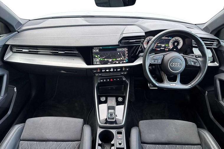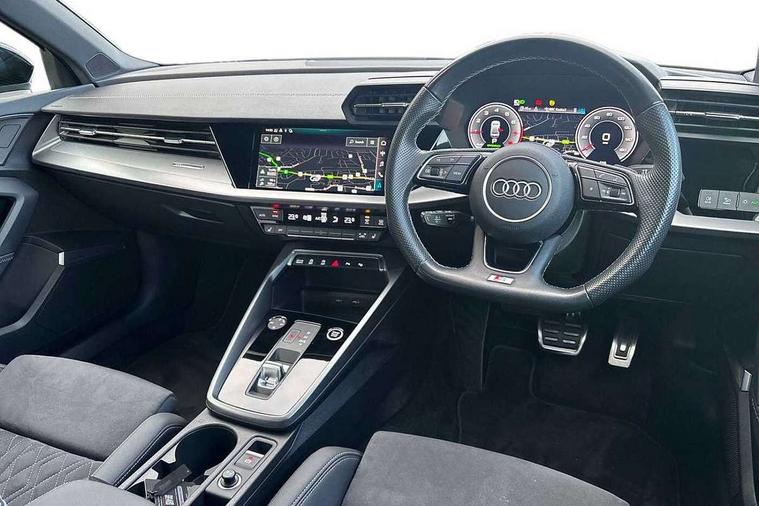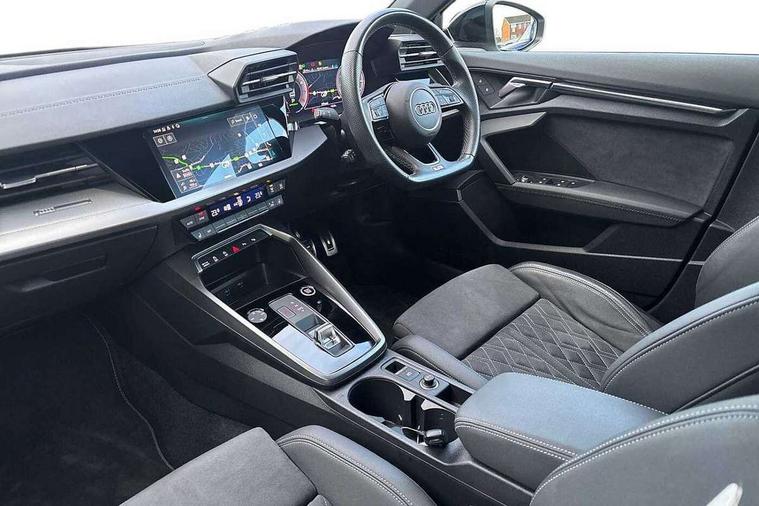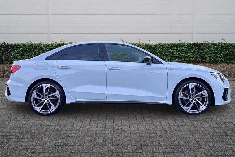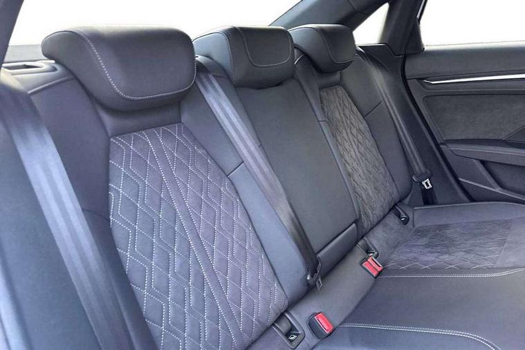 Audi connect emergency call and service, Audi drive select (Auto, Comfort, Dynamic, Efficiency and Individual), Audi smartphone interface, Audi virtual cockpit plus - 12.3" dynamic digital instrument cluster, Automatic start/stop system with recuperation, Bluetooth interface, Collision avoidance assistant, Electromechanical power speed sensitive steering, Lane departure warning system, MMI Navigation Plus with high resolution 10.1" colour touch screen display, Service indicator, Voice control system with natural language interaction, Sports suspension, 2x USB Type C ports (for charging and data transfer), 6 passive loudspeakers, CD player, DAB Digital radio, 3rd brake light, Acoustic glass windscreen, Audi matrix LED headlights, LED rear lights, dynamic front and rear indicators and headlight cleaning system, Auto dimming frameless rear view mirror, Electrically adj heated/folding + automatically dimming exterior mirrors + automatic kerb side function for passenger side exterior mirror, Front electric windows, Illuminated door sills with aluminium inserts at the front with S logo, Integrated LED indicators in door mirrors, LED daytime running lights, Light and rain sensors, Model and engine designation badges at rear, Privacy glass - dark tinted rear window, rear door and side windows, Rear boot, Rear electric windows, Rear side wing doors, S roof spoiler, 12V socket and storage compartment in front centre console, 3 seat bench in 2nd row, 4 way electrically adjustable lumbar support for driver and front passenger, 40/20/40 split folding rear seat bench with cupholder, Black cloth headlining, Dual zone electronic climate control, Electrically adjustable front seats, Front and rear centre armrest in leather, Front and rear headrests, Front/rear floor mats, Heated front seats, Height and reach adjustable steering wheel, Illuminated vanity mirror, Interior lighting - glove compartment light and right hand side, Luggage compartment floor covering, Manual boot compartment lid, Single front passenger seat, Stainless steel pedals and front footrest in black, Aluminium interior elements pack - A3, Black styling pack - A3/S3, Dinamica microfibre/mono.pur 550 artificial leather pack - A3 Saloon, Extended ambient lighting pack - A3/S3 Saloon, LED interior lighting pack - A3 Saloon, 3x3 point rear seat belts, Driver and front passenger airbag with passenger airbag deactivation, Electronic Stabilisation Control (ESC) including ABS, ASR and EDL, First aid kit with warning triangle and 2 safety vests, Front side airbags with head airbags and interaction airbag, Hill hold assist, Pre-sense front with pedestrian and cyclist detection, Seatbelt monitoring, Tyre pressure loss indicator, Anti theft alarm, Anti-theft wheel bolts, Electronically operated child locks, Immobiliser, Remote control central locking, Aluminium air vent surrounds, Aluminium trim elements, Dark spectrum aluminium inlays, accent surfaces in the dashboard and centre console in platinum grey silk effect paint finish, 19" 5 arm trapezoid design alloy wheels in matt grey with diamond cut finish,