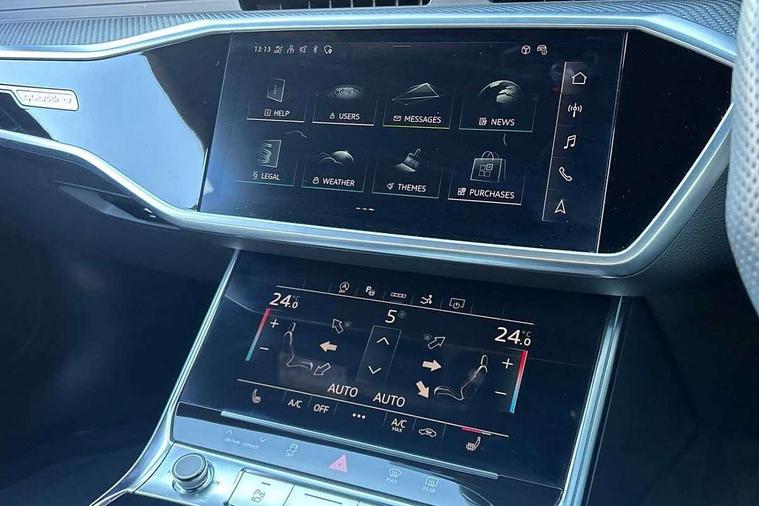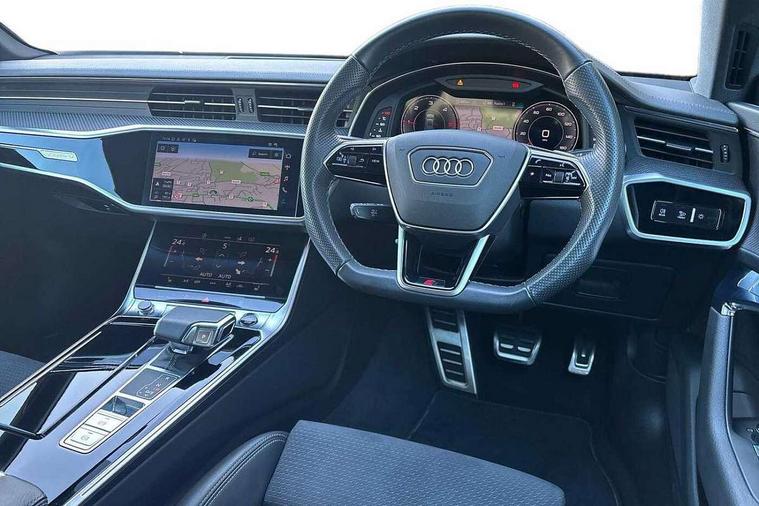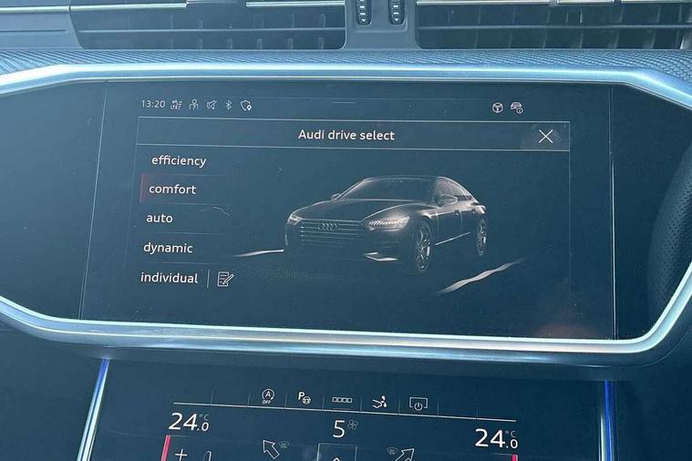 Audi connect safety and service (e-call), Audi connect with Amazon Alexa Integration, Audi drive select, Audi parking system plus - acoustic and visual park assist system for front and rear, Audi smartphone interface, Audi virtual cockpit - 12.3" high resolution LCD digital instrument cluster display, Automatic start/stop system with coasting functionality, Bluetooth interface, Colour driver's information system display, Electric boot lid release, Lane departure warning system, MMI nav plus with MMI touch + 10.1" and 8.6" HD haptic touch screen/3D city models/country information/online map/route info and personal route assist, Operating buttons in black, glass look with haptic feedback, Power operated tailgate, Progressive steering, Rear view camera, Service indicator, Voice control system, 24 litre AdBlue tank, Diesel particulate filter, Sports suspension, Audi music interface - 2 USB ports with charger and data functions, Audi sound system with 6 channel amplifier, 180 watt amplifying capacity and 10 loudspeakers including subwoofer, Auxiliary input socket, DAB digital radio module, Coming/leaving home animations in front and rear, Frameless auto dimming interior rear view mirror, Front and rear electric windows, Gloss black highlights on the exterior area of the Audi Single frame, Gloss black highlights on the front and rear bumpers, Gloss black highlights on the radiator grille, Gloss black highlights on the side windows trim strips, HD Matrix LED headlights with dynamic front and rear indicators, Headlight washers, Heat insulating glass in side and rear windows, Rain and light sensors, Rear side wing doors, Rear wiper, Retractable rear spoiler, S line air inlet design with inlay in high gloss black, S Line badge on front fender, S line badge on front grille, S Line Black rear diffuser with chrome inlays and rear grille, S Line side skirts, Signature LED daytime running lights, Third brake light, Towbar preparation, Windscreen with heat-insulating glass, 2 zone deluxe electronic climate control, 4-way electric lumbar support, 40/20/40 split folding 3 seater rear seat bench with rear centre armrest, Black cloth headlining, Electrically adjustable front seats - driver seat with memory, Front and rear headrests, Front centre armrest, Heated front seats, Height/reach adjust steering wheel, Illuminated door sill trims with S logo, Illuminated sun visors with vanity mirrors, ISOFIX child seat mounting and top tether in front and outer rear seats with front passenger airbag deactivation, Leather gear knob, Leatherette upper instrument panel and door shoulders, Luggage compartment floor, S line front and rear floor mats with contrast stitching, Single front passenger seat, Stainless steel pedals and foot rest, Tool kit and car jack, LED interior ambient lighting pack - A7, Non smoking pack - A7, 3 point seatbelts on all seats, Audi pre-sense front, Driver and passenger airbags, Electromechanical parking brake, Electronic stabilisation control including ABS, ASR and EDL, Extended pedestrian protection measures, Hill hold assist, Manual child lock in rear doors, Seatbelt monitoring, Tyre pressure warning light, Warning triangle and first aid kit, Anti theft alarm with tow away protection, Anti-theft wheel bolts and wheel loosening detection, Immobiliser, Keyless Go, Preparation for tracking system, Remote central locking, Carbon twill inlays, 20" 5 double arm design Audi sport cast aluminium high sheen matt grey look alloy wheels,