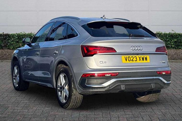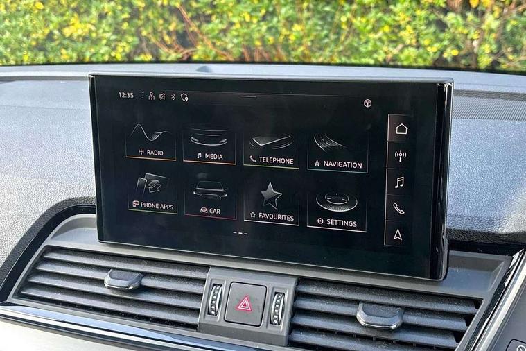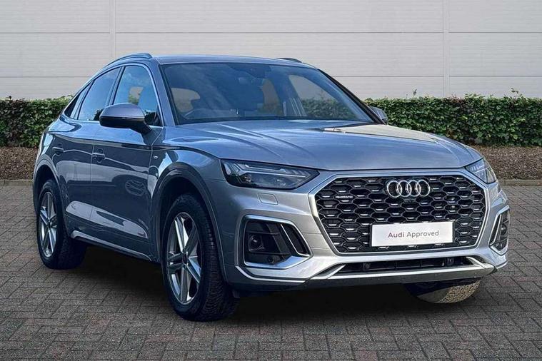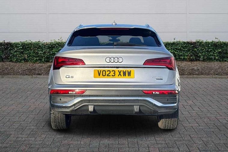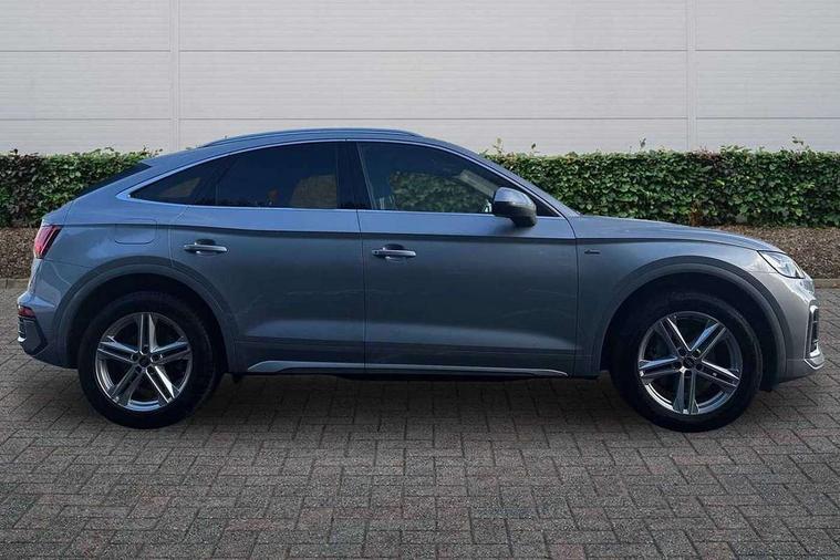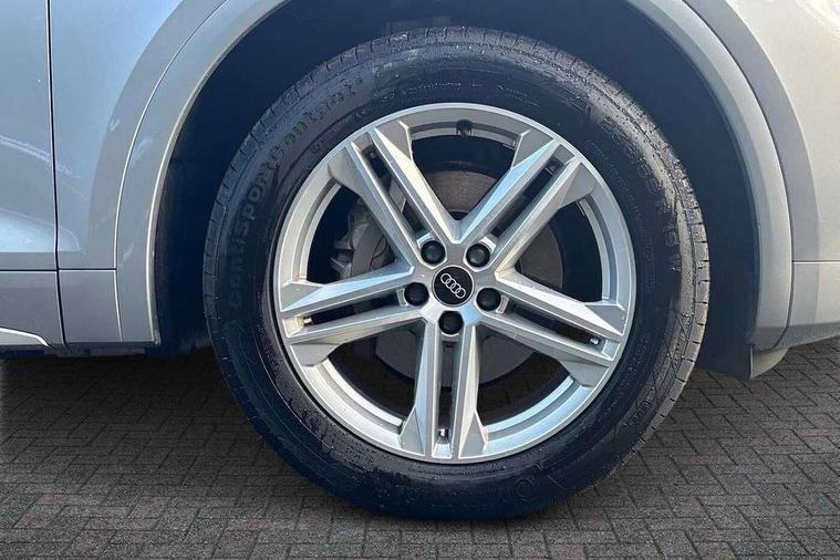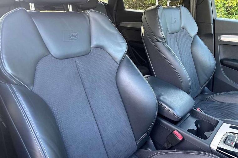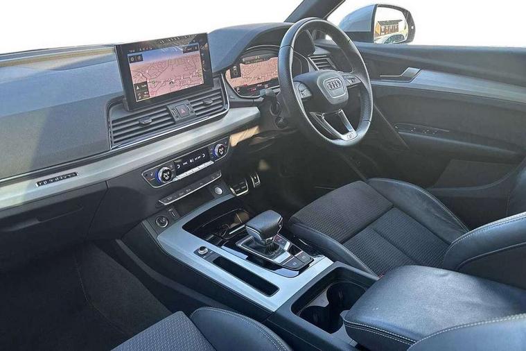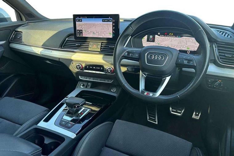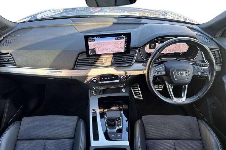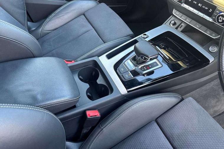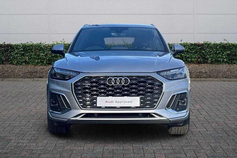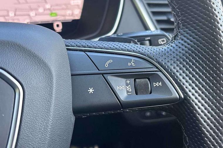 Acoustic front and rear parking sensor, Audi connect safety and service (e-call), Audi connect with Amazon Alexa Integration, Audi drive select, Audi virtual cockpit plus with 12.3" screen and three different layout designs, Audi wireless smartphone interface, Automatic start-stop system with coasting functionality and efficiency programme, Bluetooth interface, Electro - mechanical power assisted steering, MMI navigation plus with 10.1" touch screen, Power tailgate, Reversing camera, Service interval indicator, Voice control system with Audi hotword activation "Hey Audi", Diesel particulate filter, Quattro on demand, S line sports suspension, 2 x USB charging port with aux input socket, 8 loudspeakers, DAB Digital radio, Acoustic windscreen, Aluminium roof rails, Audi matrix LED headlights with dynamic front and rear indicators, Auto dimming door mirrors, Auto dimming frameless rear view mirror, Automatic headlight adjustment, Automatic headlights and windscreen wipers, Body colour door mirrors, Body colour rear diffuser with matt aluminium silver surrounds, Body colour underbody protection, Chrome plated exhaust trims, Daytime running lights, Door sills in Selenite silver, Electric adjustable/heated/folding door mirrors, Front air inlet surrounds in aluminium, Front and rear electric windows, Front radiator grille in honeycomb design, Headlight washers, High level LED brake light, Lower bumpers painted in contrast Manhattan grey, Rear chrome trim strip below lights, Rear privacy glass and rear side windows, Rear side wing doors, Rear wiper, Roof bars, S Line badges on the front wings, S Line front and rear bumpers, S Line rear spoiler, S Line side skirts, 3 rear headrests, 3 spoke leather multifunction steering wheel with S badging perforated leather grips, 40:20:40 split folding 3 rear bench seat in 2nd row with rear centre armrest, Black cloth headlining, Comfort front centre armrest, Contrast stitching on seats, steering wheel and gear lever gaiter, Deluxe 3 zone electronic climate control, Front head restraints, Front/rear floor mats, Gear lever in black leather, Heated front seats, Height/reach adjustable steering column, Illuminated door sill trims with S logo, Manual seat adjustment with 4-way electric lumbar support, Removable luggage compartment floor, Single front passenger seat, Stainless steel pedals, Sunvisors with vanity mirrors, Trunk roller cover, High gloss pack - Q5, LED interior light pack - Q5, 3 point seatbelts on all seats, 6 airbags - Driver, front passenger, curtain and side airbags, Electrically operated child locks on rear doors, Electromechanical parking brake, Electronic stabilisation control including ABS, ASR and EDL, First aid kit with warning triangle and vests, Front passenger airbag deactivation, Hill descent control, Hill hold assist, ISOFIX child seat mounting for front passenger seat and ISOFIX child seat mounting with Top Tether for outer rear seats, Multi collision brake assist, Pop-up bonnet for pedestrian protection, Pre sense city, Seat belt force limiter, Seatbelt monitoring, Tyre pressure warning, Anti theft alarm, Anti-theft wheel bolts, Keyless Go access/ignition system, Remote central locking, Air vents inserts and centre console in gloss black, Matt brushed aluminium inlays,