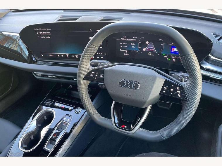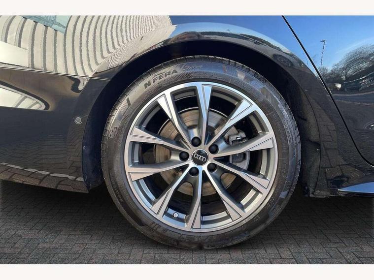Audi application store, Audi assistant, Audi connect emergency call and service, Audi connect with Amazon Alexa Integration, Audi digital key, Audi drive select, Audi phone box with wireless charging, Audi virtual cockpit, Automatic start/stop system with coasting functionality, Bluetooth interface, Luggage compartment lid with Electric opening / closing, MMI navigation plus with high resolution 14.5" OLED touchscreen colour display, Power assisted steering, Service interval indicator, Smartphone interface includes wireless Apple carplay/Android Auto, Voice control system, Sports suspension, Audi sound system impressive sound with 10 loudspeakers including centre speaker and subwoofer, 6-channel amplifier with a total output of 180 watts, DAB Digital radio, USB ports with charging function, Aluminium roof rails, Audi Matrix LED technology, Auto dimming rear view mirror, Automatic-dynamic headlight range control, Body colour door mirrors, Body coloured door handles, Dipped beam, main beam, position light, dynamic indicator and cornering light, Door mirrors - electrically adjustable, heated, folding and auto dimming on both sides, Dynamic light scenarios of the coming home/leaving home function when stationary, Electric front/rear windows, Frameless auto dimming interior rear view mirror, Front illuminated aluminium inlay door sill trims with S logo, Headlight cleaning system, LED headlights Plus incl. digital daytime running lights, turning light, all-weather light, motorway light, manouevring light and intersection light, LED rear lights pro incl. brake lights, tail lights, rear number plate lights, reversing lights, continuous light strip, LED third brake light, Privacy glass, Rain and light sensors, Rear and side windows with heat insulating glass, Rear boot, Rear side wing doors, Roof spoiler, S line exterior styling, Sport exterior inc Radiator grille, air inlets and diffuser in scandium grey as well as inlay in diffuser in selenite silver, Towbar preparation, White rhombus logo projection light in exterior mirrors, Window trim strips in aluminium look, Windscreen with heat insulating and acoustic glazing, 3 seat bench in 2nd row, 3-spoke Sport leather steering wheel flat top and bottom with multifunction and shift paddles, 4 way electric lumbar support for driver and front passenger, 4 zone deluxe automatic climate control, 40:20:40 split folding rear seat bench with centre armrest and cup holders, Black front and rear floor mats, Centre armrest, front- adjustable angle with four settings, Electrically adjustable front seats, Front head restraints, Heated front seats, i-Size child seat mounting on the front passenger side and outer rear seats, i-Size and top tether on the outer rear seats, Manual steering wheel adjustment, Rear headrests, Single front passenger seat, Sport front seats, Stainless steel pedals and footrest, Steering wheel trim in chrome look, S emblem, steering wheel grips in perforated leather and contrasting stitching, Twin leather/artificial leather upholstery, Ambient lighting package plus - A6, Drive and Park assistance package - A6, Protective warning assistance package - A6, 3x3 point rear seat belts, Black seat belts, Convenience key with safelock, Driver and front passenger airbags, EBD - Electronic brakeforce distribution, Electric rear child safety lock, Electromechanical parking brake, Electronic Stability Control (ESC) including ABS, ASR and EDL, First aid kit with warning triangle and vests, Front passenger airbag deactivation, Seatbelt monitoring, Side airbags front with head airbag system and interaction airbag, Standard 18"steel disc brakes front and rear, Tyre pressure monitoring system, Anti theft alarm, Anti-theft wheel bolts, Immobiliser, Keyless Go, Remote central locking, Accents in the interior in aluminium look, Inlays in matt brushed aluminium with linear embossing, anthracite, Upper and lower interior elements in leatherette with contrasting stiching, Wraparound interior elements in artificial leather, Tyre repair kit,