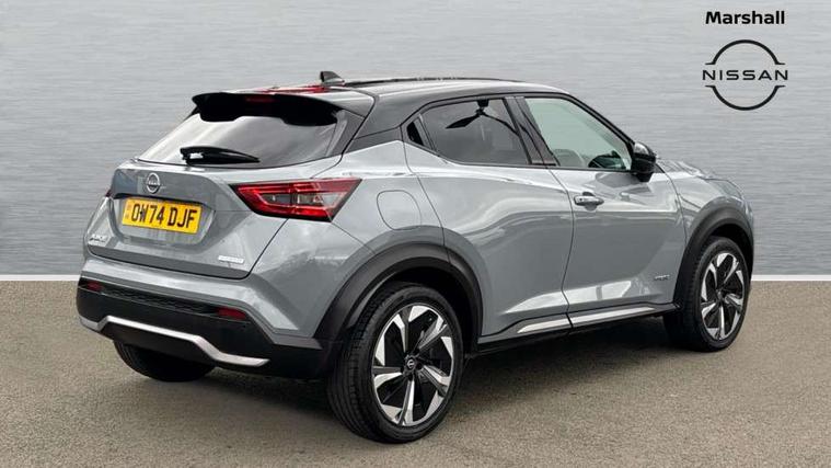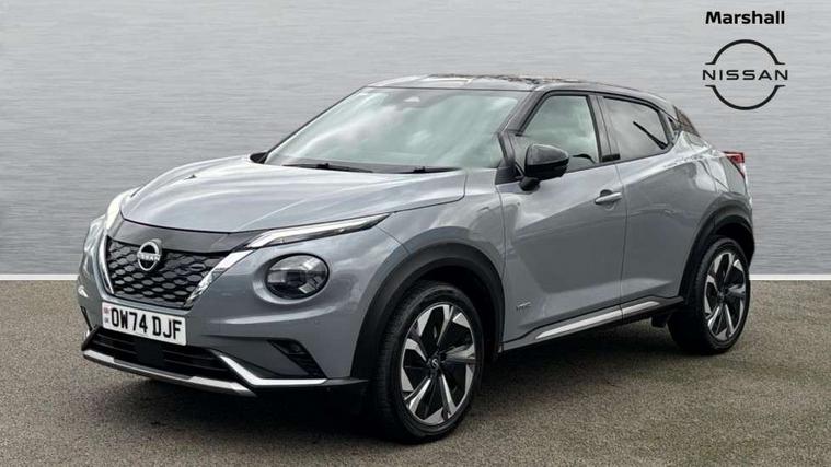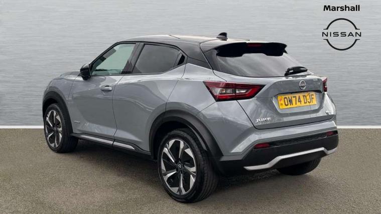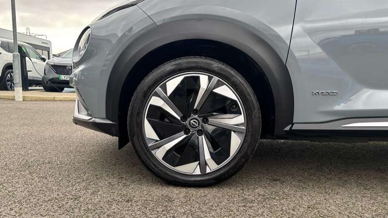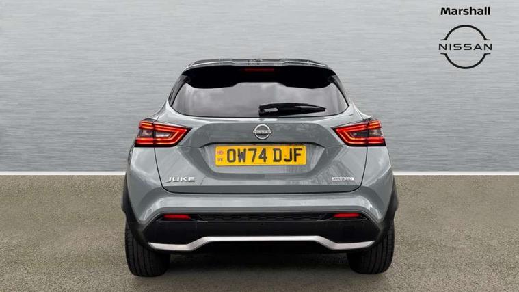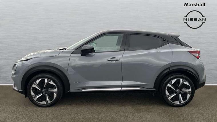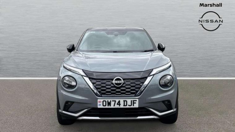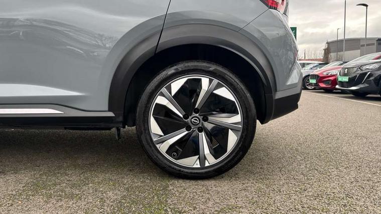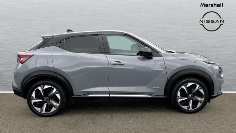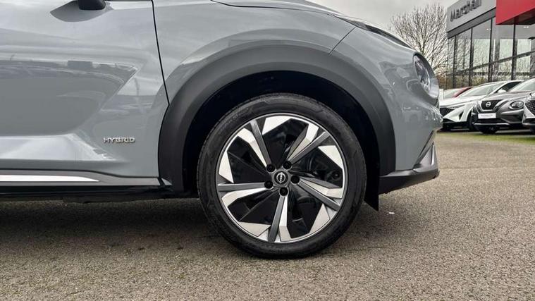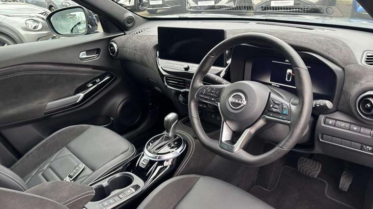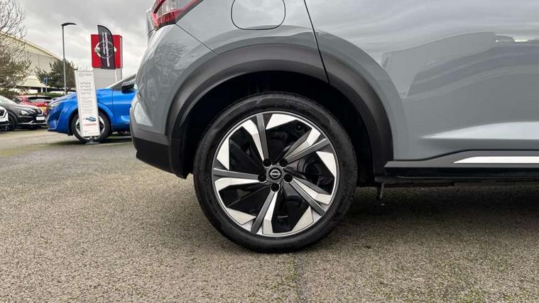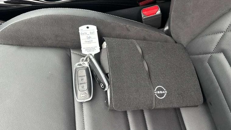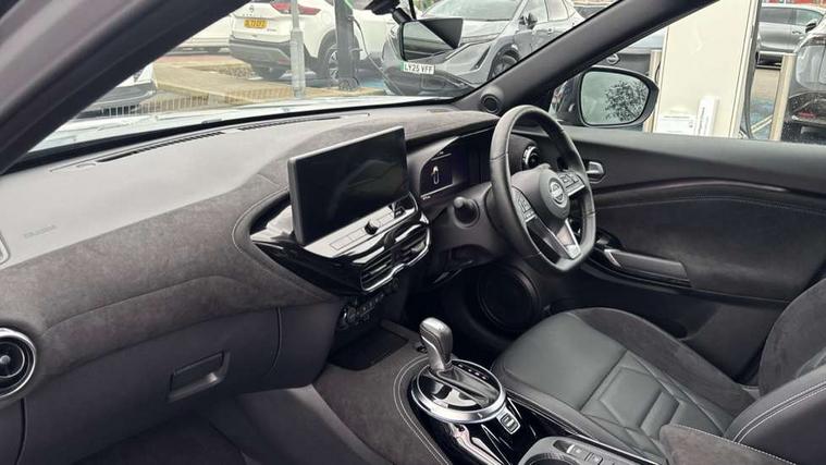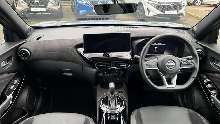 12.3" full colour TFT screen combimeter, Drive modes select (Eco, normal and sport), e-Pedal step, Emergency and breakdown call, EV mode switch, Front parking sensor, Intelligent driver alert system, Intelligent lane intervention, Lane departure warning system, Nissan connect 12.3" touch screen entertainment system, Nissan connect nav with TomTom traffic, Nissan connect services, Outside temperature sensor, Power Steering, Rear parking sensor, Stop/start button, Traffic sign recognition, Trip computer, Voice recognition, WiFi connectivity, Wireless Apple CarPlay and Google Android auto, Wireless Smartphone charger, 10 Bose speakers 6 speakers and 2 headrest speakers for driver/passenger seats, 2 X Rear console USB port, Bluetooth system, USB, Aux-in and 12V socket, Bose personal sound stage control, DAB Digital radio, Auto dimming frameless rear view mirror, Automatic hazard signal with emergency stop signal, Body colour door handles, Electrically adjustable door mirrors with integrated indicators, Follow me home headlights, Front and rear electric window with one touch driver window, Heated and auto folding door mirrors, High beam assist, LED 3rd brake light, LED daytime running lights, LED front fog lights, LED headlamps, LED rear fog lamp, LED rear lamps, One touch passenger window, Rain sensor windscreen wipers, Rear privacy glass, Rear side wing doors, Rear wiper, Roof spoiler, Shark fin roof antenna in solid Black, Three blink turn signal, 3 height adjustable rear headrests, 3 seat bench in 2nd row, 60/40 split folding rear seat, Automatic climate control, Card holder on driver sunvisor, Door ambient lighting, Driver seat back pocket, Driver side rear coat hanger, Driver/passenger sunvisors and vanity mirrors, Front and rear cabin lights, Front armrest, Front door pockets with bottle holders, Front head restraints, Front/rear passenger grab handles, Gear console ambient circle lighting, Height adjustable driver's seat, Internal chrome door handles, Leather gearshift knob, Luggage board, Luggage space lighting, Monoform sporty seats, Multifunction steering wheel, Passenger seat back pocket, Rear door bottle holders, Single front passenger seat, Smooth synthetic leather steering wheel, Synthetic leather kneepad, Telescopic steering wheel adjustment, Two cupholders in front centre console, Two rear isofix child seat anchorage points with top tether, Welcome light and console tray ambient lighting, Heat pack with height adjustable passenger seats - Juke, Interior personalisation pack - Juke, ProPilot pack - Juke Auto, Satin grey exterior personalisation pack - Juke, ABS with EBD and brake assist, Active ride control, Active Trace Control, Driver and passenger airbags, Driver and passenger side airbags, Electric handbrake with auto hold function, Electronic Stability Programme (ESP), Front and rear curtain airbags, Height adjustable seatbelts, Hill start assist, Intelligent emergency braking with pedestrian and cyclist recognition, Rear door child safety locks, Seatbelt reminder for driver/front passenger and rear seats, Three 3 point rear seatbelts, Traction control, Tyre pressure monitoring system, VDC Dynamic Vehicle Control, Alarm, Immobiliser, Intelligent key and start push button with walk away lock and approach unlock functions, Remote central locking, 19" Aero alloy wheels, Tyre puncture repair kit,