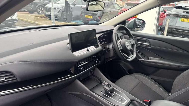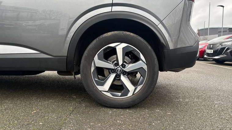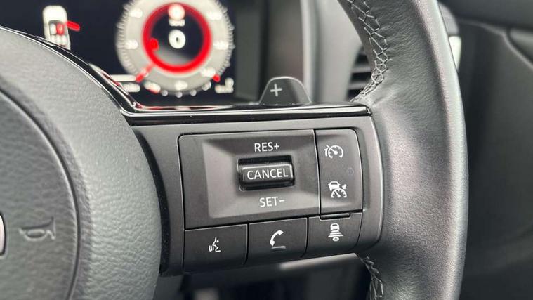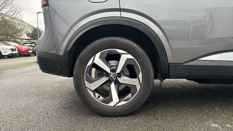 Android auto/Apple CarPlay (Wired), Blind spot warning, Drive modes (sport, normal, eco), Electric speed sensitive power steering, Emergency and breakdown call, Full Digital 12.3" TFT Digital Combimeter, Google maps services - search, weather, 3D maps and Google street view, Idle stop/start system, Intelligent around view monitor, Intelligent Cruise control (ICC), Intelligent driver alert system, Intelligent forward collision warning, Intelligent lane intervention, Lane departure prevention, Lane departure warning system, Maximum speed limiter, Moving object detection, Nissan connect 12.3 inch touchscreen infotainment system, Nissan connect navigation, Push button starter, Rear cross traffic alert, Rear parking sensors, Rear view camera, Remote control services - door locks, lights, horn and car locator, Telematics - notifications and connectivity services, TomTom live traffic services, Traffic sign recognition with legal speed adjustment, Trip computer, Virtual personal assistant and firmware over the air capability, Wireless apple carplay, 6 speakers, AM/FM audio system with DAB, Bluetooth audio streaming, Front USB connections (Type-A and Type-C), Rear USB charging only ports (Type-A and Type-C), Auto dimming rear view mirror, Auto rear wiper when reversing, Automatic hazard signal with emergency stop signal, Body colour mirror caps, Body coloured door handles, Bodyside mouldings, Chrome side window finisher, Door handle with button, Electric auto folding door mirrors, Electrically adjustable and heated door mirrors with LED turn indicator, Follow me home headlights, High beam assist, Intelligent auto headlights, LED daytime running lights, LED Headlights, LED rear lights, One touch front and rear electric windows with remote opening and closing, Partially body coloured bumpers, Privacy glass, Rear bumper with graphite insert, Rear reversing light (bulb lighting), Rear roof spoiler, Rear side wing doors, Rear styling plate, Shark fin antenna, Splash free rain sensing wipers, Super UV and infrared cut glass, Three blink turn signal, 12v power socket in dashboard and luggage, 2x Rear coat hooks, 3 bench rear seats in 2nd row, 3 rear headrests, 4 folding assist grip, 6 Luggage hooks - 4 on floor, 2 on side, 6-way manually adjustable driver's seat, 60/40 split folding rear seat bench, Ambient lighting around centre console, Centre console storage tray, Chrome interior door handles, Cloth monoform upholstery, Driver and front passenger sunvisors with illuminated vanity mirrors, Driver seat back pocket, Dual zone automatic climate control with pollen filter, Electrically adjustable lumbar support for driver, Front and rear door storage, Front centre console and armrest, Front cupholders x 2, Front door with bottle holders, Glovebox with light, Hard trunk cover, Height adjustable driver's seat, Height adjustable front headrests, Height adjustable passenger seat, Leather steering wheel, Luggage board system, Luggage space lighting, Manually adjustable passenger (slide recline + lifter), Multifunction steering wheel, Passenger seat back pocket, Rear armrest with 2 cupholders, Rear door bottle holders, Single front passenger seat, Soft PVC kneepad, Steering wheel gearshift paddles, Steering wheel switches, Sunglasses holder, Tilt/telescopic adjustable steering wheel, Two rear isofix child seat anchorage points with top tether, Welcome light and console tray ambient lighting, 3x3 point rear seatbelt pretensioners + load limiters, ABS with EBD and brake assist, Active brake limited slip, Auto hold function, Child locks on rear doors, Curtain and front side, far side airbags, Driver and passenger airbags, Driver, passenger and 2nd row rear seat belt reminder, Electronic parking brake, Front seatbelt pretensioners + load limiters, Height adjustable front seatbelts, Hill start assist, Intelligent blind spot intervention, Intelligent front emergency braking with pedestrian, cyclist recognition and junction assist, Intelligent rear automatic braking, Tyre pressure monitoring system, Vehicle dynamic control, Capless fuel filler, Engine immobiliser, Intelligent Key, Remote central door locking with deadlocking, Thatcham Cat.1 alarm, Interior instrumental panel B finisher, 18" Diamond cut alloy wheels, Tyre puncture repair kit,
