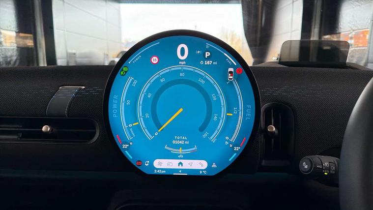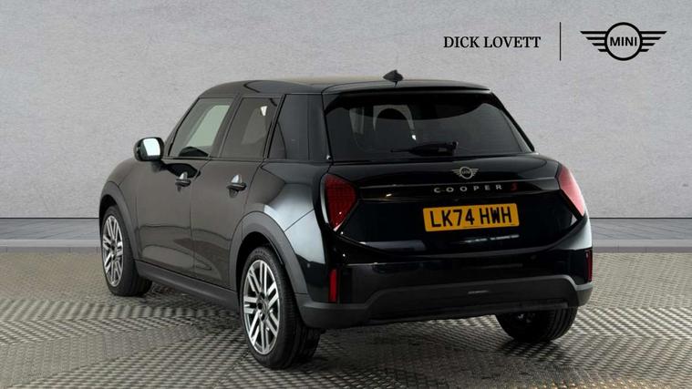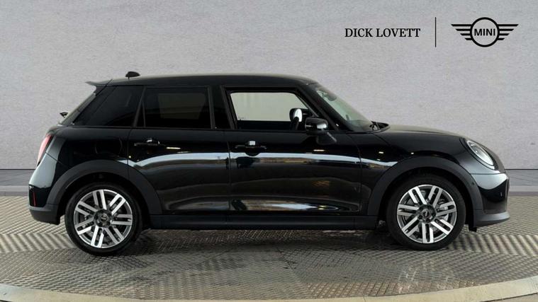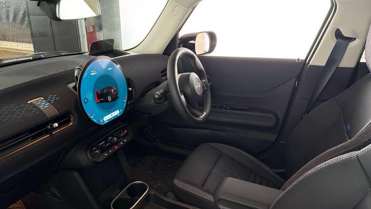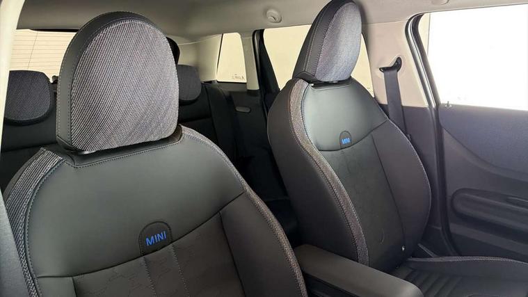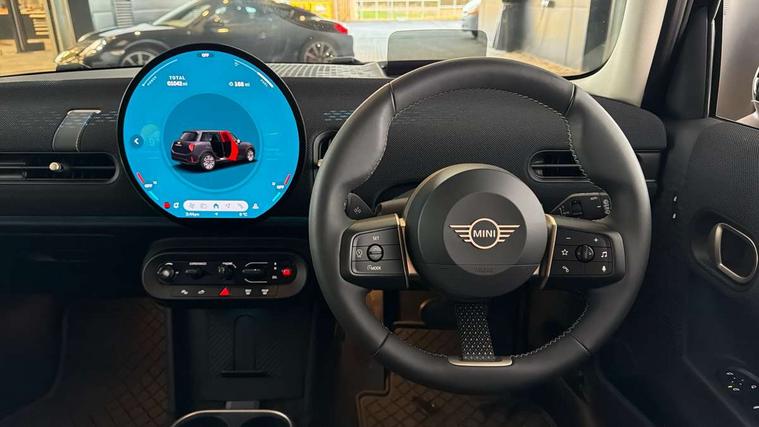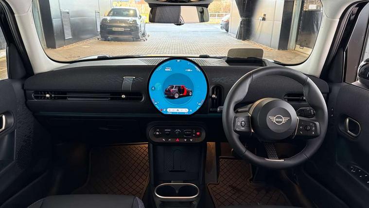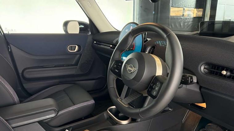 Central toggle bar, Circular OLED Screen, Compatible mobile phone bluetooth with audio streaming, Cruise control, Digital instrument cluster, Electro-mechanical speed dependant steering assistance, Emergency call service, MINI Experience Modes, Mini navigation system, On board computer, Service interval indicator, 7 speed steptronic transmission with double clutch, DAB Digital radio, Personal eSim, Adaptable light signatures, Auto headlights, Electric adjustable heated door mirrors, Electric front+rear windows, Heated rear window, Heated windscreen washer jets, LED daytime running lights, LED indicator lights, LED rear lights, Rain sensor window wipers, Rear fog lights, Rear side wing doors, Rear window wiper, 2 zone automatic air conditioning, 3 seat bench in 2nd row, 60/40 rear seat bench, Ambient lighting, Cupholders, Floor mats, Front and rear head restraints, Front compact armrest, Heated steering wheel, Height adjustable passenger seat, Light headliner, Luggage compartment lighting, Single front passenger seat, Sport Vescin Steering Wheel black with vibrant silver accents, Sunvisors with vanity mirrors, Vescin/Cloth upholstery, Driving assistant pack - Cooper Hatchback, Level 1 pack - Mini Hatchback, Park assistant pack - Cooper Hatchback, 3 point seatbelts on all five seats, 6 Airbags - front, side, head and seat belt tensioners, Acoustic pedestrian protection, Anti-lock braking system (ABS), Child locks on rear doors, DSC - Dynamic Stability Control, Electronic parking brake, Front and rear disc brakes, Front ISOFIX (iSize), Front passenger airbag deactivation, Traction control, Tyre pressure monitoring system, Alarm, Immobiliser, Remote central locking, Black/Blue dashboard knit, Tyre repair kit,