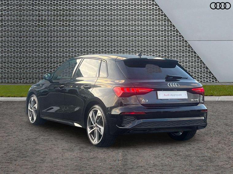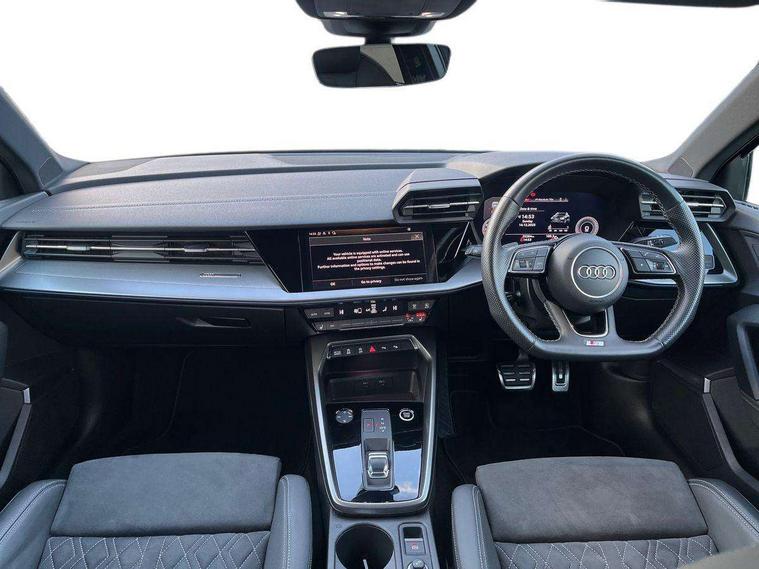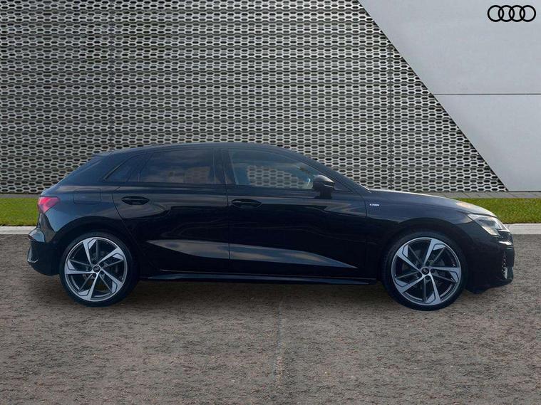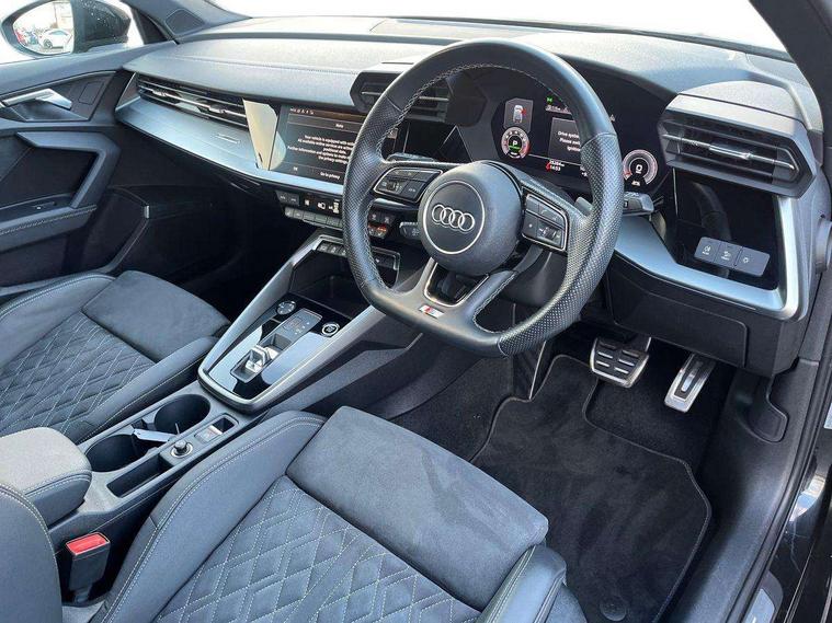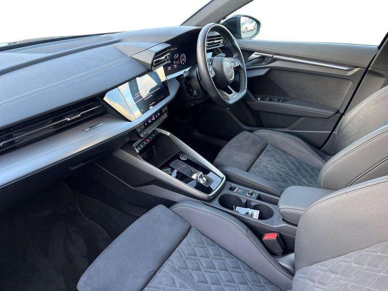 Audi connect emergency call and service, Audi drive select (Auto, Comfort, Dynamic, Efficiency and Individual), Audi smartphone interface, Audi virtual cockpit plus - 12.3" full HD resolution dynamic digital instrument cluster, Automatic start/stop system with recuperation, Bluetooth interface, Collision avoidance assistant, Electromechanical power speed sensitive steering, Lane departure warning system, MMI Navigation Plus with high resolution 10.1" colour touch screen display, Service indicator, Trip computer, Voice control system with natural language interaction, Sports suspension, 2xUSB-C connection with data and charging functions, 6 passive loudspeakers, DAB Digital radio, 3rd brake light, Acoustic glass windscreen, Audi matrix LED headlights with LED rear lights + dynamic front and rear indicators, Auto dimming frameless rear view mirror, Body colour front spoiler blade, Electrically adj heated/folding + automatically dimming exterior mirrors + automatic kerb side function for passenger side exterior mirror, Front electric windows, Headlight washers, Illuminated aluminium inserts front door sills with S logo, Integrated LED indicators in door mirrors, LED daytime running lights, Light and rain sensors, Privacy glass - dark tinted rear window, rear door and side windows, Rear diffuser in grained matt black, Rear electric windows, Rear side air outlets in grained matt black, Rear wiper, S roof spoiler, 12V socket and storage compartment in front centre console, 4 way electrically adjustable lumbar support for driver and front passenger, 40/20/40 split folding rear seat bench with cupholder, Black cloth headlining, Dual zone electronic climate control, Electrically adjustable front seats for driver's side, Front and rear centre armrest in leather, Front and rear headrests, Front/rear floor mats, Heated front seats, Height and reach adjustable steering wheel, Interior lighting - glove compartment light and right hand side, Luggage compartment floor covering, Seat side bolsters, Stainless steel pedals and front footrest in black, Aluminium interior elements pack - A3 Sportback, Black styling pack - A3 Sportback, Dinamica microfibre/mono.pur 550 artificial leather pack - A3 Sportback, Extended ambient lighting pack - A3 Sportback, LED interior lighting pack - A3 Sportback Edition 1/Vorsprung, 3x3 point rear seat belts, Driver and front passenger airbag with passenger airbag deactivation, Electronic Stabilisation Control (ESC) including ABS, ASR and EDL, First aid kit with warning triangle and 2 safety vests, Front side airbags with head airbags and interaction airbag, Hill hold assist, Pre-sense front with pedestrian and cyclist detection, Seatbelt monitoring, Tyre pressure loss indicator, Anti theft alarm, Anti-theft wheel bolts, Electronically operated child lock, Immobiliser, Remote control central locking, Accent surfaces in the dashboard and centre console in platinum grey silk effect paint finish, Dark spectrum aluminium inlays, 19" 5 arm trapezoid design alloy wheels in titanium matt grey with diamond cut finish,