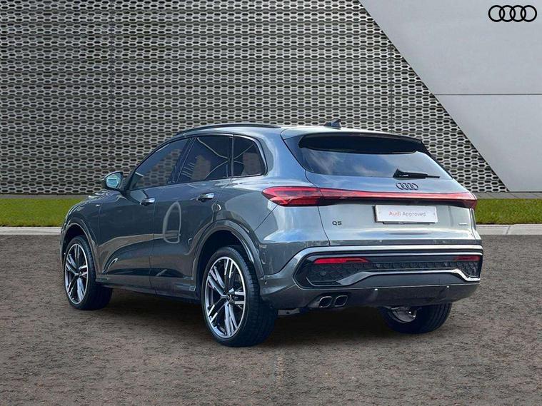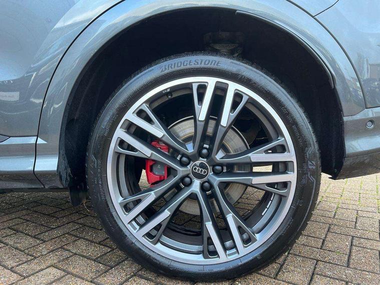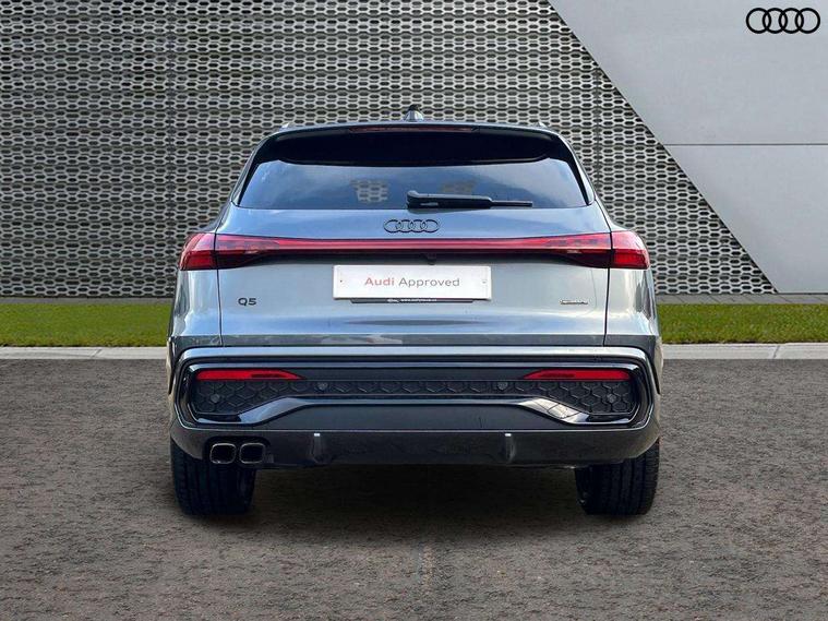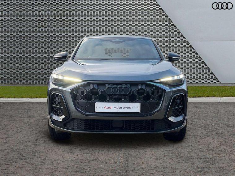 Adaptive cruise control, Advanced driver attention alert, Audi application store, Audi connect emergency call and service, Audi drive select, Audi smartphone interface, Audi virtual cockpit plus with 11.9" OLED colour display, Camera based traffic sign recognition, Fatigue monitor, Front cross traffic intersection assist, Lane change assistant with exit warning system, rear cross traffic alert and rear turn assist, Lane departure warning with emergency assist, MMI 10.9" front passenger touch display, MMI navigation plus with high resolution 14.5" OLED touchscreen colour display, Park assist plus, Parking system plus with 360 display, PAS, Reversing camera, Swerve assist and turn assist, Top view camera, Traffic sign based speed limiter, 2 USB-C ports in both the front and rear, Audi sound system impressive sound with 8 loudspeakers including centre speaker and subwoofer, 6-channel amplifier with a total output of 180 watts, DAB Digital radio, Smartphone compartment with wireless charging, Active digital light signatures - Six additional combinations of active daytime running light signature, Auto dimming rear view mirror, Black roof rails, Coming/leaving home lighting function, Electrically adjustable heated and folding + automatically dimming exterior mirrors, Exhaust tailpipes in dark chrome, Front and rear electric windows, Front door sill trims with aluminium inlays, illuminated with 'S' logo, Full body paint finish, Grill frame, inlay and front air inlets in matt anthracite chrome, Headlight cleaning system, Heated rear window, High beam assist, High gloss window surrounds, LED rear lights pro incl. dynamic rear indicators and illuminated light strip with animated coming and leaving home function, Logo projection light in exterior mirrors, Matrix LED headlights, Memory function for door mirrors, Privacy glass, Projection third brake light for rear window in LED, Radiator grille in phantom black, Rear and side windows with heat insulating glass, Rear honeycombe grille in matt black with inlay in matt anthracite chrome, Rear side wing doors, Rear wash/wipe, S Line badge on the front wings, Towbar preparation, Windscreen with acoustic glazing, 3 rear head restraints, 3 seat bench in 2nd row, 3 spoke leather steering wheel with multi-function buttons with touch control, flattened on top and bottom, with S badging and contrast stitching, 4 way electric lumbar support for driver and front passenger, 40:20:40 split folding rear seat bench with centre armrest and cup holders, Comfort centre armrest, Deluxe 3 zone electronic climate control, Dinamica microfiber/leather upholstery, Electrically adjustable front seats with memory function for driver's side, Front and rear floor mats, Front sport seats with integrated head restraints, Headlining in black cloth, Heated front seats, i-Size child seat mounting on the front passenger side and outer rear seats, i-Size and top tether on the outer rear seats, Interior trim in aluminium look, Luggage compartment lid, electrically opening and closing, Manual steering column adjustment, Single front passenger seat, Softwrap in Dinamica, Stainless steel pedals and footrest, Steering wheel grips in perforated leather and shift paddles, Ambient lighting package plus - Q5, Black styling package plus - Q5, Storage and luggage compartment pack - Q5, 3x3 point rear seatbelts, ABS, Acoustic vehicle alerting system, Convenience key with safelock, Driver and front passenger airbag with passenger airbag deactivation, Electric child safety locks, First aid kit with warning triangle and high visibility vests, Front emergency brake assist, Front side airbags with head airbag system and front interaction airbag, Hill hold assist, Occupant detection in rear seat area, Proactive passenger protection system for front, sides and rear, Red brake calipers, Side airbags in front and rear with head airbag system and front interaction airbag, Tyre pressure loss indicator, Anti theft alarm, Anti-theft wheel bolts, Remote control key with SAFELOCK and keyless go, Accent surfaces and control buttons in gloss black, Black dashboard with contrast stitching, Steel grey seat stitching, Upper and lower interior elements in dinamica microfiber, Tyre repair kit,