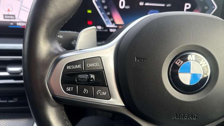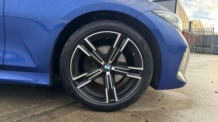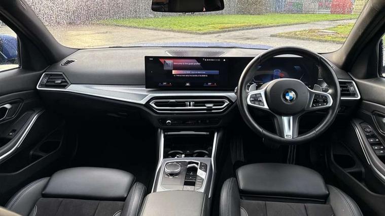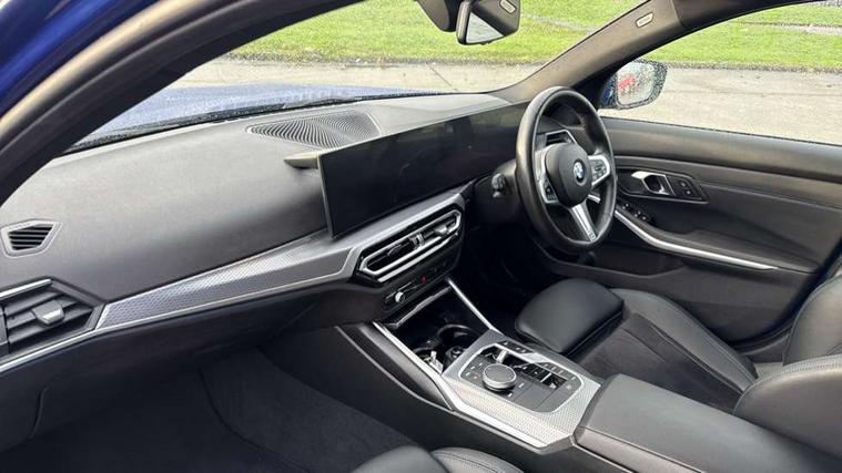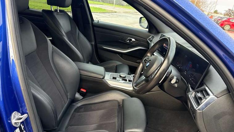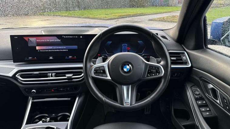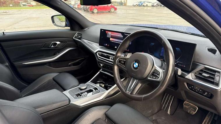 Active guard plus, Attentiveness assist, Automatic Start/stop button, BMW iDrive, BMW Teleservices, Condition based service, ConnectedDrive Services, Driving experience switch, Live cockpit plus with Navigation + 12.3" instrument display + 14.9" display, Intelligent voice assist, 2 USB, 4G LTE connect, Oil sensor for level and grade, PAS, Preparation for driver assistance, Shifting point display, Variable sport steering, Double joint spring strut front axle, Fuel tank breather system, Sport automatic transmission with steering-wheel mounted gearshift paddles and launch control, DAB tuner, 3rd brake light, Auto dimming rear view mirror, Auto dimming with folding wing mirrors, Automated High beam assist, Automatic headlight beam throw control with load dependent regulating reaction, dynamic compensation of braking dive and acceleration squat, BMW emblem, engine compartment lid and tailgate, Body colour roof fin, Door sill strips, Electric windows - front and rear, with open/close fingertip control, anti-trap facility and comfort closing, Follow me home headlight function, Front and rear bumper system with replaceable deformation elements, Front apron plastic in body colour, Fuel filler flap - right rear in body colour, Heated washer jets, High gloss shadow line exterior trim, Illuminated bow type door handles in body colour drivers side with door lock, Interior rear view electrochromatic mirror with automatic anti dazzle function, LED headlights with LED daytime running lights and LED turn indicator, LED rear lights, Licence plate panel integrated into front bumper and tailgate, Matt black B-pillar finsher, Matt black window recess cover, Model designation on right side of tailgate, One piece front bumper cover including towing eye cover in body colour, Rain sensor with automatic headlight activation, Rear boot, Rear side wing doors, Reversing lights, Side frame decorative moulding black matt, Visible exhaust tailpipe finisher, Welcome lights in interior and door handle area, 12V power socket in front storage compartment, 2 front cupholder in centre console with clamping elements and matt black inlay, 3 seat bench in 2nd row, 3 zone automatic air conditioning, 40:20:40 split folding rear seat with loading system, Ambient inside door handle light, Ambient light design projected onto the left and right entering and exiting area, Ambient storage compartment lighting in the centre console, Anthracite headlining, Armrest integrated in front and rear door trim + front centre console armrest, BMW ID, Contour lighting in instrument panel and door trim panel, Cruise control operation in steering wheel, Driving experience mode switch, Extended storage, Folding rear centre armrest with 2 cupholders, Front and rear ambient footwell lighting, Front and rear door exit lighting (left / right), Front and rear headrests, Front and rear reading lights, Front and rear velour floor mats, Heated front seats, Height adjustable mechanically and infinitely variable steering column, Illuminated armrest storage compartment, Illuminated glove compartment, Illuminated luggage compartment, Lashing eyelets in luggage compartment, M Sport multifunction leather steering wheel, Make-up mirror lights, Single front passenger seat, Standard seat for driver and passenger with manual adjustment, Sunvisors with illuminated vanity mirrors and ticket pocket, Toolkit located in luggage compartment, Connected pack professional - 3 Series Saloon/Touring, Interior and exterior mirror pack - 3 Series Touring/Saloon, M Aerodynamics package - 3 Series Saloon/Touring, M sport exterior styling pack - 3 Series Saloon/Touring, Parking assistant pack - 3 Series, Storage compartment pack - 3 Series Saloon/Touring, 3x3 point rear seatbelts, BMW emergency call, Child locks on rear doors, Crash sensor activating of airbags, Unlocking doors, hazard warning lights, interior light, safety battery terminal, Driver and front passenger with seat occupancy detection for driver's and passenger side, Driver and passenger side airbags, body protection at side and airbags deploy from seat backrests, Dynamic brake control, Dynamic stability control + (DSC+) - Anti-lock Braking System (ABS) with brake assist and cornering brake control + Automatic Stability Control (ASC), Dynamic Traction Control - DTC, Electric parking brake including automatic hold function and automatic release of the parking brake when driving off, Electronic differential lock control (EDLC), Front airbag deactivation, Head airbags in 1st and 2nd row, head protection at side, curtain airbags open from headliner above 1st and 2nd row, Plastic fuel tank, Side impact protection, Tyre pressure monitoring with three level warning strategy, Ventilated front and rear disc brakes, Warning triangle and first aid kit, Alarm system, Centre lock switch, Closing system with central locking, Electronic vehicle immobiliser, Locking wheel bolts, Tyre repair kit,