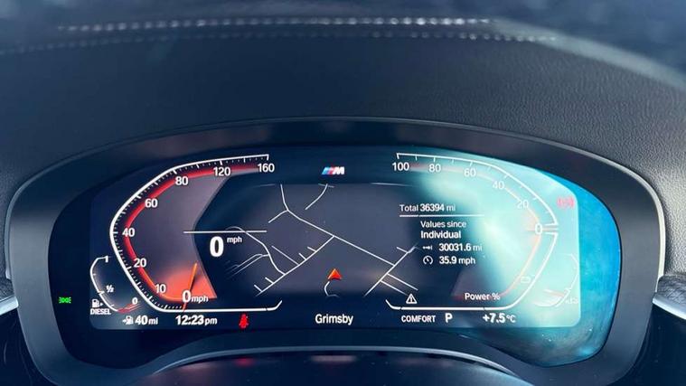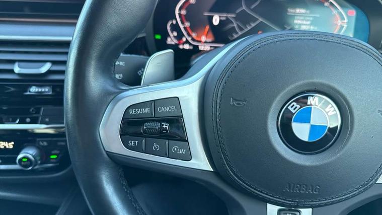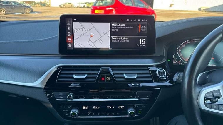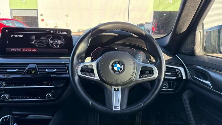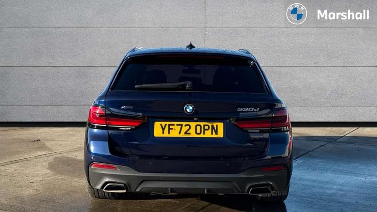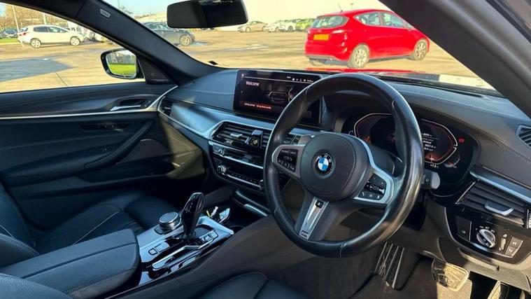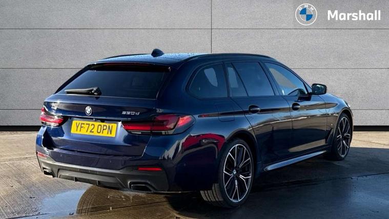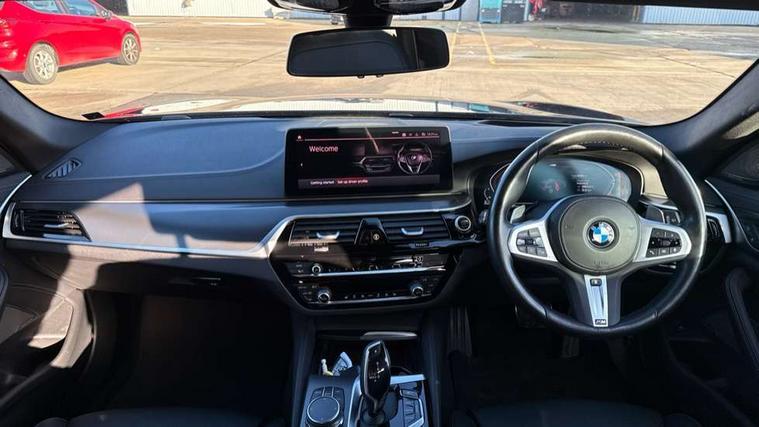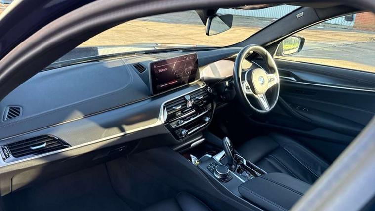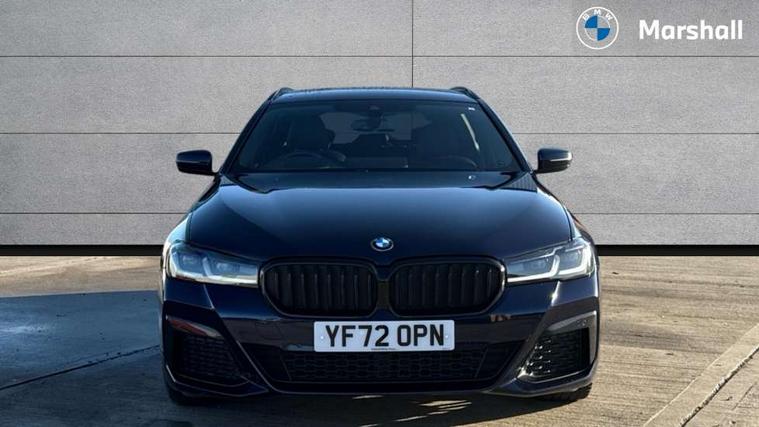 32GB hard disc drive (HDD) memory, Active Guard, Bluetooth connection, BMW ConnectedDrive online services, BMW Live Cockpit Professional sat nav system with 12.3" instrument display and high resolution control display, BMW Teleservices, Brake pad wear indicator, Cruise control with brake assist, Driving experience switch, eCall emergency call system, Electric boot lid - electrically opening/closing rear tailgate, Electric Power Steering (EPS) with Servotronic, iDrive controller with shortcut buttons, Intelligent emergency call, Multifunctional instrument panel, Oil sensor for level and grade, On board computer inc. average speed, fuel consumption, liquid crystal Info display, journey computer, outside temperature display, personal profile, On-board diagnosis - OBD, Powered by Operating System 7.0, Service interval indicator, Speed limiting function, Stop/start button, 48V Mild hybrid technology, Diesel particulate filter, Drive performance control with ECO PRO comfort + sport mode, Engine cover with twin turbo designation, M sport suspension, Steptronic transmission with gearshift paddles on steering wheel, DAB Digital radio, Favourite buttons, Acoustic glazing, All round anti-corrosion system, Automatic windscreen wipers and automatic headlight, Automatically dimming rear view mirror, BMW Individual high gloss shadow line includes exterior mirror frame, window frame surround, B pillar finish, air breather in high gloss black, Body colour door handles, Body coloured bumpers, Door handle illumination, Dynamic brake lights with LED technology, Electric front and rear windows with fingertip open/close + anti-trap facility and comfort closing function, Electrically adjustable and heated exterior mirrors includes integrated direction indicators and automatic parking function, Folding exterior side mirror with auto- dimming, Follow me home headlight function, Heated windscreen washer jets, High gloss black active air stream kidney grille, High gloss shadow line roof rails, Independent opening for tailgate window, LED daytime running lights, LED Headlights, LED third brake light, M designation on front side panels, left and right in chrome, M Sport exterior styling, Preparation for high beam assistant, Rear side wing doors, Rear wiper, Trapezoidal visible exhaust tailpipes, xDrive designation on tailgate, 12V power socket in front and rear, 3 seat bench in 2nd row, 40/20/40 split folding rear seats with additional mechanism in luggage compartment, Anthracite headlining, Armrest - front and rear integrated door trim, centre console includes storage compartment, rear centre includes 2 cupholders, Child seat ISOFIX attachment with rear outer seats includes top tether, Cup holders (2 front and 2 rear), Front and rear footwell lights, Front reading lights, Height and length adjustable steering column and activation via lateral lever on the steering column, Lockable glove compartment with light, M door sill finishers, M specific pedals, M specific velour floor mats, Multifunction controls for leather steering wheel, Rear headrests, Retractable luggage compartment dividing net, Single front passenger seat, Three spoke sport M leather steering wheel, Ambient lighting pack - 5 Series, Connected package professional - 5 Series, M Aerodynamic pack - 5 Series, Airbags - driver/front passenger, rear and side, first and second row seats head airbags, front passenger seat airbag deactivation, Anti-lock braking system (ABS), Automatic Stability Control (ASC), Brake assist function, Brake energy regeneration, Cornering brake control (CBC), Crash sensor activating central locking release, hazard warning lights, fuel cut off and interior lighting, Deformation zones - front and rear with door reinforcements and bumpers up to 2.5 mph, DSC - Dynamic Stability Control, Dynamic brake control, Dynamic Traction Control - DTC, Electromechanical parking brake with automatic drive away release and auto hold function, Electronic brake force distribution, Engine drag torque control, Front and rear brake discs with interior ventilation, Front head restraints with anti-whiplash, Hill start assist, M Sport brake in high gloss blue painted brake callipers with M designation, Mechanical child proof lock on rear doors, Passive protection for pedestrians, Rear door child safety locks, Side impact protection, Three point seat belts for all four seats, Two tone horn, Tyre pressure indicator, Warning triangle and first aid kit, Alarm system (Thatcham 1) with remote control and electronic engine immobiliser, Locking wheel bolts,