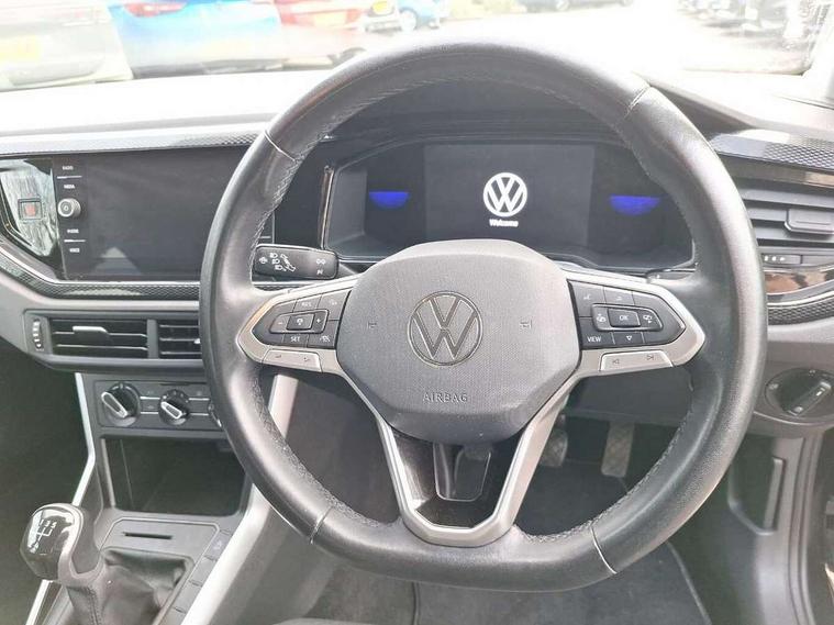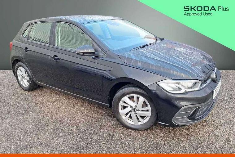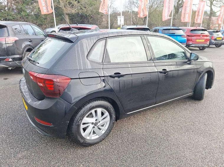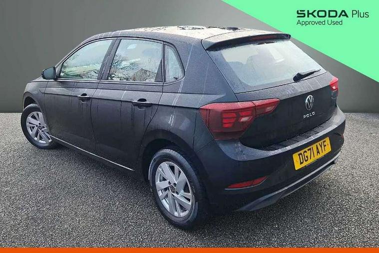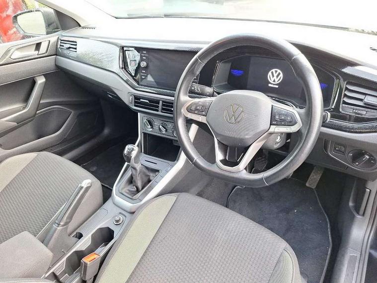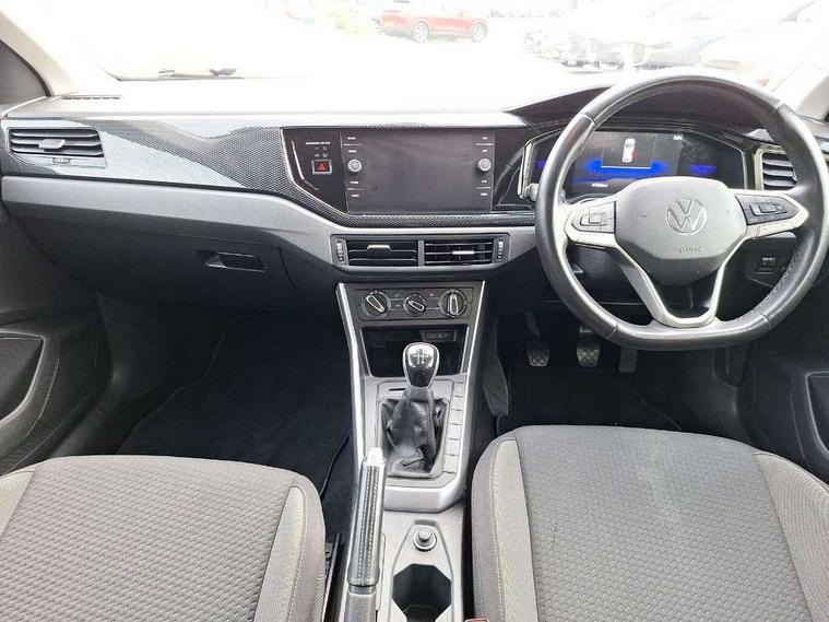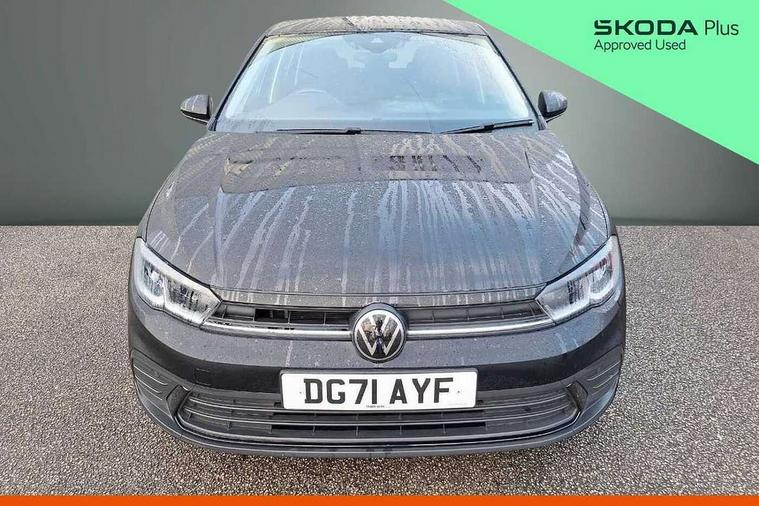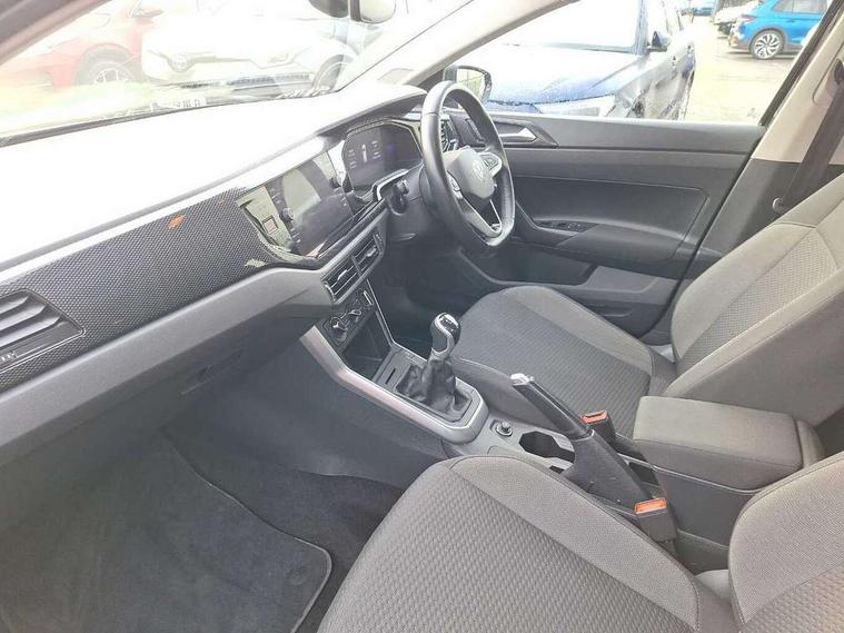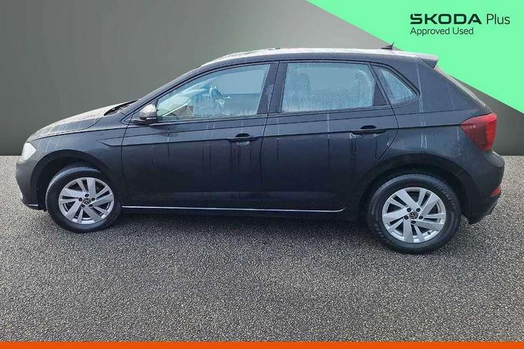 Adaptive cruise control without follow-to-stop and speed limiter, Bluetooth mobile phone interface, Driver alert system, Emergency call service, Front assist system, Power assisted speed sensitive steering, Preparation for We connect and We connect plus, Speedo and rev counter, electronic odometer, trip, service interval display and fuel gauge, Standard rear axle, Travel Assist - Lane keeping system and traffic jam assist, Travel assist including emergency assist, Trip computer, Warning signal and warning light for front and rear seatbelts not fastened, Washer fluid level indicator, Wireless app connect, Front wheel drive, Rear shock absorpion, Start-stop system with battery regeneration (recuperation - energy recovery during braking), DAB Digital radio, Diversity antenna for FM reception, Automatic dimming interior rear view mirror, Body colour bumpers, Body colour door handles, Body colour door mirrors, Electric front windows, Heat insulating darkened glass in side and rear windows, Heat insulating glass windscreen, Power folding adjustable/heated exterior mirrors and front passenger exterior mirror lowering function, Rain sensor, Rear electric windows, Rear fog light, Rear side wing doors, Rear windscreen washer and wiper with interval delay, Third brake light, 12V power socket in centre console, 2 front and 2 rear reading lights, 2 USB-C ports in the front, 2 USB-C charging sockets on the center console in the rear, 3 rear head restraints, 60/40 split folding rear seat and rear seat bench not split, Ceramique headliner, Chrome plated radiator grille inserts, air vent surrounds and light switch surrounds, Door and side trim panel, Driver and front passenger seat height adjustment, Driver/passenger sunvisors with illuminated vanity mirrors, Front centre armrest, Front seat backrest storage pockets, Front standard seats, Handbrake lever handle in leather, Hartley/Thomas cloth upholstery, Isofix child seat preparation easy-fit (for two outer rear seats, and front passenger seat) compatible with I-size, Leather trimmed gear knob, Luggage compartment cover, Luggage compartment floor, Luggage compartment lighting, Multifunction steering wheel, Single front passenger seat, Standard pedal cluster, Light and vision pack - Polo, 3 point height adj front seatbelts + pretensioners, 3x3 point rear seatbelts, ABS, Driver and front passenger airbag with front passenger airbag deactivation, Drivers and front passengers safety optimised head restraints, ESC (Electronic stability control) + EDL (Electronic Differntial lock) and ASR (Traction control), Extended and predictive pedestrian/ cyclist protection, Front curtain and side airbags with center airbag, Front disc brakes, Hill hold control, Manual child lock in rear doors, Rear drum brakes, Single tone horn, Tyre pressure loss indicator, Alarm with interior protection, Anti-theft alarm system with interior monitoring, backup horn, and towing protection, Anti-theft wheel bolts, Electronic engine immobiliser, Lava stone black gloss/matt decorative inserts in dash and front door panels, Low rolling resistance tyres,