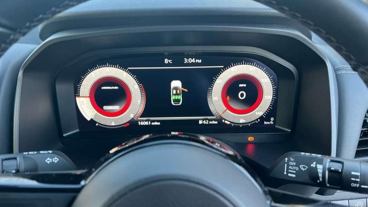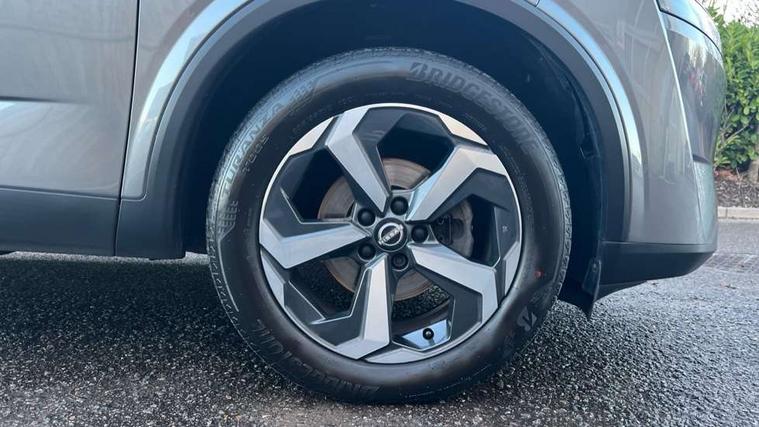 Android auto/Apple CarPlay (Wired), Blind spot warning, Drive modes (sport, normal, eco), Electric speed sensitive power steering, Emergency and breakdown call, Front and rear parking sensors, Full Digital 12.3" TFT Digital Combimeter, Google maps services - search, weather, 3D maps and Google street view, Idle stop/start system, Intelligent around view monitor, Intelligent Cruise control (ICC), Intelligent driver alert system, Intelligent forward collision warning, Intelligent lane intervention, Lane departure prevention, Lane departure warning system, Maximum speed limiter, Moving object detection, Nissan connect 12.3 inch touchscreen infotainment system, Nissan connect navigation, Push button starter, Rear cross traffic alert, Rear view camera, Remote control services - door locks, lights, horn and car locator, Telematics - notifications and connectivity services, TomTom live traffic services, Traffic sign recognition with legal speed adjustment, Trip computer, Virtual personal assistant and firmware over the air capability, Wireless apple carplay, 6 speakers, AM/FM audio system with DAB, Bluetooth audio streaming, Front USB connections (Type-A and Type-C), Rear USB charging only ports (Type-A and Type-C), Auto dimming rear view mirror, Auto rear wiper when reversing, Automatic hazard signal with emergency stop signal, Body colour mirror caps, Body coloured door handles, Bodyside mouldings, Chrome side window finisher, Door handle with button, Electric auto folding door mirrors, Electrically adjustable and heated door mirrors with LED turn indicator, Follow me home headlights, High beam assist, Intelligent auto headlights, LED daytime running lights, LED Headlights, LED rear lights, One touch front and rear electric windows with remote opening and closing, Partially body coloured bumpers, Privacy glass, Rear bumper with graphite insert, Rear reversing light (bulb lighting), Rear roof spoiler, Rear side wing doors, Rear styling plate, Shark fin antenna, Splash free rain sensing wipers, Super UV and infrared cut glass, Three blink turn signal, 12v power socket in dashboard and luggage, 2x Rear coat hooks, 3 bench rear seats in 2nd row, 3 rear headrests, 4 folding assist grip, 6 Luggage hooks - 4 on floor, 2 on side, 6-way manually adjustable driver's seat, 60/40 split folding rear seat bench, Ambient lighting around centre console, Centre console storage tray, Chrome interior door handles, Cloth monoform upholstery, Driver and front passenger sunvisors with illuminated vanity mirrors, Driver seat back pocket, Dual zone automatic climate control with pollen filter, Electrically adjustable lumbar support for driver, Front and rear door storage, Front centre console and armrest, Front cupholders x 2, Front door with bottle holders, Glovebox with light, Hard trunk cover, Height adjustable driver's seat, Height adjustable front headrests, Height adjustable passenger seat, Leather shift knob, Leather steering wheel, Luggage board system, Luggage space lighting, Manually adjustable passenger (slide recline + lifter), Multifunction steering wheel, Passenger seat back pocket, Rear armrest with 2 cupholders, Rear door bottle holders, Single front passenger seat, Soft PVC kneepad, Steering wheel switches, Sunglasses holder, Tilt/telescopic adjustable steering wheel, Two rear isofix child seat anchorage points with top tether, Welcome light and console tray ambient lighting, 3x3 point rear seatbelt pretensioners + load limiters, ABS with EBD and brake assist, Active brake limited slip, Auto hold function, Child locks on rear doors, Curtain and front side, far side airbags, Driver and passenger airbags, Driver, passenger and 2nd row rear seat belt reminder, Electronic parking brake, Front seatbelt pretensioners + load limiters, Height adjustable front seatbelts, Hill start assist, Intelligent blind spot intervention, Intelligent front emergency braking with pedestrian, cyclist recognition and junction assist, Intelligent rear automatic braking, Tyre pressure monitoring system, Vehicle dynamic control, Capless fuel filler, Engine immobiliser, Intelligent Key, Remote central door locking with deadlocking, Thatcham Cat.1 alarm, Interior instrumental panel B finisher, 18" Diamond cut alloy wheels, Tyre puncture repair kit,
