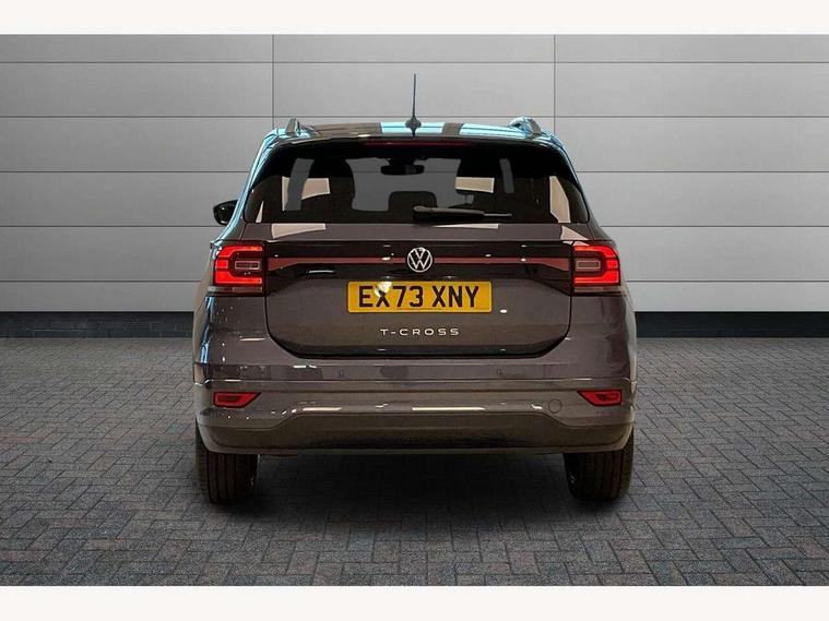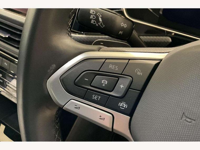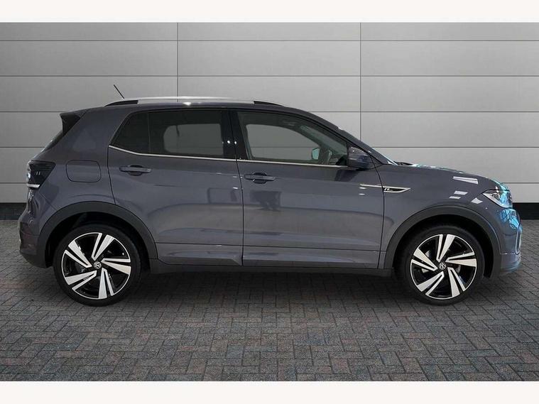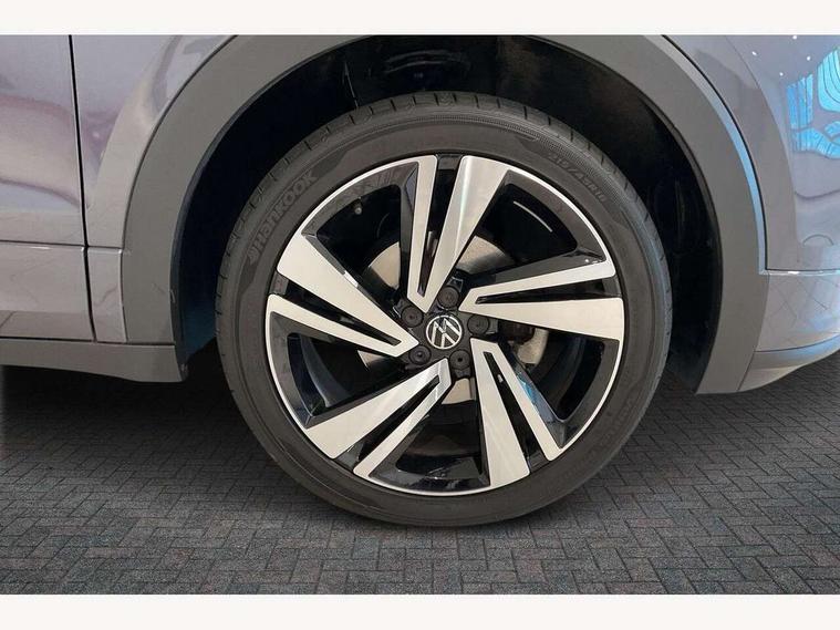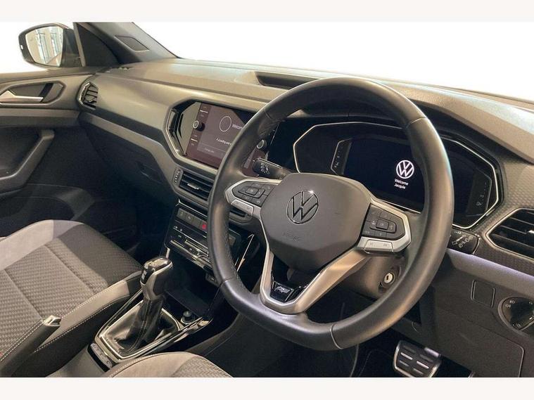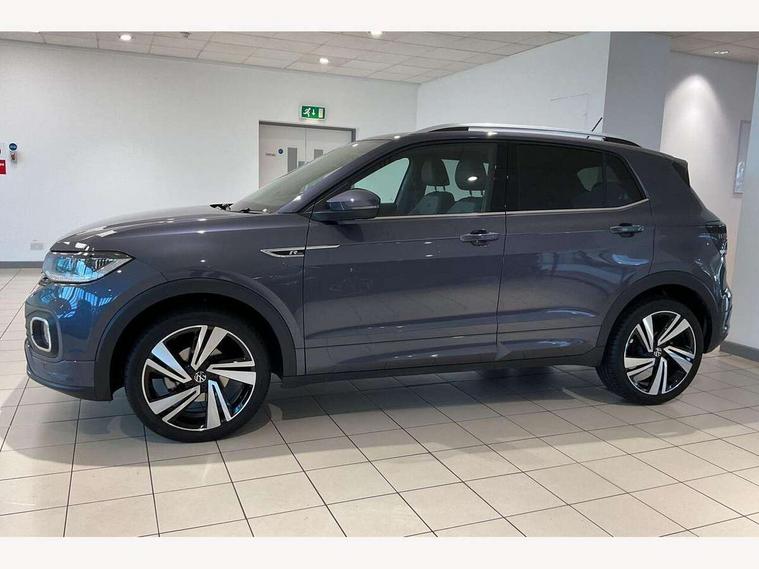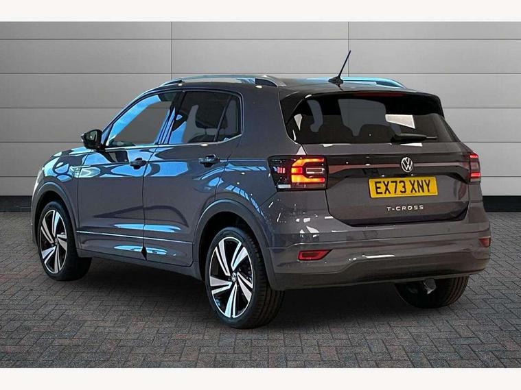 'Lights On' Reminder warning buzzer, 2D/3D map view, Active info display - 10.25" High resolution TFT dash display screen, Adaptive cruise control including front assist, forward collision warning, autonomous emergency braking, speed limiter, Blind spot monitoring, Bluetooth telephone and audio connection for compatible devices, Car information display, Driver alert system, eCall emergency call system, Lane assist, Low washer fluid warning light, Multifunction computer with visual gear change recommendation for fuel consumption, Operating permit alteration, Power assisted speed sensitive steering, Speed limit display, Speedo, rev counter, electronic odometer, trip, service interval display, exterior temperature and fuel gauge, Stop/start system, Tailgate, Warning sound and light for doors and tailgate open, Warning sound and light for front seatbelts unfastened, We connect plus preparation, Wireless Car net app connect with Apple CarPlay, combined functionality of Apple CarPlay/Android Auto and MirrorLink, Battery regeneration during braking, Misfuel prevention device, 2x USB connection with USB charging sockets and in rear centre console, DAB Digital radio receiver, Diversity antenna for FM reception, Multi device interface (MDI) with USB connection, Music playback - MP3, WMA and AAC files, Premium USB cable for Apple or Android smartphone compatibility, Simultaneous pairing of 2 compatible mobile devices, SMS Functionality, Three route options - Fast, Short, Eco, Title and cover art display, Automatic hazard lights activation under emergency braking, Body colour door handles, Body colour door mirrors with integrated indicators, Body colour rear roof spoiler, Body coloured bumpers, Dusk sensor + automatic driving lights, Electrically foldable, adjustable and heated door mirrors with reverse activated kerb view adjustment on passenger's side, Front and rear electric windows, Front fog lights with static cornering function, Galvanised body, Heated rear window, LED third brake light, Lower door sills and door pillars in black, Radiator grille with chrome trim and chrome bezel front fog lamp, Rear fog light on one side, reversing light on both sides, Rear lights incorporating LED technology, Rear side wing doors, Rear tinted glass 65% approx light absorbing from B pillar backwards, Rear window aerial, Rear windscreen washer and wiper with interval delay, Reflectors in all doors, Silver roof rails, Stainless steel door sill protection, Tailgate with integrated roof spoiler, Unique R Line badging, Windscreen wipers/ intermittent wipe + 4 position delay, 12V Accessory socket in centre console, 2 Front and rear reading lights incorporating LED technology, 2 Zone electronic climate control with automatic air recirculation, 3 rear head restraints and 3 rear three point seat belts with ECE label, 3 seat bench in 2nd row, 60/40 split folding rear seat backrest, Ambient lighting and sourround lighting, Black headlining, Branded points of interest, Brushed stainless steel pedals, Carbon flag cloth upholstery, Drawer under drivers seat, Driver and front passenger sunvisor with vanity mirror, Driver's sunvisor with ticket holder, Dust and pollen filter, Front and rear carpet mats with contrast stitching, Front centre armrest with storage compartment, Front footwell illumination, Front seat back storage pockets, Front seat R Line logo with rear seat backrest, Front sports seat with height and lumbar adjustment, Glovebox, Heating and fresh air system with 4 stage blower, Height/reach adjust steering wheel, Instrument lighting white adjustable panel illumination, Interior light with delay, Isofix child seat preparation for 2 rear child seats, Leather trimmed three spoke multifunction steering wheel with contrast stitching and aluminium inserts with R Line logo, Luggage compartment cover, Luggage compartment lighting, Moveable and foldable Rear bench seat, Scuff plates in door apertures, Steering wheel paddle shift, Storage compartment in drivers and front passengers door, R Line styling pack - T-cross, 3-point seat belts in front with electric tensioner + height adjustment, Anti-lock Braking System (ABS) with Hydraulic Brake Assist (HBA), Automatic post collision braking system, Driver and front passenger safety-optimised head restraints, Drivers and Front Passengers airbags with front passengers airbag deactivation switch, ESC with EDL, ASR, EDTC and trailer stabilisation function, Front and rear curtain airbags, Front seat side impact airbags, Hill start assist, Pre crash preventive occupant protection, Proactive passenger protection system in combination with front assist, Rear door child safety locks, Rigid safety cell with front and rear crumple zones, Single torn horn, Tyre pressure loss indicator, Volkswagen roadside assistance, Alarm with interior protection and deactivation via infotainment system, Child security locks in rear doors, Electronic engine immobiliser, Remote tailgate unlocking using key fob, Race decorative inserts in dash and doors, 18" Nevada black alloy wheels, Breakdown kit,