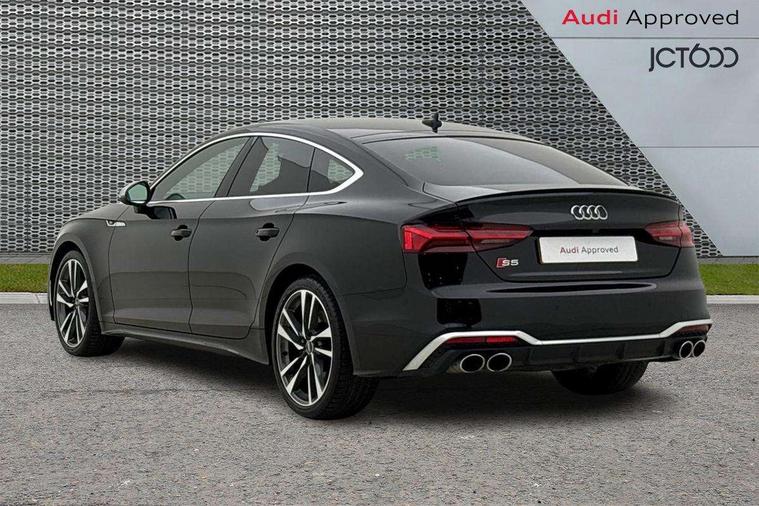 Audi connect safety and service (e-call), Audi connect with Amazon Alexa Integration, Audi drive select (Auto, Comfort, Dynamic, Efficiency and Individual), Audi parking system plus with front and rear sensors, Audi phone box with wireless charging, Audi smartphone interface, Audi virtual cockpit - 12.3" full colour digital instrument cluster, vehicle/engine speed, Radio/media information+Driver assistance systems, Automatic start-stop system with coasting functionality and efficiency programme, Bluetooth interface, Electro-mechanical power steering, Email, calendar and text messages displayed via MMI, MMI nav+ with MMI touch - 10.1" high resolution MMI display, touch sensitive, 3D map, route/country info, dynamic route guide, personal route assist, Power operated tailgate, Rear view camera, S instrument dials, Service interval indicator, Voice control system, Diesel particulate filter, S sports suspension, Audi sound system with 10 loudspeakers, CD player, DAB digital radio reception, Two additional USB ports for rear passenger in rear centre console, Two SDXC card slots, Aluminium effect door mirror housings, Audi Beam uses LEDs to project the Audi logo, Audi matrix LED headlights with LED rear lights + dynamic front and rear indicators, Auto dimming rear view mirror, Body colour bumpers, Body colour door handles, Body colour front spoiler lip, Body colour side sill trim, Electric adjustable heated door mirrors, Electric folding door mirrors, Electric front windows, Front fog lights, LED daytime running lights, Privacy glass, Rain and light sensors, S radiator grille in twilight grey matt with dual struts in aluminium and S5 logo, S rear diffuser in twilight grey matt and honeycomb grille in black, S specific dual branch chrome tailpipes with twin oval pipes on left and right, S specific side air inlets in titan black with chrome inlays in unique S design, Sport front and rear bumpers with side skirts, Windscreen with acoustic glazing, 40/20/40 split folding 3 seater rear bench seat, Adjustable steering column, Black cloth headlining, Black leather gear lever knob, Contrast stitching on seats, steering wheel and gear lever gaiter, Deluxe 3 zone electronic climate control, Electrically adjustable front seats, Fine nappa leather upholstery with S embossed logo + super sports seats, Front centre armrest, Front head restraints, Front/rear floor mats, Gear lever with diamond S badge, Heated front seats, Illuminated door sill trim with S logo, ISOFIX child seat mounting and top tether, Key with S5 logo, Luggage compartment mat, Pneumatically adjustable lumbar support with massage function, Rear headrests, Stainless steel pedals, Sunvisors with vanity mirrors, Extended leather pack - A5, LED interior light pack - A5/RS5, 3x3 point rear seatbelts, 6 airbags - Driver, front passenger, curtain and side airbags, Electromechanical parking brake, Electronic Stabilisation Control (ESC) including ABS, ASR and EDL, Front brake calipers painted in black with S5 logo, Front passenger airbag deactivation, Height adjustable front seatbelts, Hill hold assist, Multi collision brake assist, Pop-up bonnet for pedestrian protection, Pre sense city, S model enhanced braking system, Seatbelt monitoring, Tyre pressure warning, Variable restraint system, Warning triangle and first aid kit, Anti theft alarm system, Anti theft wheel bolts, Immobiliser, Keyless Go, Remote central locking, Matt brushed aluminium inlays, Tool kit, Tyre repair kit,
