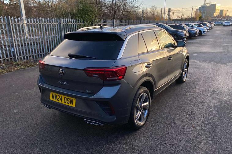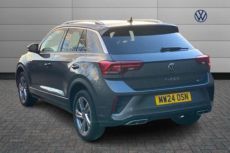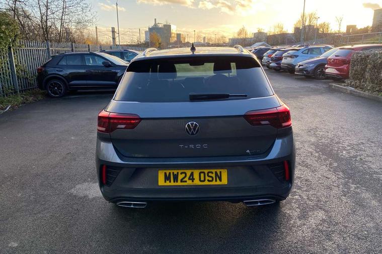 10.25" Digital cockpit pro, Advanced driver attention and drowsiness monitor, Bluetooth mobile phone interface, Emergency call service, Lane keeping system Lane Assist, Modified key software - reduce switch off time for key status change to Long no motion, Online services, Park assist including front and rear parking sensors, Service interval indicator, Tailgate/trunk lid release from outside, Think blue trainer driver tips and journey analysis, Warning sound and light for front seatbelts unfastened, Wireless app connect, Battery regeneration during braking, Four wheel drive, Start/stop function with battery regeneration, Diversity antenna for FM reception, Music playback - MP3, WMA and AAC files, Premium USB cable in choice of either Apple or Android smartphone compatibility, SD card slot, Simultaneous pairing of 2 compatible mobile devices, Title and cover art display, We Connect and We Connect Plus functionality, 3rd brake light, Auto dimming interior rear view mirror, Automatic hazard lights activation under emergency braking, Automatic headlight control with LED separate daytime running lights with coming/leaving home function, Electrically adjustable and heated door mirrors, Extended roof spoiler, Exterior mirrors aspherical on driver side, convex on front passenger side, External USB type C socket and charging sockets, Front windscreen wiper with intermittent wipe and 4 position delay, Heated rear window, LED rear combination lamps, LED rear number plate lights, Power windows with comfort operation and circuit breaker, R-Line design body coloured bumpers, Rain sensor, Rear exhaust tailpipe, Rear fog light on one side and reversing lights on both sides, Rear side wing doors, Rear wash/wipe with intermittent wipe setting, Remote electrically foldable door mirrors, puddle lights and reverse activated passenger's door mirror, 12V power socket in centre console, 3 rear head restraints, 3 seat bench in 2nd row, 4 load lashing points in luggage compartment, Air care climatronic air conditoning system with active combination filter and 2-zone temperature control, Black roof lining, Chrome plated radiator grille inserts, air vent surrounds and light switch surrounds, Door and side trim panel with leatherette insert, Front + rear carpet mats, Front centre armrest, Front cupholders x 2, Front footwell illumination, Front reading light, Front scuff plates with R Line logo, Front seat back storage pockets, Glove compartment door with light, Instrument lighting, white adjustable panel illumination, Interior ambient lighting and surround lighting, Interior light delay, Isofix child seat preparation, Leather gearshift handle, Load-through provision with cup holder when folded down ('Unsplit rear seat bench, split folding backrest, with centre armrest), Luggage compartment lighting, Single front passenger seat, Stainless steel pedals, Storage compartment in left and right luggage area, Storage compartment in rear doors, Storage compartments in driver and front passenger doors, Sunvisors with illuminated vanity mirrors, Variable boot floor, height adjustable and removable, Driver assistance pack without proactive passenger protection - T-Roc, 3 point height adj front seatbelts + pretensioners, 3 point seatbelts in outer rear with ECE label, ABS, Child locks on rear doors, City emergency braking and pedestrian monitoring, Driver and front passenger airbag with front passenger airbag deactivation, Driver and front passenger safety-optimised head restraints, Drivers seatbelt reminder, Electronic parking brake, Electronic Stability Control (ESC) inc EDL (Electronic Differential Lock) and ASR (Traction Control), Front and rear passengers curtain airbag system including front side airbags, Hill start assist, Predictive pedestrian protection, Rear disc brakes, Two tone horn, Tyre pressure loss indicator, Volkswagen roadside assistance, Anti-theft alarm system with interior monitoring, backup horn, and towing protection, Remote central locking with SAFELOCK, radio remote control with 2 remote control folding keys, Trims for alloy wheels,