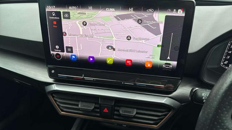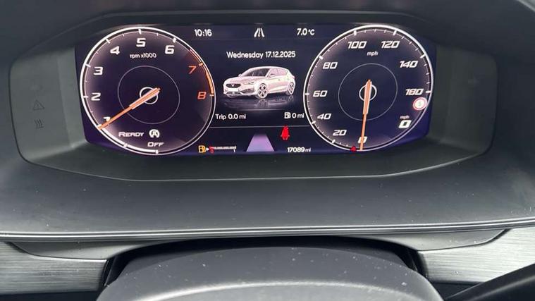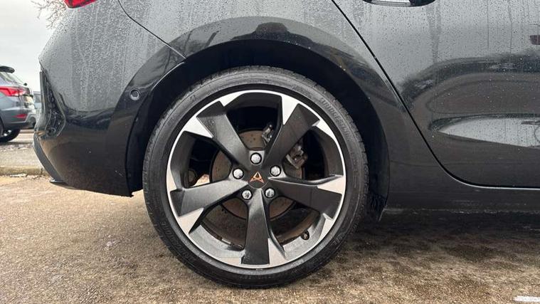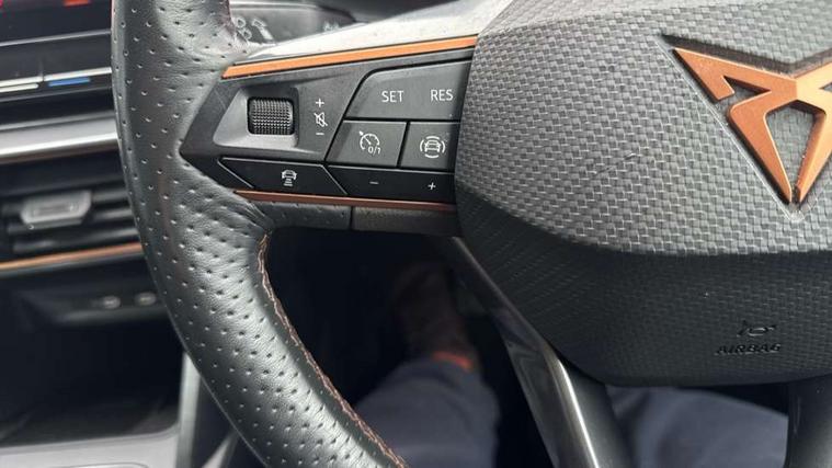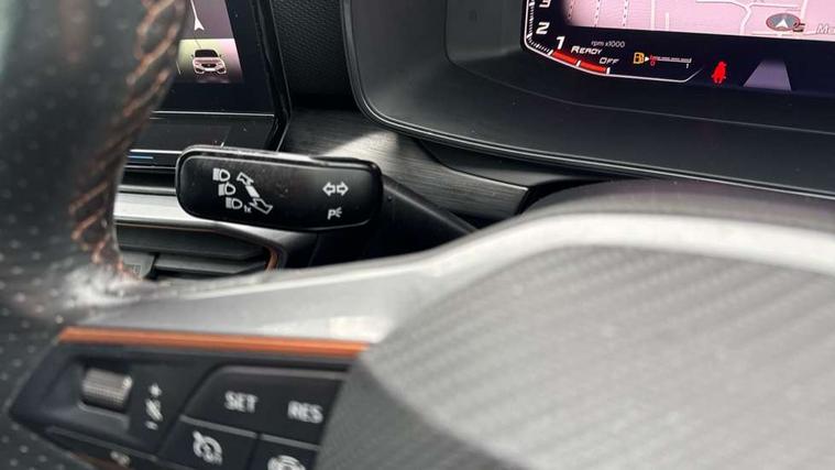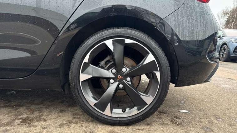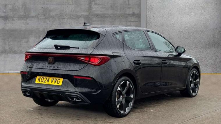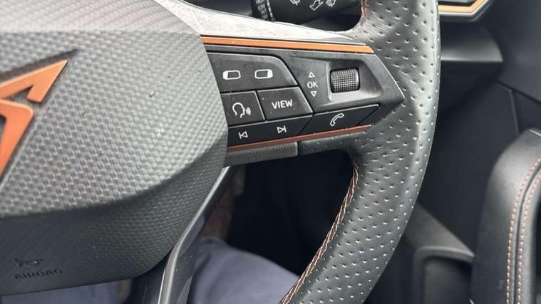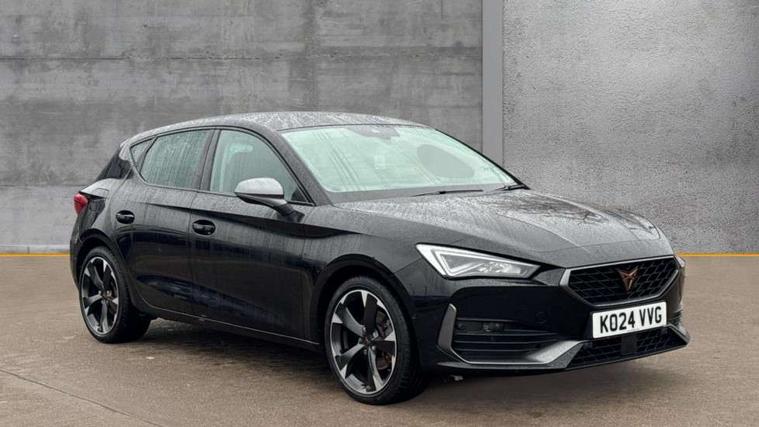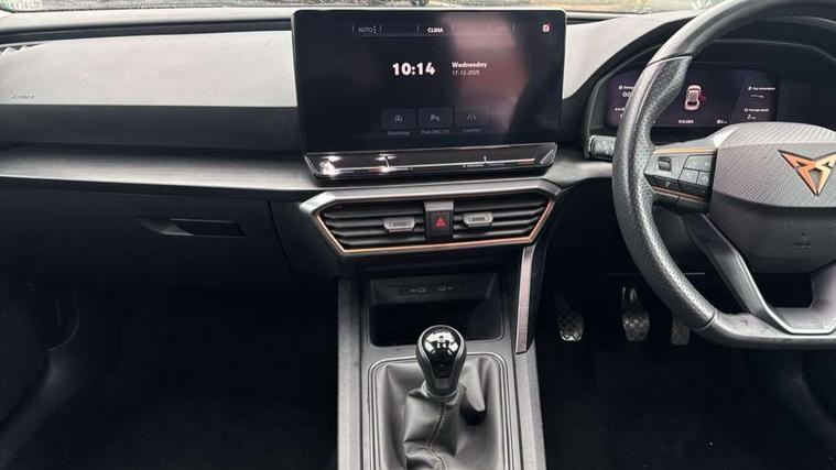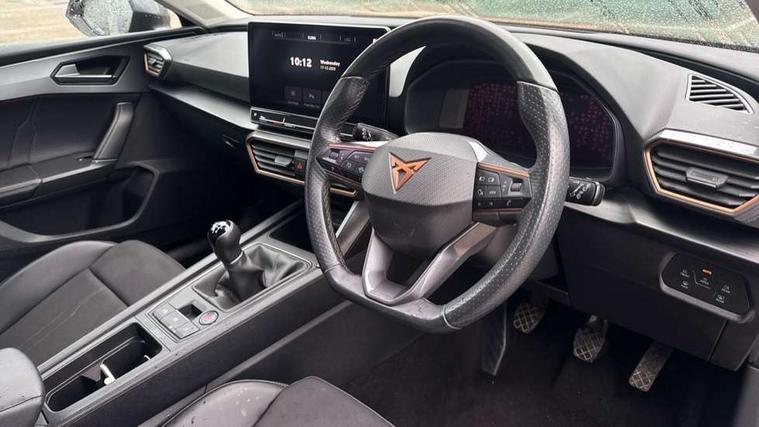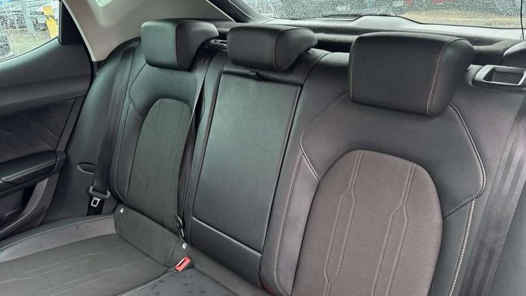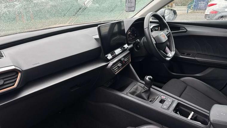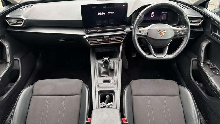 CUPRA drive profile selection with (Comfort/Sport/Individual), throttle response and gearshift mode, Digital cockpit, E-call, Electro mechanical speed sensitive power steering, Four x USB Type C ports (2 in front and 2 in rear), Front assist with forward collision warning braking reaction to vehicles, pedestrians and cyclists, Full link smartphone integration with Mirror Link, wireless Apple CarPlay and wired Google Android Auto, Lane assist, Lockable tailgate, Park assist (inc front/rear parking sensors), Rear view camera, RPM, trip computer, outside temp gauge, instrument light brightness, low fuel warning light, lights on reminder, gearshift indicator, Service interval indicator, Start/stop system with regenerative braking, Wireless phone charger, Sports suspension, Auxiliary input socket, Auto dimming rear view mirror, Body colour door handles, Body coloured bumpers, Cupra sports bumpers, Dark tinted rear windows, Electric front/rear windows, Electrically adjustable, heated and folding door mirrors, LED front fog lamps with cornering function, LED headlights with dynamic turn signals, tail lights, rear fog lights with rear coast to coast lighting, Rain sensing wipers, Rear diffuser with twin exhaust pipe on each side, Rear side wing doors, Rear wash/wipe, Separate daytime running light with automatic headlight control and coming home feature, Third brake light, 12v power supply in centre console, 3 seat bench in 2nd row, 5 headrests, 60/40 split rear bench seat with armrest, Ambient lighting with glovebox, footwell and single monocolour, Cupra Leather flat bottomed, perforated steering wheel, Driver/passenger manual seat height adjustment, Folding boot cover, Front and rear reading lights X 4, Front centre armrest, Front seats manual lumbar adjustment, Grey headlining, Height/reach adjust steering wheel, Illuminated interior front door sills, ISOFIX points in outer rear seats with top tether anchorage points, Jack and tool kit, PVC/Cloth upholstery with copper stitching, Single front passenger seat, Sports seats, Sunvisors with illuminated mirror, Three zone climate control, Media system plus with navigation pack - Leon Cupra, Safety and driving pack (M) - Cupra leon, 3 point seatbelts on all rear seats, ABS, Brake control system - ESC and brake booster, Child proof door locks, Cupra black brake calipers, Driver and front passenger airbags with front passenger airbag de-activation, front side and curtain airbags, Electronic parking brake, Extended safety system - seat belt tensioner, window closure and hazard lights, Hill hold control, Rear disc brakes, Seat belt reminder for front and rear seats, Tiredness recognition system, Tyre pressure monitoring system, Anti theft alarm system with interior monitoring in cab, backup horn and towing protection, KESSY Advanced - Keyless start, keyless entry, Locking wheel bolts, Chrome and copper interior detailing, 18" Machined sport black and silver alloy wheels with 92Y tyres,
