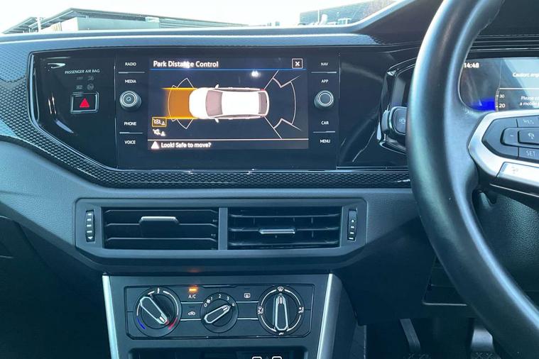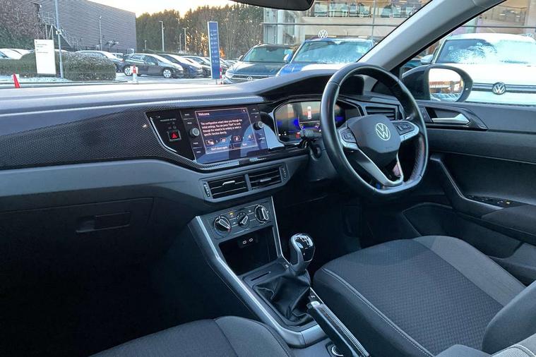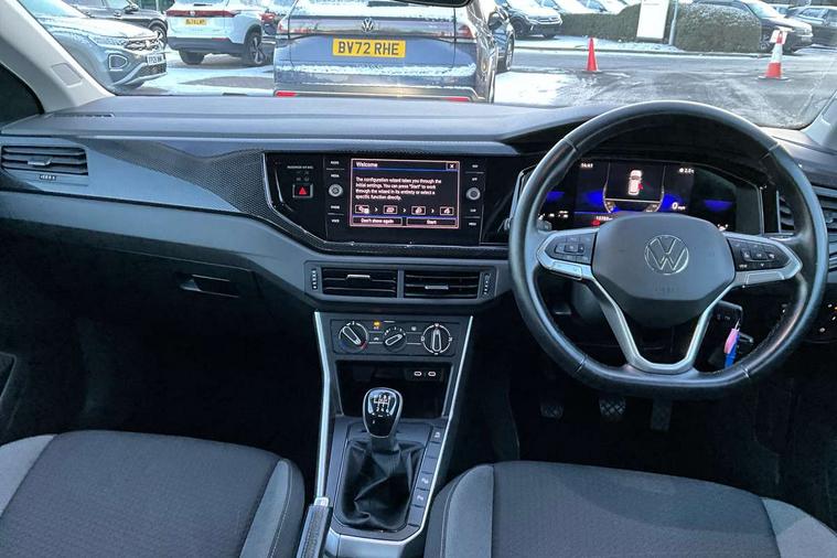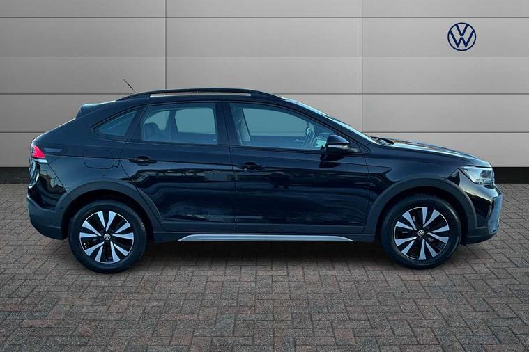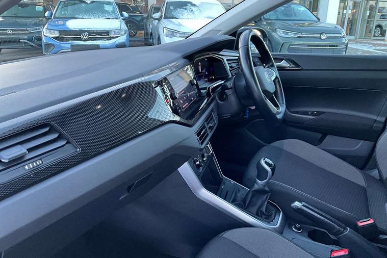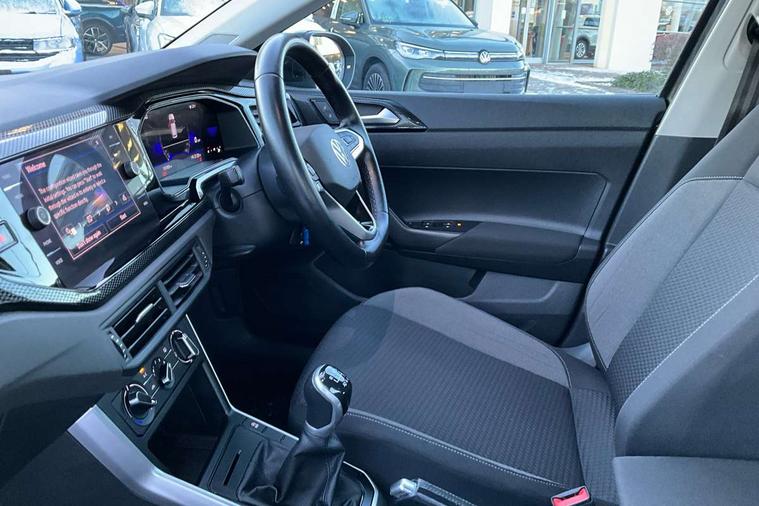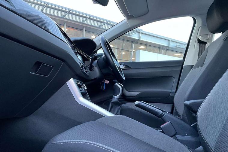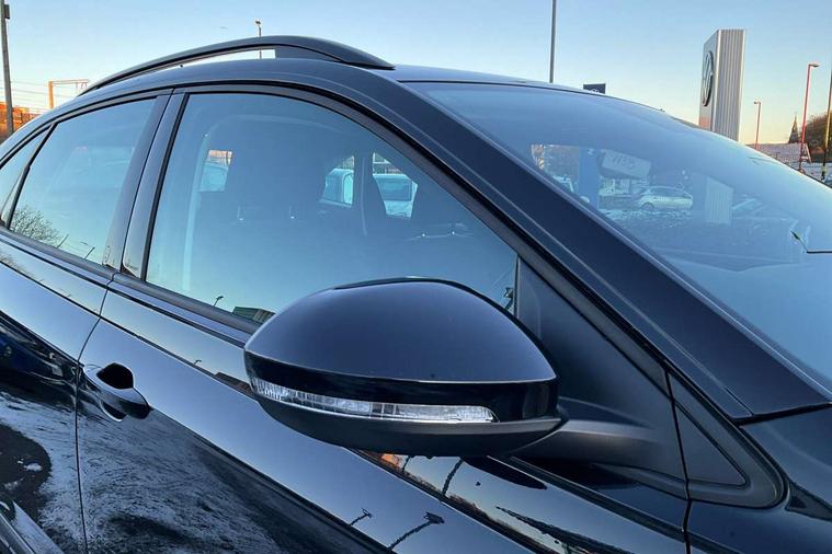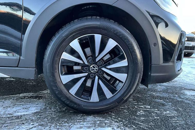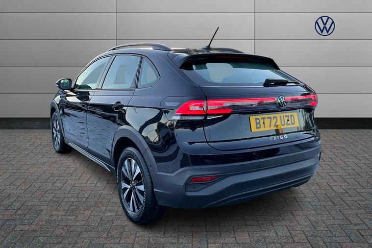 Driver alert system, e-Call (emergency call), Power Steering, Travel assist including emergency assist, Washer fluid level indicator, Wireless Charging including Bluetooth, Start-stop system with battery regeneration (recuperation - energy recovery during braking), WeConnect plus, Ambient lighting with logo projection, Aspherical driver's exterior mirror, Auto headlights, Body coloured bumpers, Body coloured exterior mirror housings and door handles, Electric windows, External USB type C socket and charging sockets, Front fog lamps with cornering function, Headlight range control, Heat insulating glass windscreen, LED headlamps, LED rear combination lamp, LED third brake light, Left convex exterior mirror, Power folding adjustable/heated exterior mirrors and front passenger exterior mirror lowering function, Rear fog light on one side, reversing light on both sides, Rear side wing doors, Rear wash/wipe with intermittent wipe setting, 'Slash/ Austin' Cloth upholstery, 12V socket in centre console, 2 front reading lights, 3 rear head restraints, 3 seat bench in 2nd row, Black carpets, Child seat anchor for child seat system i-Size, 2x top tether and child seat anchor in front on front passenger side, Door and side trim panels in titan black, Driver and front passenger seat height adjustment, Front centre armrest, Handbrake lever handle in leather, Height and reach adjustable steering wheel, Leather trimmed gear knob, Leather wrapped multifunction steering wheel, Luggage compartment floor, Luggage compartment light, Lumbar support for driver's and front passengers seat, Seat covers in titanium black, Single front passenger seat, Split folding backrest with centre armrest and unsplit rear seat bench, Storage compartment under front seats, Sun visors with illuminated vanity mirrors, Chrome Package - Taigo, Drivers assistance pack - Taigo, Light and Sight pack including High beam assist - Taigo, 2 x 3-point seatbelts/outer rear seats with ECE label, 3-point seat belts in front with pretensioner and height adjustment, 3-point seatbelt for centre rear seat, Driver and front passenger airbags with front passenger airbag de-activation, front side and curtain airbags, Driver and front passenger safety-optimised head restraints, Electronic stability control, Extended and predictive pedestrian/ cyclist protection, Front and rear disc brakes, Front curtain and side airbags with center airbag, Hill start assist, Manual rear child locks, Single tone horn, Tyre pressure loss indicator, Anti-theft alarm system with interior monitoring, backup horn, and towing protection, Anti-theft wheel bolts, Lava stone black gloss/matt decorative inserts in dash and front door panels, Low rolling resistance tyres,