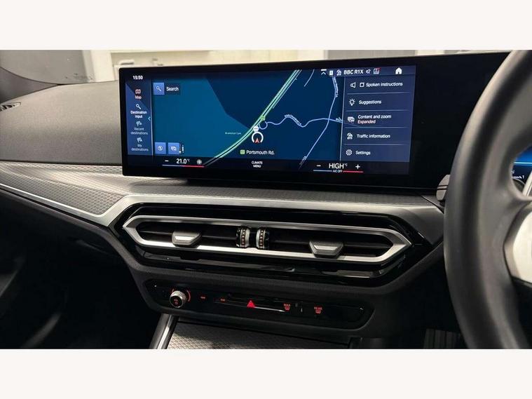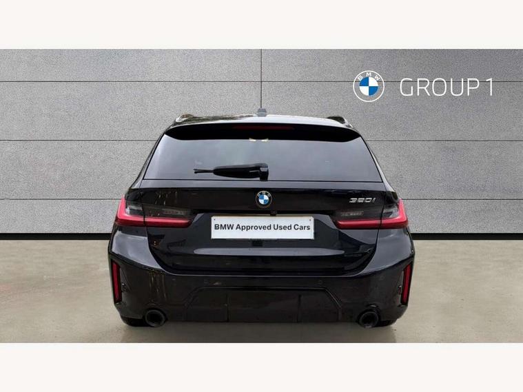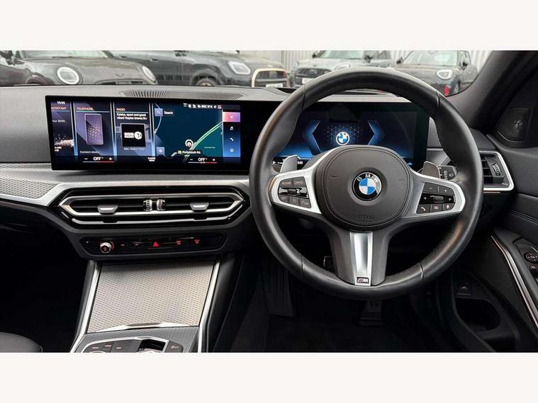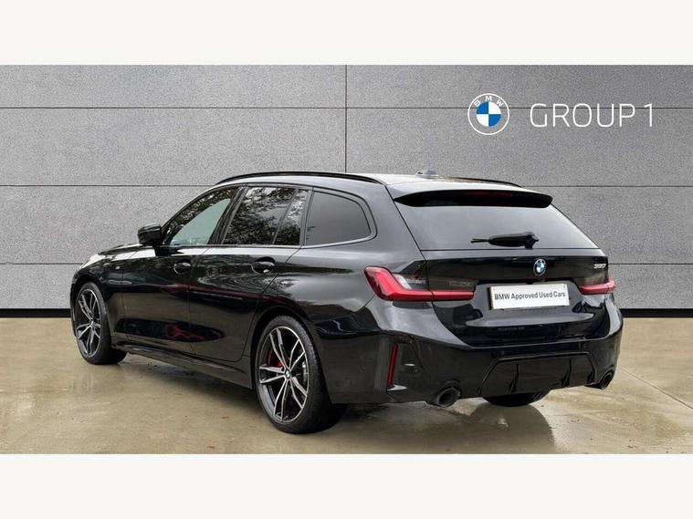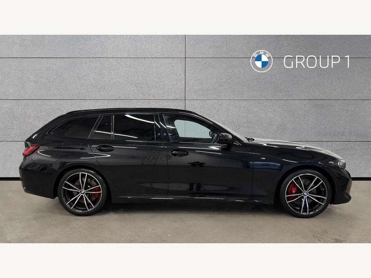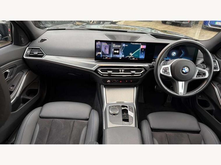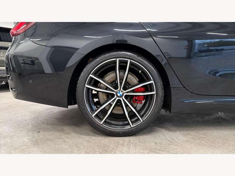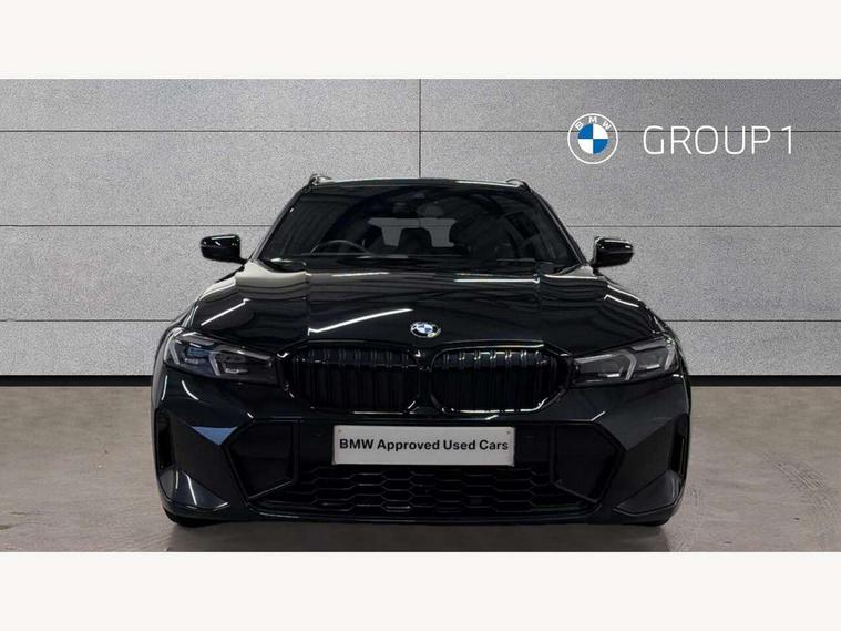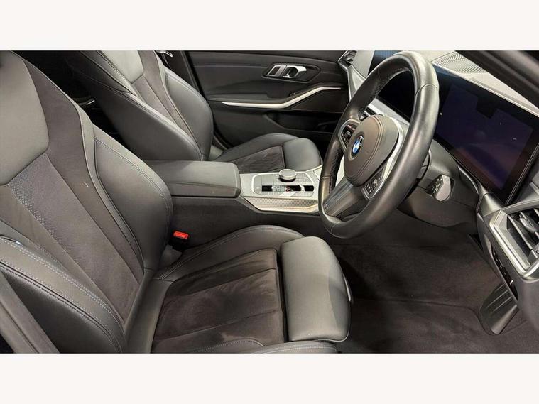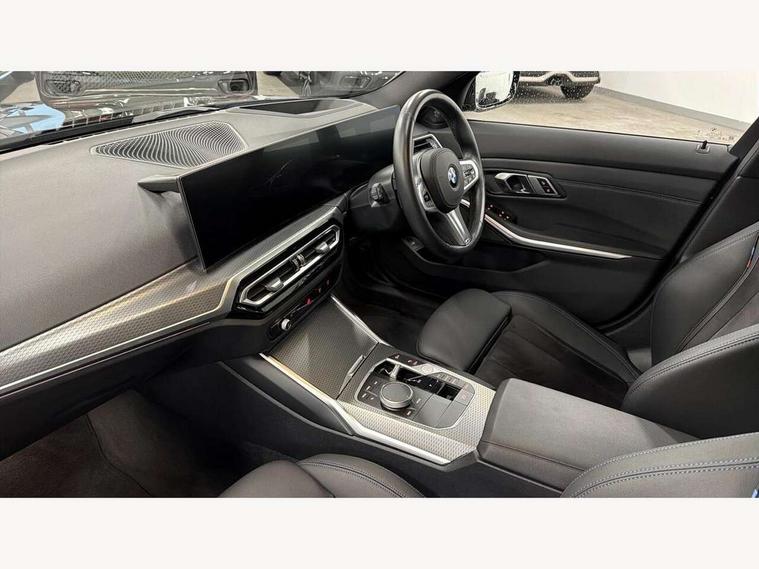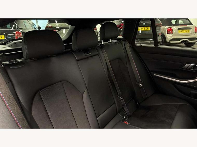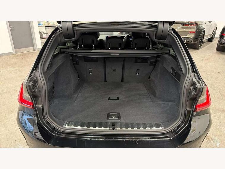 Active guard plus, Attentiveness assist, Automatic Start/stop button, BMW iDrive, BMW Teleservices, Condition based service, ConnectedDrive Services, Driving experience switch, Live cockpit plus with Navigation + 12.3" instrument display + 14.9" display, Intelligent voice assist, 2 USB, 4G LTE connect, Oil sensor for level and grade, Preparation for driver assistance, Shifting point display, Smartphone integration, Variable sport steering, Double joint spring strut front axle, Fuel tank breather system, M sport suspension, Sport automatic transmission with steering-wheel mounted gearshift paddles and launch control, DAB tuner, 3rd brake light, Acoustic glazing, Automatic headlight beam throw control with load dependent regulating reaction, dynamic compensation of braking dive and acceleration squat, BMW emblem, engine compartment lid and tailgate, Body colour roof fin, Door sill strips, Electric windows - front and rear, with open/close fingertip control, anti-trap facility and comfort closing, Follow me home headlight function, Front and rear bumper system with replaceable deformation elements, Front apron plastic in body colour, Fuel filler flap - right rear in body colour, Heated washer jets, Illuminated bow type door handles in body colour drivers side with door lock, Interior rear view electrochromatic mirror with automatic anti dazzle function, LED headlights with LED daytime running lights and LED turn indicator, LED rear lights, Licence plate panel integrated into front bumper and tailgate, Matt black B-pillar finsher, Matt black window recess cover, Model designation on right side of tailgate, One piece front bumper cover including towing eye cover in body colour, Rain sensor with automatic headlight activation, Rear side wing doors, Rear wiper, Reversing lights, Side frame decorative moulding black matt, Visible exhaust tailpipe finisher, Welcome lights in interior and door handle area, 12V power socket in front storage compartment, 2 front cupholder in centre console with clamping elements and matt black inlay, 3 seat bench in 2nd row, 3 zone automatic air conditioning, 40:20:40 split folding rear seat with loading system, Anthracite headlining, Armrest integrated in front and rear door trim + front centre console armrest, BMW ID, Cruise control operation in steering wheel, Driver backrest width adjustment, Folding rear centre armrest with 2 cupholders, Front and rear door exit lighting (left / right), Front and rear footwell lighting, Front and rear headrests, Front and rear reading lights, Front and rear velour floor mats, Front sport seats, Heated front seats, Height adjustable mechanically and infinitely variable steering column, Illuminated armrest storage compartment, Illuminated glove compartment, Illuminated luggage compartment, Lashing eyelets in luggage compartment, LED ambient lighting with welcome carpet light, M Sport multifunction leather steering wheel, Make-up mirror lights, Single front passenger seat, Standard seat for driver and passenger with manual adjustment, Sunvisors with vanity mirrors and ticket pocket, Toolkit located in luggage compartment, Connected pack professional - 3 Series Saloon/Touring, Interior and exterior mirror pack - 3 Series Touring/Saloon, M Aerodynamics package - 3 Series Saloon/Touring, M sport exterior styling pack - 3 Series Saloon/Touring, Storage compartment pack - 3 Series Saloon/Touring, 3x3 point rear seatbelts, BMW emergency call, Child locks on rear doors, Crash sensor activating of airbags, Unlocking doors, hazard warning lights, interior light, safety battery terminal, Driver and front passenger with seat occupancy detection for driver's and passenger side, Driver and passenger side airbags, body protection at side and airbags deploy from seat backrests, Dynamic brake control, Dynamic stability control + (DSC+) - Anti-lock Braking System (ABS) with brake assist and cornering brake control + Automatic Stability Control (ASC), Dynamic Traction Control - DTC, Electric parking brake including automatic hold function and automatic release of the parking brake when driving off, Electronic differential lock control (EDLC), Head airbags in 1st and 2nd row, head protection at side, curtain airbags open from headliner above 1st and 2nd row, Plastic fuel tank, Side impact protection, Tyre pressure monitoring with three level warning strategy, Ventilated front and rear disc brakes, Warning triangle and first aid kit, Alarm system, Centre lock switch, Closing system with central locking, Electronic vehicle immobiliser,