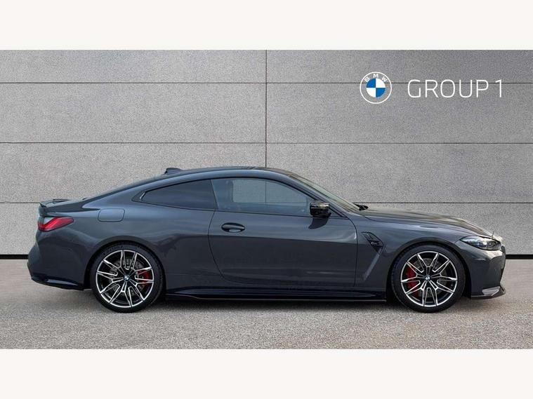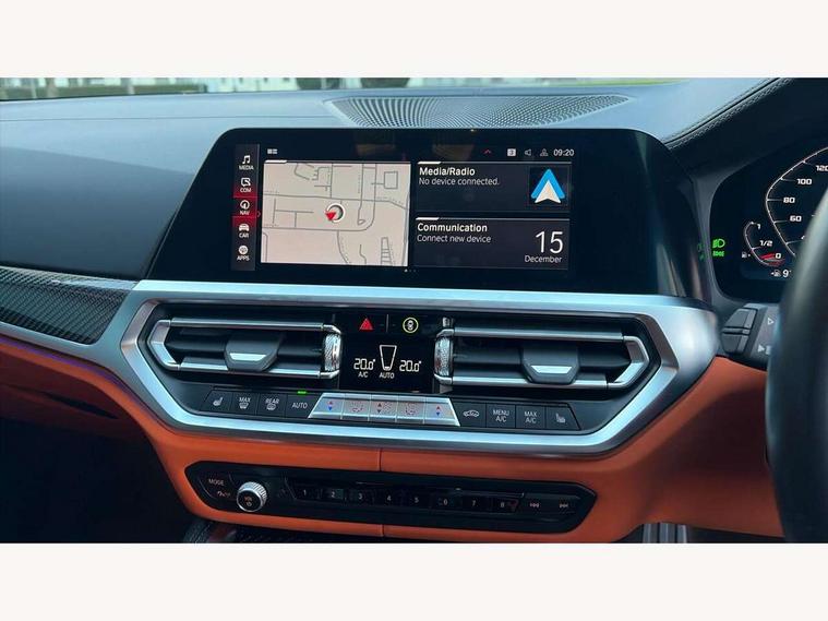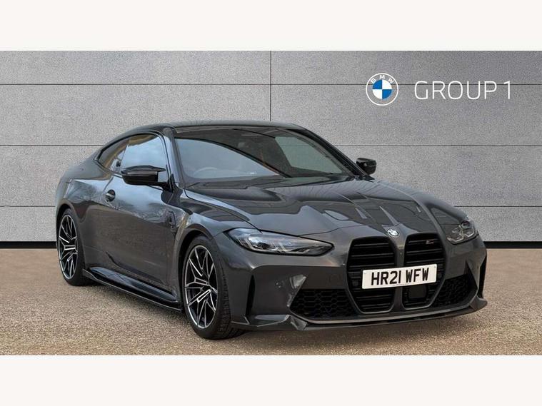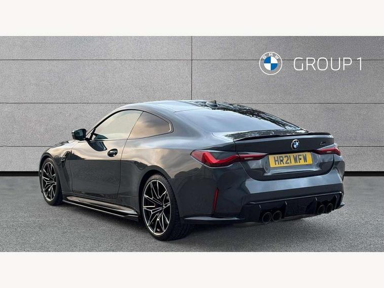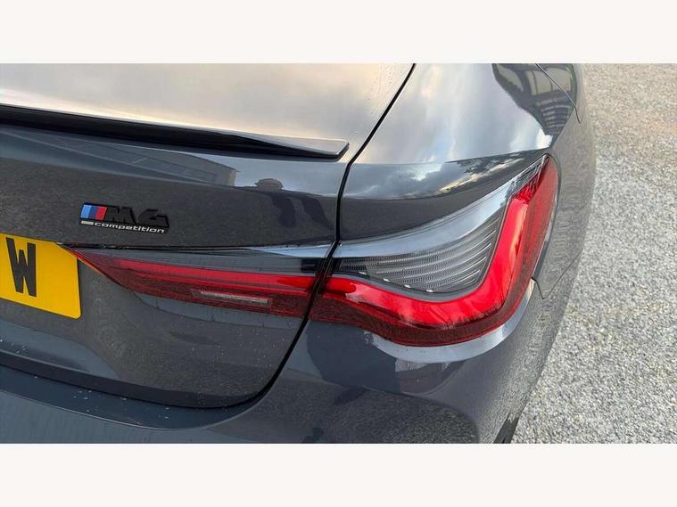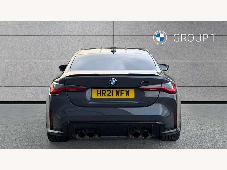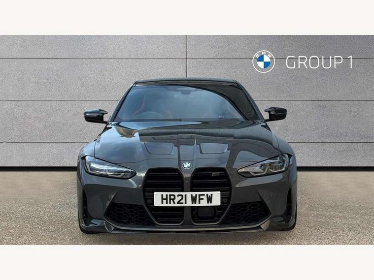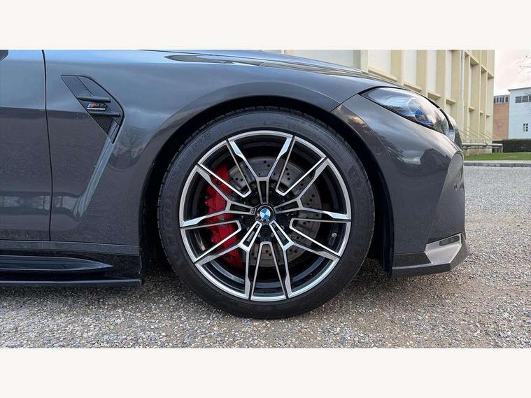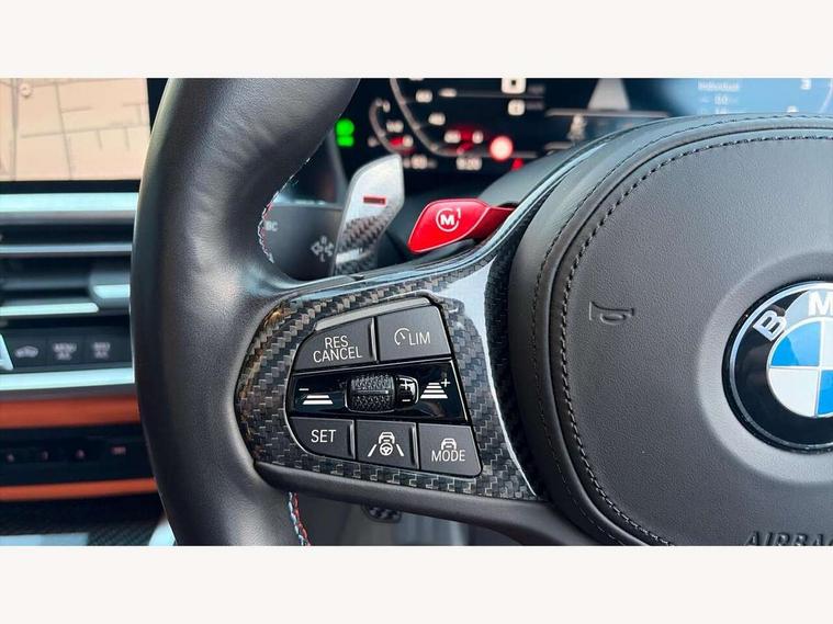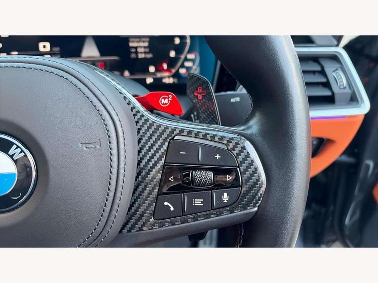 Automatic start/stop system, Bluetooth with USB, BMW gesture control, BMW iDrive controller on centre console, BMW legal emergency call, BMW Live Cockpit Professional sat nav system with 12.3" instrument display and high resolution control display, BMW Online services, BMW Teleservices, Brake pad wear indicator warning light, Door/boot open warning light, Electric Power Steering (EPS) with Servotronic, Head up Display, Instrument cluster with extended contents, Lights on warning, Oil sensor for level and grade, warning by check control system, Oil temperature gauge, On board computer, On board diagnostics, Optimum shift indicator, Outside temperature display, Pull away assistant, Run flat indicator, Service interval indicator, Speed limiter, Adaptive M Sport suspension, M Drive Professional including track mode, laptimer, traction control & Drift analyser, M Sport differential, M steptronic sport transmission with drivelogic, 8 programmable favourite buttons, Auxiliary point for auxiliary devices, BMW professional radio/CD/MP3, DAB Digital radio, Harman/Kardon loudspeaker system, Auto dimming driver's door mirror, Auto dimming rear view mirror, Automatic headlights + automatic windscreen wipers, Black chrome exhaust tailpipes, Black model designation badges, BMW high gloss shadow line with extended contents, BMW Individual shadowline lights, Body colour bumpers, Body colour door handles, Carbon fibre reinforced plastic (CFRP) roof, Day time running light, Door mirror integrated indicators, Door sill finishers with aluminium inserts, Dynamic brake lights, Electric adjustable heated door mirrors, Electric folding door mirrors, Follow me home headlights, Front and rear bumper system, Front electric windows with open and close fingertip control, anti trap facility and comfort closing, Heat protection, sun protection glazing, Heated rear window with automatic switch off, High beam assistant, High gloss black frameless kidney grille with M badge, LED number plate light, LED tail lights with 3D L-shaped LED light design, M designation, Mirror glass aspheric on driver's side, convex on passenger side, Rear fog lights, Rear reflectors, Shark fin roof aerial, Visible VIN plate, Welcome lighting, Windscreen wipers with integrated washing jets, 12V power socket in front centre console with blanking plug, 2 cupholders in front centre console, 2 rear head restraints, 40:20:40 manually split folding rear seat with two tilt positions for backrest, Ambient lighting, Anthracite headlining, Carbon fibre centre console incl. cover for cupholders, Carbon fibre decorative steering wheel finishers, Carbon fibre shift paddles, Carbon fibre strip in instrument panel on front passenger side, Compartment in front of cupholder, Driver/passenger sunvisors with illuminated vanity mirrors + covers, Electric front seats + driver memory, English handbook, Footwell lighting, Front and rear door exit lights, Front door storage bins with bottle holder, Front interior light, Front isofix attachment + airbag deactivation, Front seat backrest width adjustment, Front seats lumbar support, Front/rear door armrests, Gearshift lever with embossed M badge, Heated front seats, Height adjustable front headrests, Interior mirror lighting, Isofix on 2nd row outer seats, Lockable/illuminated glovebox, Luggage compartment lighting, Rake/reach adjustable steering wheel, Storage compartment in rear doors, Storage tray and compartment with cover in centre console, Three zone automatic air conditioning, Toolkit located in luggage compartment, Additional storage compartment pack - M4, Connected package professional - M4, High gloss shadowline exterior trim pack - M4, 4 x 3 point seatbelts, ABS/EBD, Automatic Stability Control (ASC), Brake energy regeneration, Brake fade compensation, Compound structure brake discs, Cornering brake control (CBC), Crash sensor, Driver/Front Passenger airbags, Dry braking, Dynamic brake control, Dynamic Stability Control with M Dynamic mode, Dynamic Traction Control - DTC, Electromechanical parking brake, Front and rear head airbags, Front seat side impact airbags, Front seatbelt pretensioners + load limiters, Hill start assist, M Sport seat belts, Seatbelt warning, Side impact protection, Two tone horn, Tyre pressure sensor, Warning triangle and first aid kit, Electronic immobiliser, Remote central locking, Thatcham cat 1 remote alarm, Vehicle Key with 4 buttons including the integrated key, Galvanic finish to control surrounds, High gloss black interior trim, Tyre repair kit,