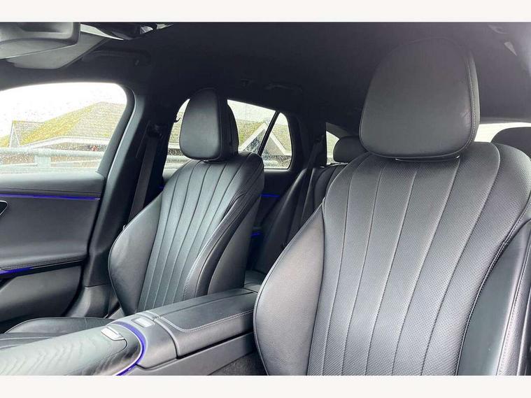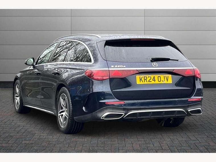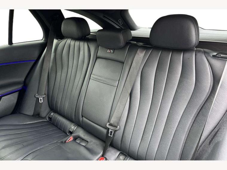 12.3" Driver display screen, 14.4" central media display, 5G Communications module, Active park assist with parktronic system, Attention assist, Blind spot assist, Brake wear warning display, Direct steer speed sensitive steering, Easy-pack tailgate - Powered opening/closing automatically, ECO start/stop function, Emergency call assistance, Evasive manoeuvre support, Fluorescent jacket for driver, Hard disc navigation, Head up Display, MBUX navigation premium, MBUX voice control, Mercedes connect me, Outside temperature display, Preinstallation for live traffic, Remote Services Premium, Reversing camera, Service indicator (ASSYST), Status display for rear seat belts in instrument cluster, Trip computer in multifunction display showing current fuel consumption, Wireless charging, Wireless smartphone integration with Apple CarPlay and Android auto, 48V Mild hybrid technology, 66 litre fuel tank, 9G TRONIC automatic transmission, Agility control suspension with selective damping and lowering, Bluetec emission control, Diesel particulate filter, Integrated starter generator Gen 2, Rear air suspension with level control, Sporty engine sound system, 2 USB ports in centre console, 2 USB ports in the rear, DAB Digital radio, Preinstallation for MBUX Entertainment Plus, 3rd brake light, Adaptive brake lights, Aerial integrated in rear window, AMG bodystyling, Auto dimming driver's door mirror, Auto dimming rear view mirror, Black radiator grille, Chrome roof rails, Digital air vent control, Electric folding door mirrors, Electric windows with one touch opening/closing and obstruction sensors, Electrically adjustable and heated door mirrors, Heat insulating privacy glass, LED daytime running lights, LED high performance headlights with adaptive highbeam assist, Pre-installation for roof rail systems, Rear side wing doors, Rear wiper, Surround lighting with logo projection, 3 seat bench in 2nd row, 4 way lumbar support, Ambient lighting, AMG brushed stainless steel sports pedals with rubber studs, AMG floor mats, AMG line interior, Automatic child seat recognition sensor, Central stowage compartment with USB socket for use with Android Auto and Apple CarPlay, Comfort seats, Courtesy lights in rear grab handles with reading light functionality, Folding rear seat backrest, Front centre armrest with stowage compartment, Glove compartment - lockable, air conditioned and illuminated, Head restraints for driver and front passenger (four-way adjustability) and in rear (two-way), Heated front seats, Multifunction sports steering wheel in nappa leather, Roof liner in black fabric, Seat occupancy sensor for front passenger seat, Single front passenger seat, Steering wheel touch control buttons for audio and onboard settings, Sunvisors with illuminated vanity mirrors, Thermatic 2 zone climate control, Leather package - E Class, USB plus package - E Class, 3x3 point rear seatbelts, Active bonnet pedestrian safety measure which detects an impact and raises bonnet, Adaptive brake system with HOLD function and brake drying in the wet, Airbags - sidebag for driver and front passenger with combined thorax/pelvis bag, Anti-lock braking system (ABS), Automatic front passenger airbag deactivation, Central airbag, Childproof locks manually operated for rear doors and electrically operated for rear power windows, Driver and adaptive front passenger airbags, Electronic parking brake, Electronic Stability Programme, Hill start assist, ISOFIX child seat attachment points two outer rear seats, Knee airbags, Pedestrian protection, Pre-Safe anticipatory safety system, Tyre pressure monitoring system, Warning triangle and first aid kit, Window airbags, Alarm system with interior monitoring, Central locking with interior switch, automatic locking and crash sensor with emergency opening function, Dashcam, Digital vehicle key, Guard 360 degree vehicle protection, Increased anti theft protection, Keyless Go, Urban guard vehicle protection plus, Centre console trim in open pore black ash wood, Dash panel trim in open pore black ash wood, 18" AMG 5 twin spoke alloy wheels, Summer tyres, Tirefit,