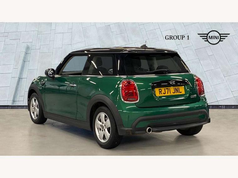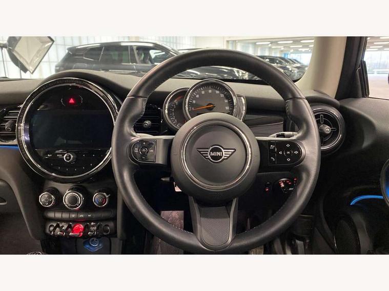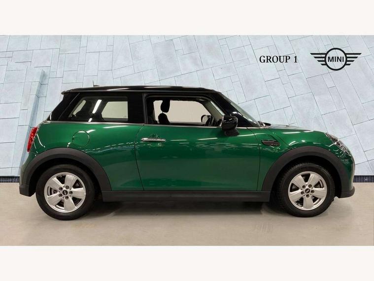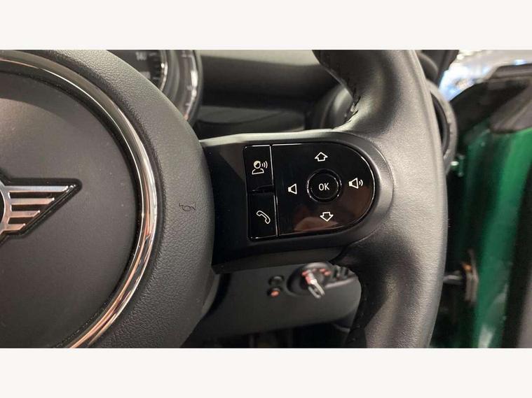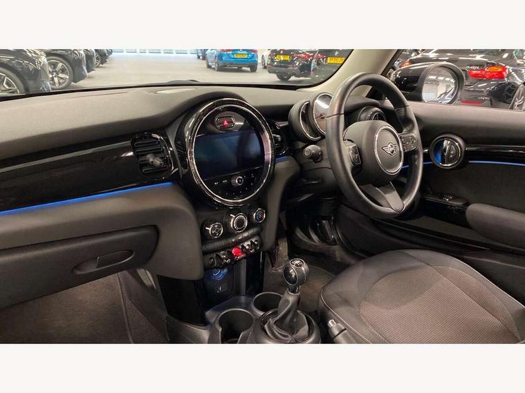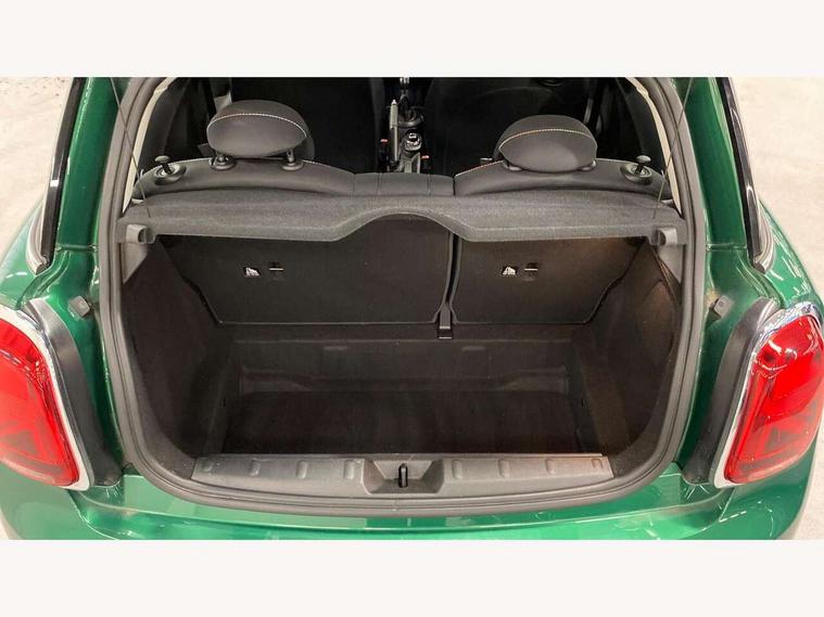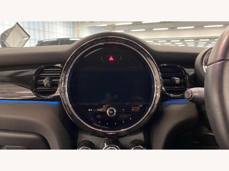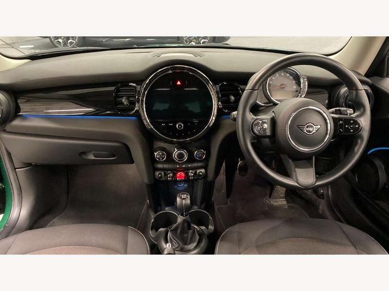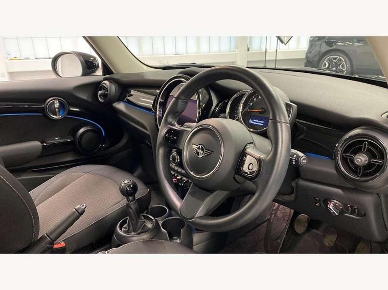 Automatic start/stop function with brake energy recuperation, Compatible mobile phone bluetooth with audio streaming, Cruise control with brake assist, Electro-mechanical speed dependant steering assistance, Flexible car sharing preparation, Instrument cluster, Mini E-call, MINI TeleServices, On board computer, Service interval indicator, 6 Speed manual transmission including gear change indicator display, Double Vanos system, Fully variable valve control, High precision injection, Performance Control, 4 speakers in front door trims and underneath front seats, 8.8" touchscreen with LED ring, FM tuner and DAB digital radio, Automatic headlight activation switch, Body colour fuel filler cap, Chrome border high gloss black slats radiator grille, Dynamic brake lights, Electric front windows, Exhaust tailpipe on left with chrome finisher, Heated rear window, Heated windscreen washer jets, LED headlight with closed ring and daytime driving lights, Metal door sill strips with MINI imprint, Model logo Cooper on right of tailgate, Rain sensor window wipers, Rear fog lights, Rear LED lights with union jack design, Rear window wiper, Side scuttle panel with integrated indicator, Sun/heat protection glass, White indicator lenses, 12V Accessory socket in centre console, 4 lashing eyes in luggage compartment, 60/40 split folding rear seat, Ambient lighting, Carbon black colour line - Knee roll and door armrest, Chrome interior highlights, Cupholders, Front and rear head restraints, Front and rear isofix with front passenger airbag deactivation, Glove compartment, Height and length steering column adjustment, Interior lighting with 12 different colours across the dashboard, underneath door bezel with illuminated laser-engraved design on central display, Leatherette gearshift lever and handbrake gaiters, LED reading lights, vanity mirror lights, front foot well light and spotlight on front seats, Manual air conditioning, Mechanical seat adjustment - forward/back & backrest for front seats and driver seat height adjust, Multifunction steering wheel, Passenger seat height adjuster, Satellite grey headlining including grab handles and clothes hooks, Sport leather steering wheel with speed limiter and audio/communication controls, Storage compartments in doors, Sunvisors with vanity mirrors, Velour floor mats, 3 point seatbelts on all four seats, 6 Airbags - front, side, head and seat belt tensioners, Anti-lock braking system (ABS), DSC - Dynamic Stability Control, Front and rear disc brakes, Single tone fanfare horn, Tyre pressure monitoring system, Alarm system with tilt sensor, monitoring doors, bonnet interior and tailgate, Electronic vehicle immobiliser, Start/stop toggle with keyless go, Piano black interior trim, Tool kit, Tyre repair kit,