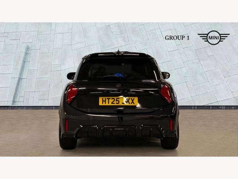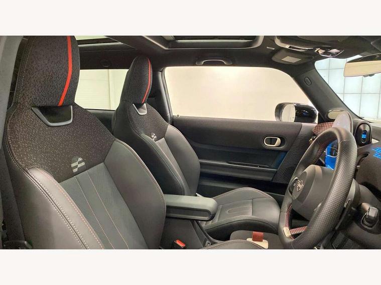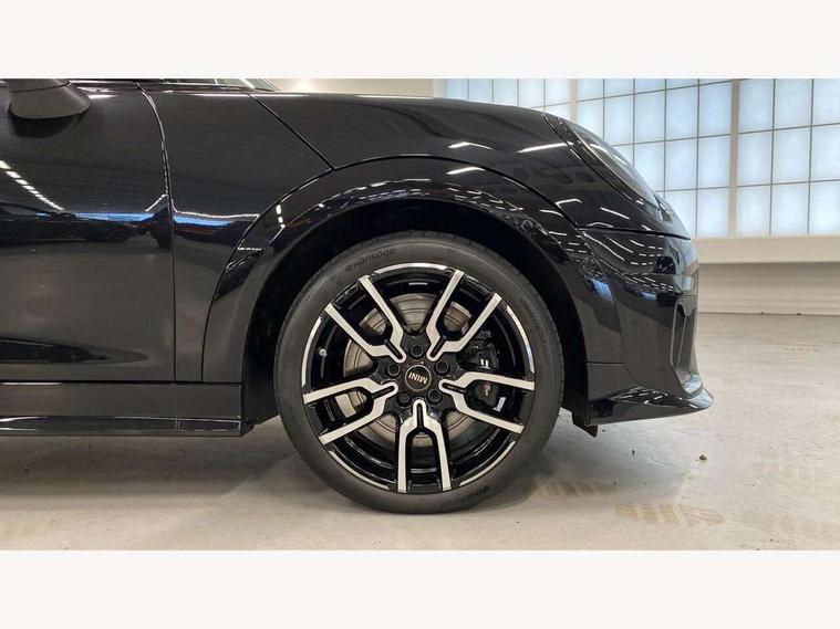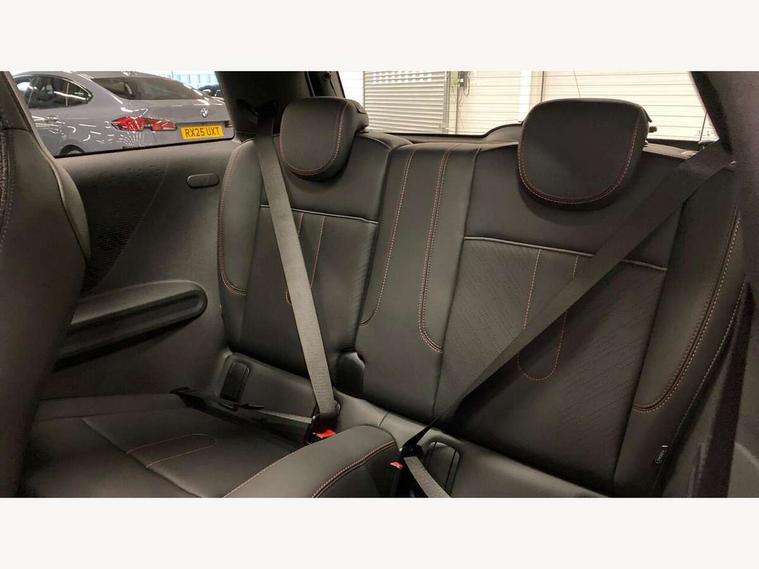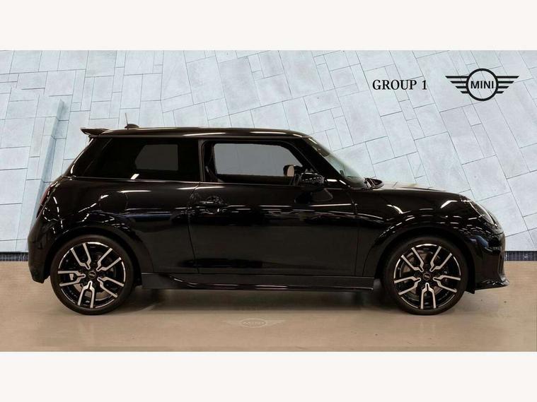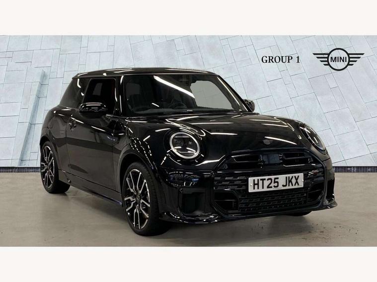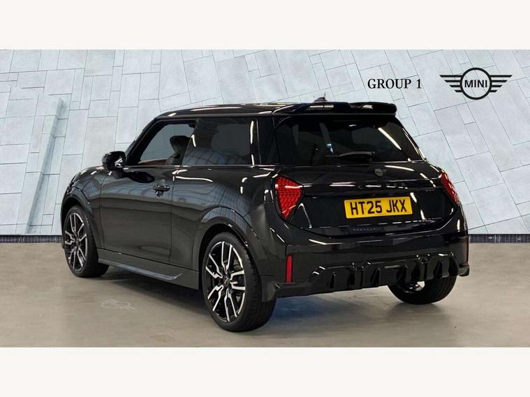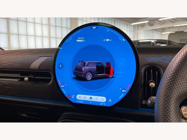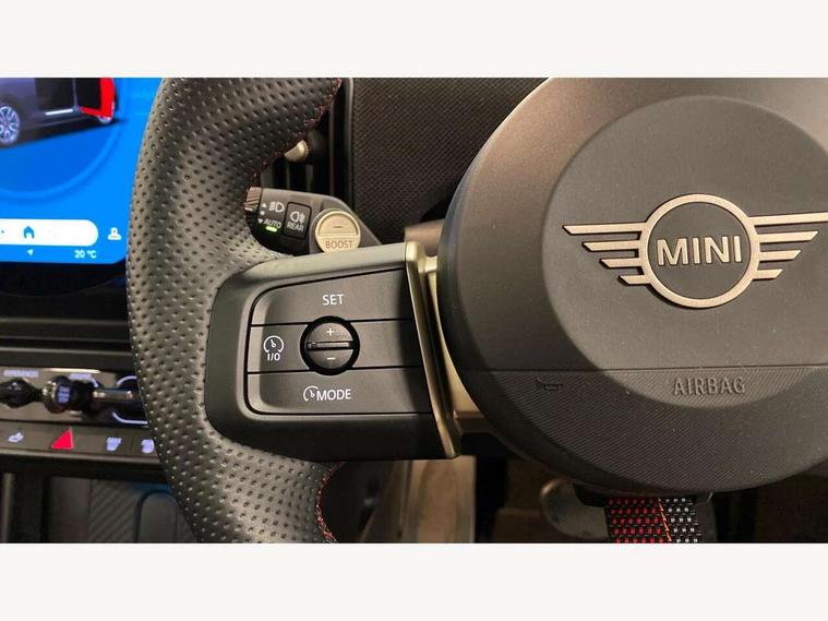 Central toggle bar, Circular OLED Screen, Compatible mobile phone bluetooth with audio streaming, Cruise control, Digital instrument cluster, Electro-mechanical speed dependant steering assistance, Emergency call service, MINI Experience Modes, Mini navigation system, On board computer, Service interval indicator, Tailgate, 7 speed steptronic transmission with double clutch, Adaptive suspension, DAB Digital radio, Personal eSim, Auto headlights, Electric adjustable heated door mirrors, Electric front windows, Front and rear apron, Heated rear window, Heated windscreen washer jets, High gloss black wheel arches, High gloss hexagonal patterned grille surround, JCW body kit, LED 3rd brake light, LED daytime running lights, LED Headlights, LED indicator lights, LED rear lights, Rain sensor window wipers, Rear fog lights, Rear roof spoiler with airblades, Rear window wiper, 2 seat bench in second row, 2 zone automatic air conditioning, 60/40 rear seat bench, Ambient lighting, Black lower band in high gloss, Cupholders, Dark headliner, Front and rear head restraints, Front compact armrest, Front floor mats, Heated steering wheel, Height adjustable passenger seat, Lidded storage box in Black/Red knit, Luggage compartment lighting, Partially perforated vescin steering wheel with red accent, black/red decorative strap, Single front passenger seat, Steering wheel paddle shift, Sunvisors with vanity mirrors, Vescin/Cord combination JCW upholstery includes dash knit in black with red accents, Driving assistant pack - Cooper Hatchback, Park assistant pack - Cooper Hatchback, 3 point seatbelts on all four seats, 6 Airbags - front, side, head and seat belt tensioners, Anti-lock braking system (ABS), Brake caliper in Black with JCW badge, DSC - Dynamic Stability Control, Electronic parking brake, Front and rear disc brakes, Front ISOFIX (iSize), Front passenger airbag deactivation, JCW Sport Brakes, Traction control, Tyre pressure monitoring system, Alarm, Immobiliser, Remote central locking, Black/Red decorative dash strap, Tyre repair kit,