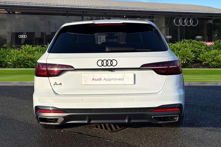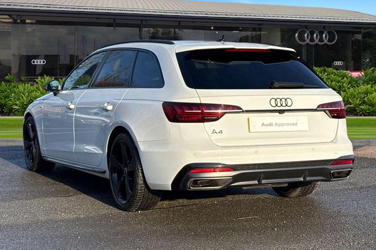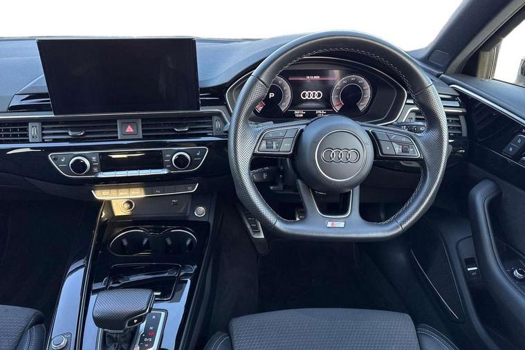 Audi connect safety and service (e-call), Audi connect with Amazon Alexa Integration, Audi drive select, Audi parking system plus with front and rear sensors, Audi smartphone interface, Audi virtual cockpit, Automatic start-stop system with coasting functionality and efficiency programme, Bluetooth interface, Electromechanical power steering, Email, calendar and text messages displayed via MMI, MMI Navigation plus with MMI touch includes 10.1" high resolution colour MMI display, 3D map, Power operated tailgate, Rear view camera, Voice control system, 54 litre fuel tank, Sports suspension lowered by 23mm, 2 USB charging ports, 8 passive loudspeakers, DAB digital radio reception, Auto dimming rear view mirror, Black Audi rings and black badging (model name in black badging, no engine badging), Black audi rings decal above rear sills, Body colour door handles, Body colour front spoiler lip, Body colour side sill trim, Electrically folding auto dimming/adjustable/heated door mirrors with LED side indicators and kerb view function for passenger side, Front and rear bumpers with side skirts, Front wing badges, Grained matt black side air inlets with matt aluminium silver inlay, High beam assistant, High gloss black B pillar trims and triangular rear door trim, LED headlights with LED rear lights + dynamic rear indicators + headlight adjustment and high beam, turning light + LED daytime running lights, Matt aluminium silver tailpipe trim, Privacy glass, Rain and light sensors, Rear diffuser in matt titanium black with trim strip in matt aluminium silver, RS4 rear spoiler in body colour, S Line roof edge spoiler, Windscreen with acoustic glazing, 4 way electric lumbar support for driver and front passenger, 40/20/40 split folding 3 rear seat bench in 3 parts with rear centre armrest, Black cloth headlining, Black perforated leather gearknob, Contrast stitching on seats, steering wheel and gear lever gaiter, Deluxe 3 zone electronic climate control, Door sill trims with aluminium inlay, Electric load area cover, Front and rear head restraints, Front centre armrest, Heated front seats, Illuminated door sill trims with S logo, ISOFIX child seat mounting and top tether, Manual seat adjustment, Stainless steel pedals and foot rest, Black styling pack - A4 Avant, LED Interior light pack - A4/S4, 3 rear seatbelts, 6 airbags - Driver, front passenger, curtain and side windows, Electronic Stabilisation Control (ESC) including ABS, ASR and EDL, Hill hold assist, Multi collision brake assist, Pop-up bonnet for pedestrian protection, Pre sense city, Seatbelt monitoring, Warning triangle and first aid kit, Anti theft alarm, Anti theft wheel bolts, Keyless Go, Piano black finish inlay, Tool kit, Tyre repair kit,