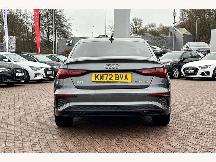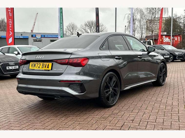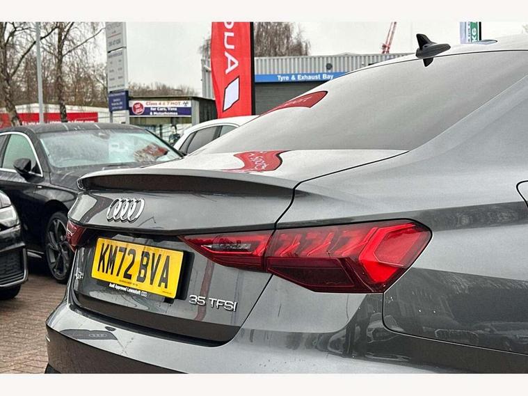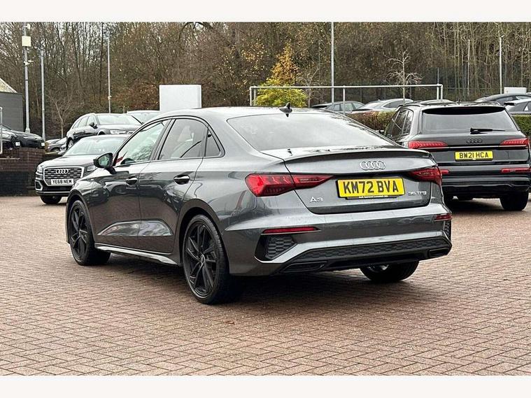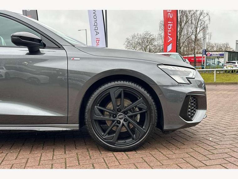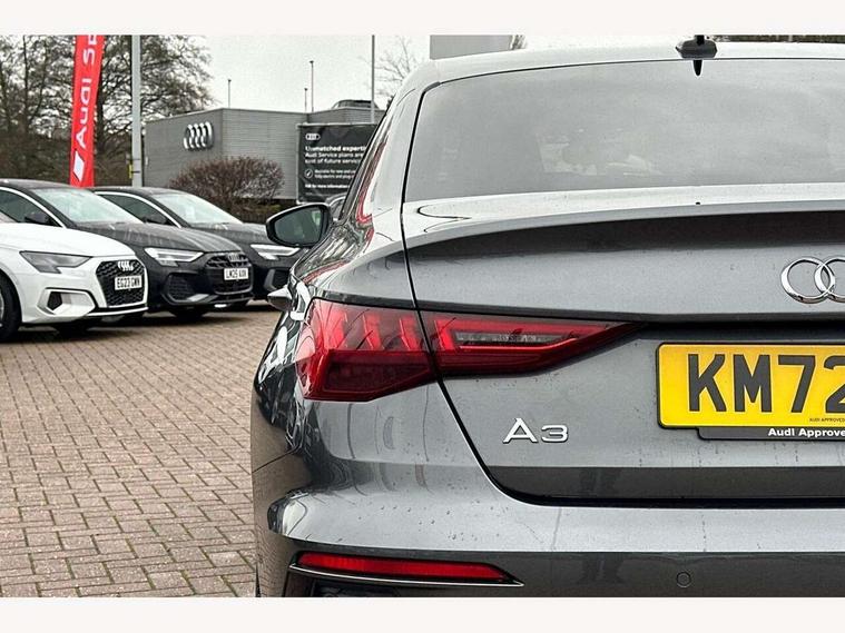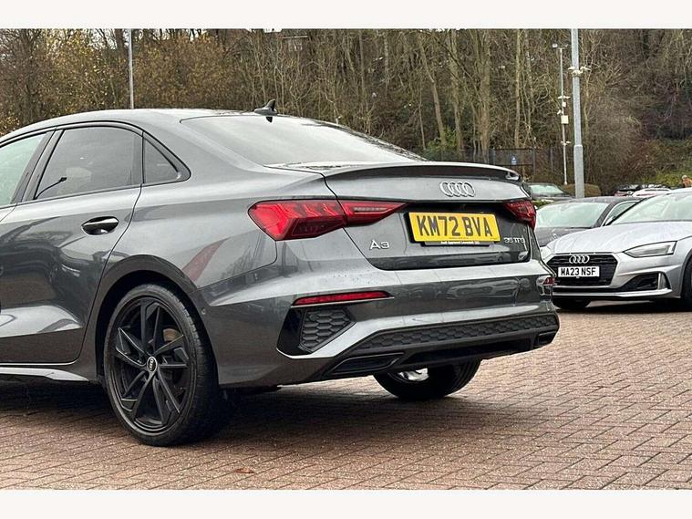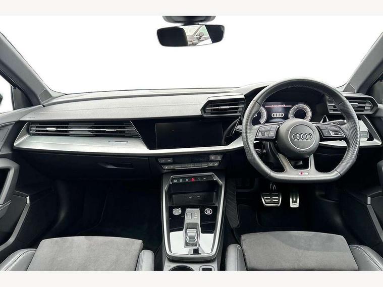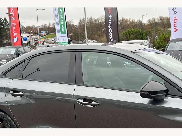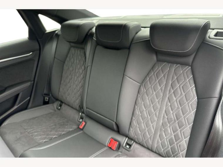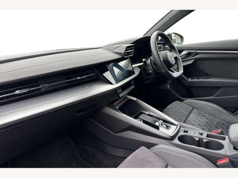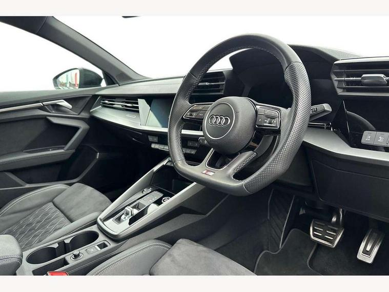 Audi connect emergency call and service, Audi drive select (Auto, Comfort, Dynamic, Efficiency and Individual), Audi smartphone interface, Audi virtual cockpit plus - 12.3" dynamic digital instrument cluster, Automatic start/stop system with recuperation, Bluetooth interface, Collision avoidance assistant, Electromechanical power speed sensitive steering, Lane departure warning system, MMI Navigation Plus with high resolution 10.1" colour touch screen display, Service indicator, Voice control system with natural language interaction, Sports suspension, 2x USB Type C ports (for charging and data transfer), 6 passive loudspeakers, CD player, DAB Digital radio, 3rd brake light, Acoustic glass windscreen, Audi matrix LED headlights, LED rear lights, dynamic front and rear indicators and headlight cleaning system, Auto dimming frameless rear view mirror, Electrically adj heated/folding + automatically dimming exterior mirrors + automatic kerb side function for passenger side exterior mirror, Front electric windows, Illuminated door sills with aluminium inserts at the front with S logo, Integrated LED indicators in door mirrors, LED daytime running lights, Light and rain sensors, Model and engine designation badges at rear, Privacy glass - dark tinted rear window, rear door and side windows, Rear boot, Rear electric windows, Rear side wing doors, S roof spoiler, 12V socket and storage compartment in front centre console, 3 seat bench in 2nd row, 4 way electrically adjustable lumbar support for driver and front passenger, 40/20/40 split folding rear seat bench with cupholder, Black cloth headlining, Dual zone electronic climate control, Electrically adjustable front seats, Front and rear centre armrest in leather, Front and rear headrests, Front/rear floor mats, Heated front seats, Height and reach adjustable steering wheel, Illuminated vanity mirror, Interior lighting - glove compartment light and right hand side, Luggage compartment floor covering, Single front passenger seat, Stainless steel pedals and front footrest in black, Aluminium interior elements pack - A3 Saloon, Dinamica microfibre/mono.pur 550 artificial leather pack - A3 Saloon, Extended ambient lighting pack - A3/S3 Saloon, LED interior lighting pack - A3 Saloon, 3x3 point rear seat belts, Driver and front passenger airbag with passenger airbag deactivation, Electronic Stabilisation Control (ESC) including ABS, ASR and EDL, First aid kit with warning triangle and 2 safety vests, Front side airbags with head airbags and interaction airbag, Hill hold assist, Pre-sense front with pedestrian and cyclist detection, Seatbelt monitoring, Tyre pressure loss indicator, Anti theft alarm, Anti-theft wheel bolts, Electronically operated child locks, Immobiliser, Remote control central locking, Aluminium air vent surrounds, Aluminium trim elements, Dark spectrum aluminium inlays, accent surfaces in the dashboard and centre console in platinum grey silk effect paint finish, 19" 5 arm trapezoid design alloy wheels in titanium matt grey with diamond cut finish,