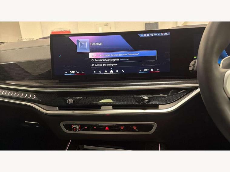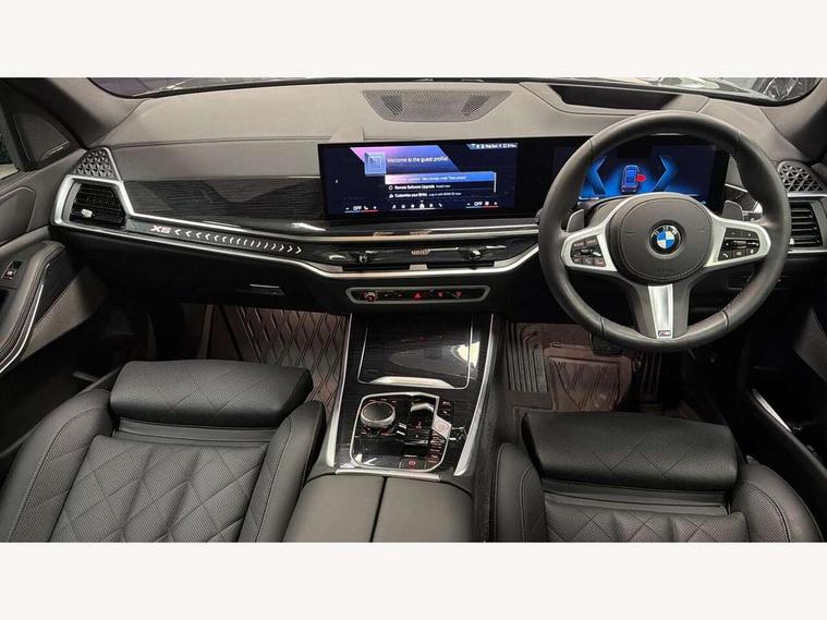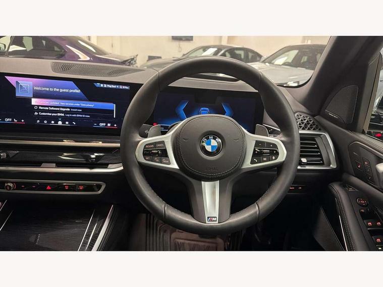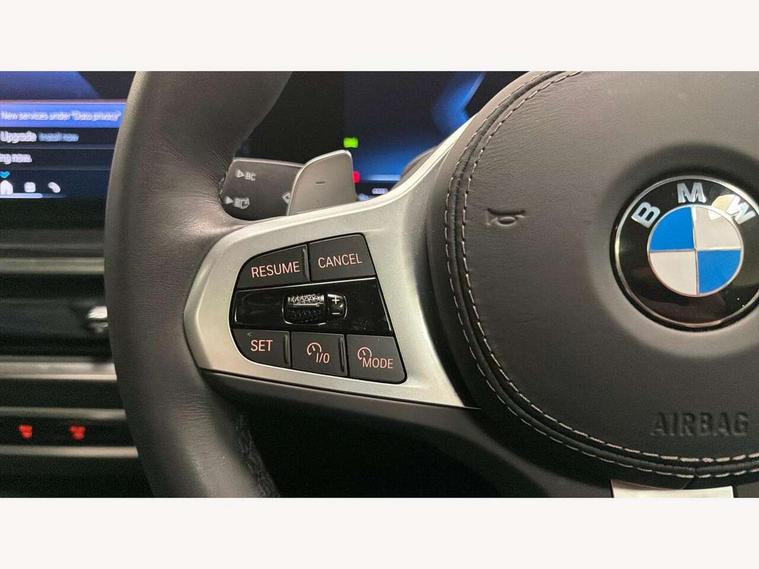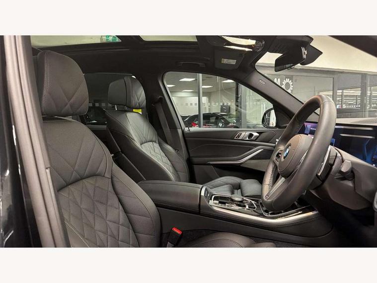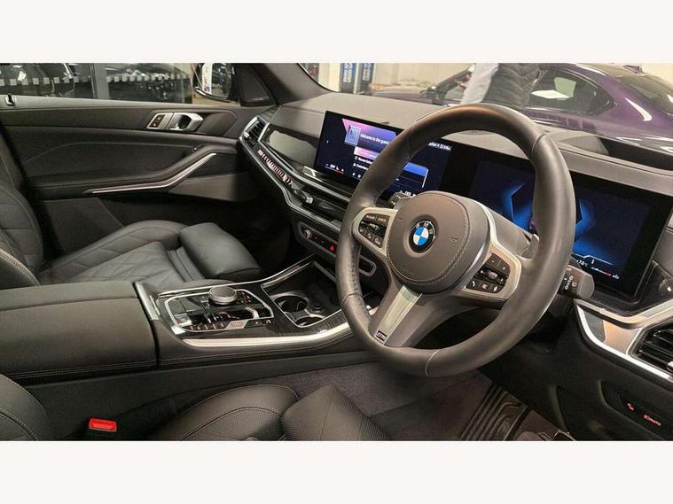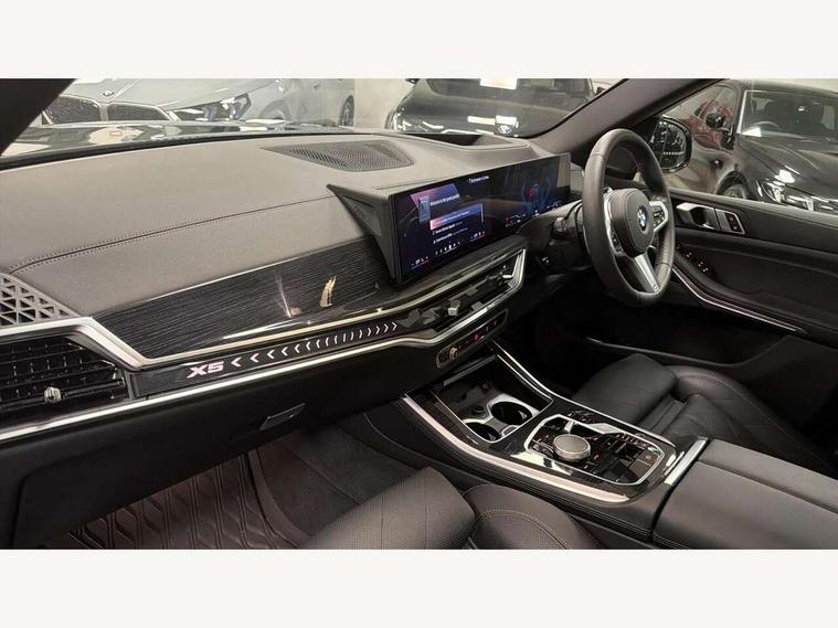 Attentiveness assist, Automatic tailgate operation, BMW ConnectedDrive online services, BMW live cockpit + with curved 12.3 instrument cluster/14.9 central display, nav/Tuner with diversity reception, RDS/4GLTE/remote software upgrade, BMW Recovery system, BMW Teleservices, Condition based service, Cruise control with brake assist, eCall emergency call system, Enhanced bluetooth with wireless charging, Integrated owner's handbook, PAS, Speed limiter, Wi-Fi hotspot, Drive performance control with ECO PRO comfort + sport mode, Eight speed steptronic sport automatic transmission and gearshift paddles on the steering wheel, Adaptive LED Headlights, Front and rear electric windows, High beam assistant, High gloss black shadow line roof rails, LED daytime running lights, Rain sensor, Rear side wing doors, Third brake light in rear spoiler, Variable intermittent rear wash/wipe, 12V - Power sockets with 2x centre console and 1x luggage compartment, 3 seat bench in 2nd row, Foldable rear centre armrest with 2 cupholders and storage compartment, Front and rear side armrest integrated into door trim, Headrests for all seats, Luggage compartment separating net, Lumbar support with height and depth adjustment in backrest, Single front passenger seat, Three spoke sport M leather steering wheel, Velour floormats, Ambient light interior pack - X5, Driving assistant pack with radar based driver assistance system - X5, Expanded exterior mirror pack - X5/X5 M, M aerodynamics pack - X5, Parking assistant pack - X5, 3 rear seatbelts, Active protection, Airbags - driver/front passenger, rear and side, first and second row seats head airbags, front passenger seat airbag deactivation + knee airbag, Anti-lock braking system (ABS), Automatic Stability Control (ASC), Brake energy regeneration, Cornering brake control (CBC), Crash sensor activating central locking release, hazard warning lights, fuel cut off, interior lighting + activation of safety battery terminal clamp, DSC - Dynamic Stability Control, Dynamic Traction Control - DTC, Electromechanical parking brake with automatic drive away release and auto hold function, Electronic brake force distribution, Hill start assistant, M Sport blue painted brake calipers with 'M' designation, Mechanical child proof lock on rear doors, Tyre pressure monitoring system, Tyre pressure sensors, Ventilated front and rear disc brakes, Warning triangle and first aid kit, Alarm system, Closing system with central locking, Comfort access system, Locking wheel bolts,