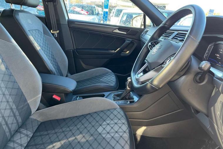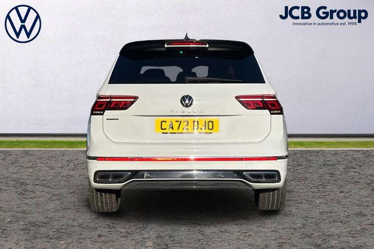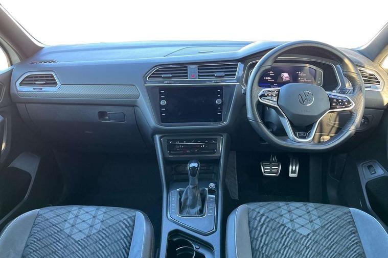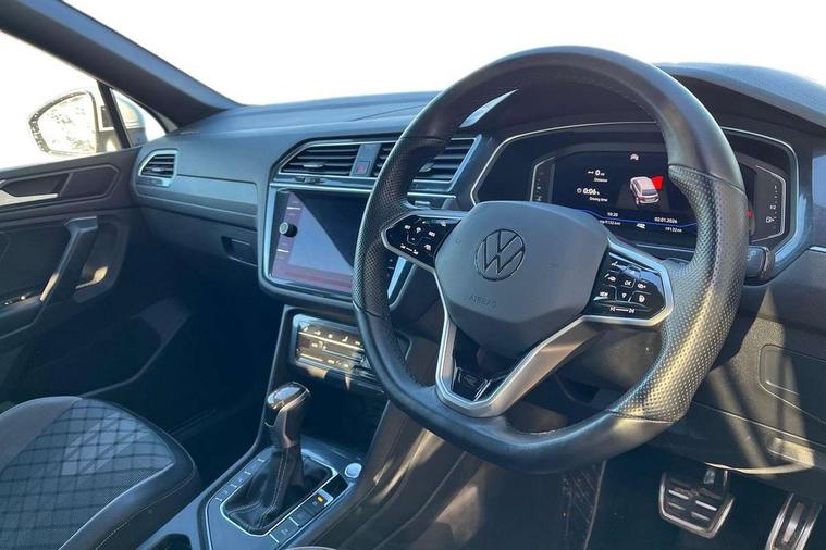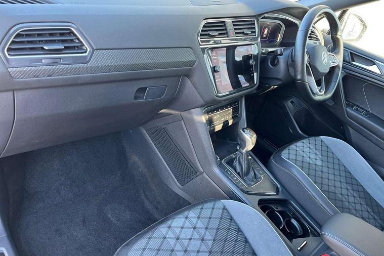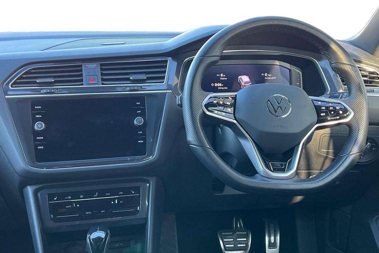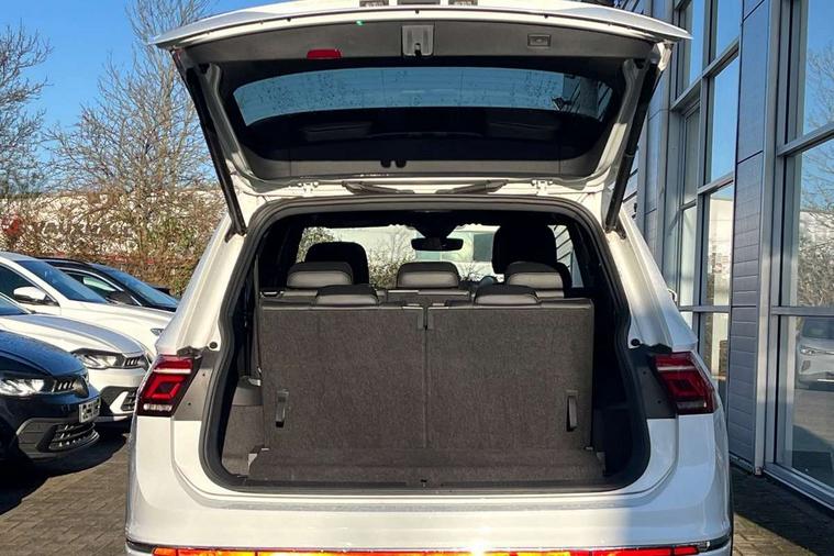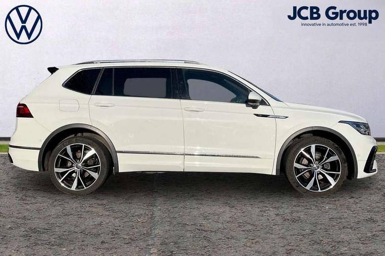 Adaptive cruise control, App-Connect, Digital cockpit pro, Driver alert system, Driver profile selection, Dynamic road sign display, eCall emergency call service, Electric boot lid, Lane change system side assist and rear traffic alert, Lane keeping system Lane Assist, Mobile phone interface comfort with inductive charging feature, Multifunction front facing camera, Progressive steering, Speedo and rev counter, electronic odometer, trip, service interval display and exterior temperature gauge, Front wheel drive, Start-stop system with battery regeneration (recuperation - energy recovery during braking), 2 USB-C ports in the front, 1 USB-C charging socket on the center console in the rear, 8 Speakers, DAB Digital radio, Diversity antenna for FM reception, Radio, Auto dimming interior rear view mirror, Automatic headlight control system, Chrome mouldings on side window, Coming/leaving home lighting function, Dark red rear combination lamps in LED technology, Exterior badge deletion, Exterior mirror housings painted in silver, Headlight range control, Heated windscreen washer jets, LED headlamps with LED separate signature running light and dynamic cornering light, Poor weather light and cornering light, Rain sensor, Rear fog light, Rear side wing doors, Rear spoiler in R style, Rear wiper, Silver roof rails, Third brake light, 12-volt outlet in centre console rear and luggage compartment, 12V socket in centre console, 3 head restraints in rear, 3 individual folding 2nd row seats, 3rd row 2 individual seats, Air Care Climatronic 3 zone automatic climate control with enhanced air filter and controls in the rear, Black roof lining, Door and side trim panel with leatherette insert, Drawers under front seats, Driver and front passenger seat height adjustment, Foldable front passenger seat backrest, Front + rear carpet mats, Front centre armrest, Front footwell illumination, Heated front seats, Heated leather wrapped multifunction sports steering wheel with touch control and shift paddles, Illuminated scuff plates, ISOFIX anchorage points for mounting 2 child seats on rear seats and i-Size child seats, Leather gearshift handle, LED interior light with switch off delay/dimmer and 2 front/rear LED reading lights, Stainless steel pedals, Sun visors with illuminated vanity mirrors, Ambience pack - Tiguan Allspace R Line, Driver assistance plus package - Tiguan Allspace, 3 point seat belt for centre rear seat, 3 rear three point seatbelts, ABS+EBD+Brake assist, Driver and front passenger safety-optimised head restraints, Driver's and front passenger's airbag with front passenger's airbag deactivation switch, Electronic parking brake, Electronic Stability Control (ESC) inc EDL (Electronic Differential Lock) and ASR (Traction Control), Height adjustable front 3 point seatbelts + pretensioners, Manual rear child locks, Pedestrian monitoring, PreCrash preventive occupant protection Front and rear, Rear disc brakes, Side airbag in front and rear with curtain airbag, Two tone horn, Warning buzzer for seatbelts if unfastened, Anti theft alarm system with interior monitoring, backup horn and towing protection, Anti-theft wheel bolts, Electronic steering lock, Remote central locking with 2 remote folding keys,