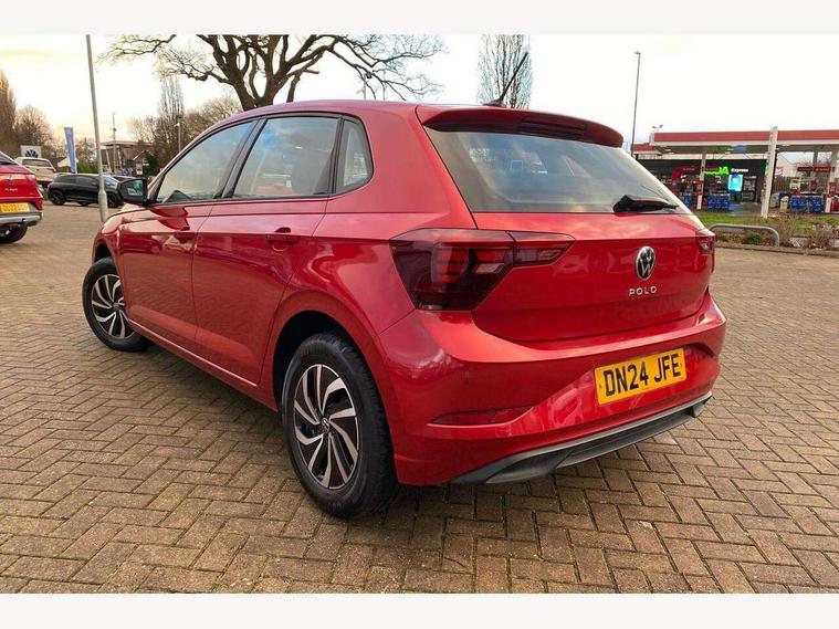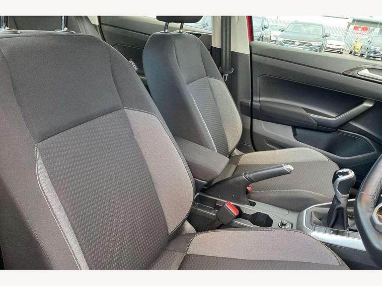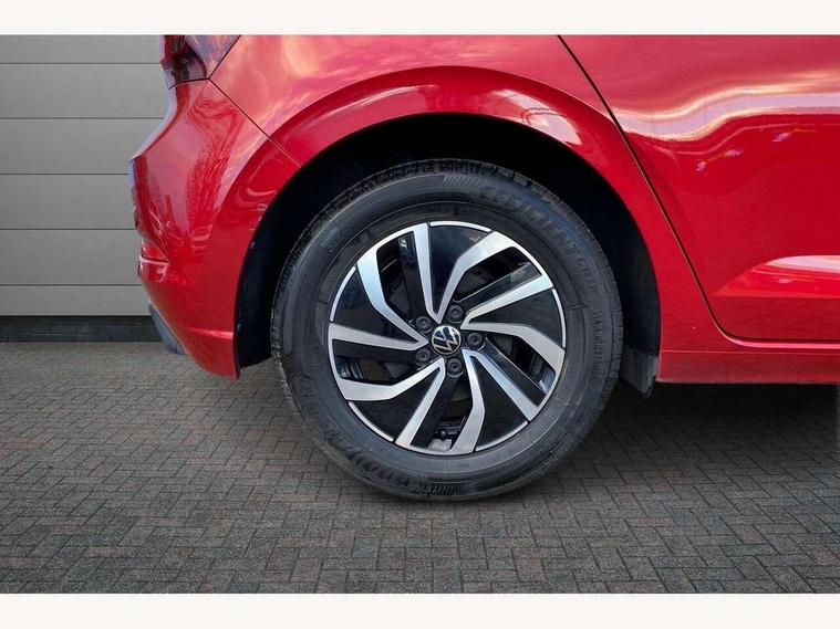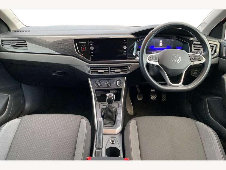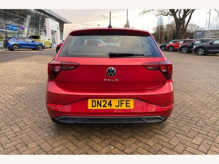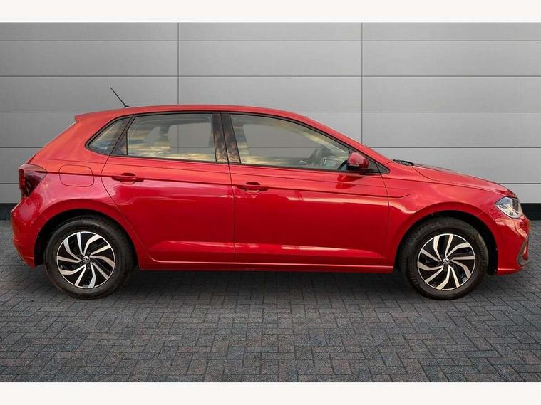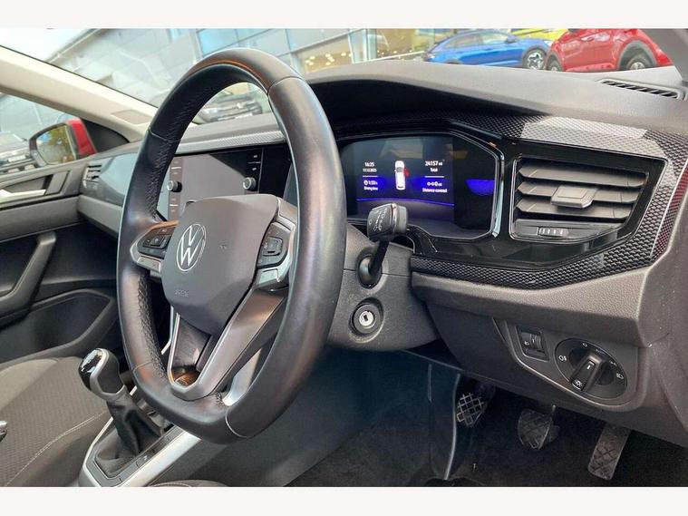 Adaptive cruise control without follow-to-stop and speed limiter, Advanced driver attention and drowsiness monitor, Bluetooth mobile phone interface, Dynamic road sign display, Emergency call service, Power assisted speed sensitive steering, Preparation for navigation system with media and internet package, Preparation for We connect and We connect plus, Speedo and rev counter, electronic odometer, trip, service interval display and exterior temperature gauge, Standard rear axle, Travel Assist - Lane keeping system and traffic jam assist, Travel assist including emergency assist, Trip computer, Warning signal and warning light for front and rear seatbelts not fastened, Washer fluid level indicator, Wireless app connect, Front wheel drive, Rear shock absorpion, Start-stop system with battery regeneration (recuperation - energy recovery during braking), DAB Digital radio, Diversity antenna for FM reception, Front and rear 6 speakers, Automatic dimming interior rear view mirror, Automatic headlight control with LED separate daytime running lights with coming/leaving home function, Body colour bumpers with chrome inserts, Body colour door handles, Body colour door mirrors, Electric front windows, Engine badge deletion, Headlight range adjustment, Heat insulating and laminated safety glass windshield, Heat insulating darkened glass in side and rear windows, Heat insulating glass windscreen, LED Headlights, LED rear combination lamps, Power folding adjustable/heated exterior mirrors and front passenger exterior mirror lowering function, Rain sensor, Rear electric windows, Rear fog light, Rear side wing doors, Rear windscreen washer and wiper with interval delay, Third brake light, 12V power socket in centre console, 2 front and 2 rear reading lights with switch off delay and dimmer, 2 USB-C ports in the front, 2 USB-C charging sockets on the center console in the rear, 3 rear head restraints, 60/40 split folding rear seat and rear seat bench not split, Ceramique roof lining, Chrome plated radiator grille inserts, air vent surrounds and light switch surrounds, Door and side trim panel, Driver and front passenger seat height adjustment, Driver/passenger sunvisors with illuminated vanity mirrors, Front centre armrest, Front seat backrest storage pockets, Front standard seats, Handbrake lever handle in leather, Hartley/Thomas cloth upholstery, Headliner in recycled material, Isofix child seat preparation easy-fit (for two outer rear seats, and front passenger seat) compatible with I-size, Leather trimmed gear knob, Luggage compartment cover, Luggage compartment lighting, Removable luggage compartment floor, Single front passenger seat, Standard climatic zones, Standard pedal cluster, Three spoke leather wrapped multifunction steering wheel, Light and vision pack - Polo, 3 point height adj front seatbelts + pretensioners, 3x3 point rear seatbelts, ABS, Driver and front passenger airbag with front passenger airbag deactivation, Drivers and front passengers safety optimised head restraints, ESC (Electronic stability control) + EDL (Electronic Differntial lock) and ASR (Traction control), Extended and predictive pedestrian/ cyclist protection, Front assist with autonomous emergency braking (for Adaptive Cruise Control ACC up to 130 mph), Front curtain and side airbags with center airbag, Front disc brakes, Hill hold control, Manual child lock in rear doors, Rear drum brakes, Single tone horn, Tyre pressure loss indicator, Alarm with interior protection, Anti-theft alarm system with interior monitoring, backup horn, and towing protection, Anti-theft wheel bolts, Electronic engine immobiliser, Lava stone black gloss/matt decorative inserts in dash and front door panels, Low rolling resistance tyres,