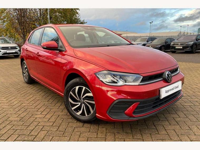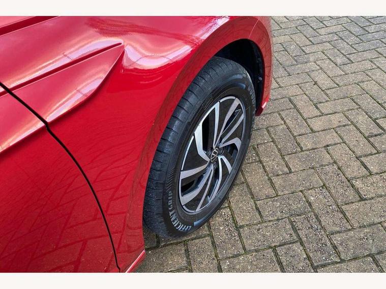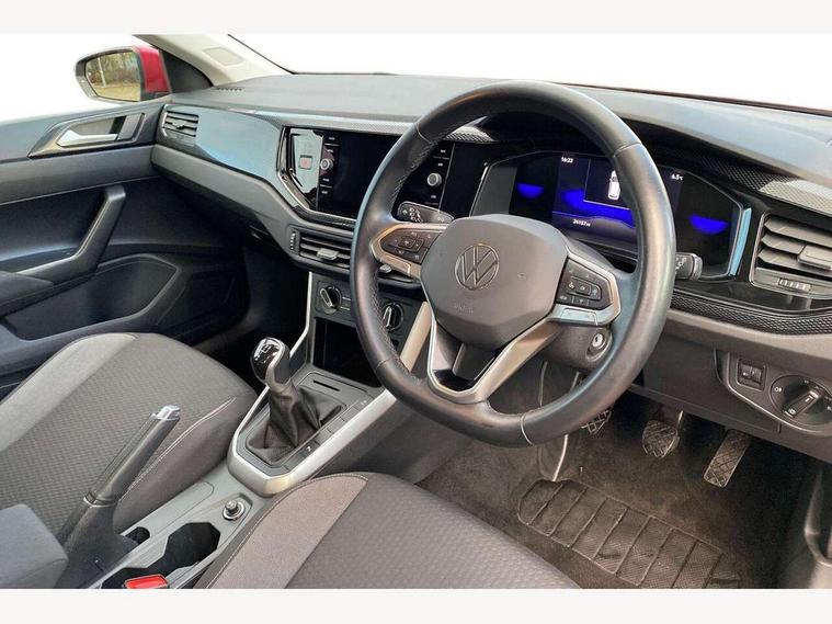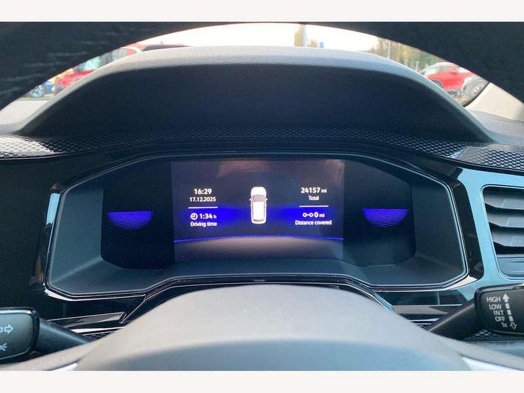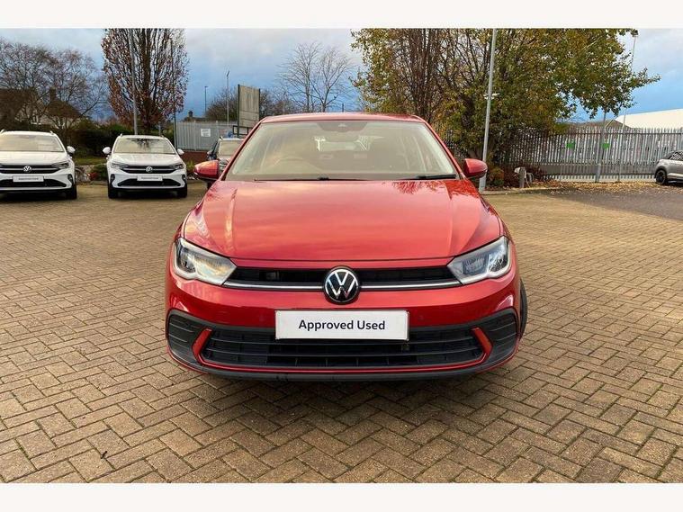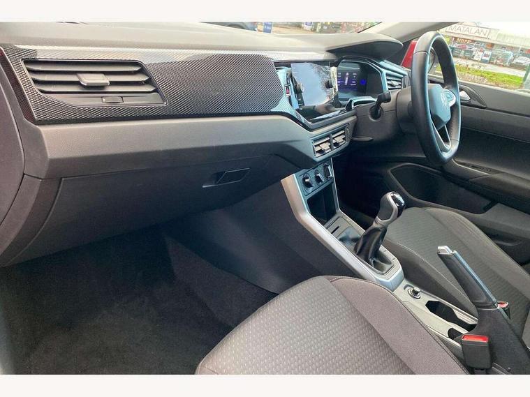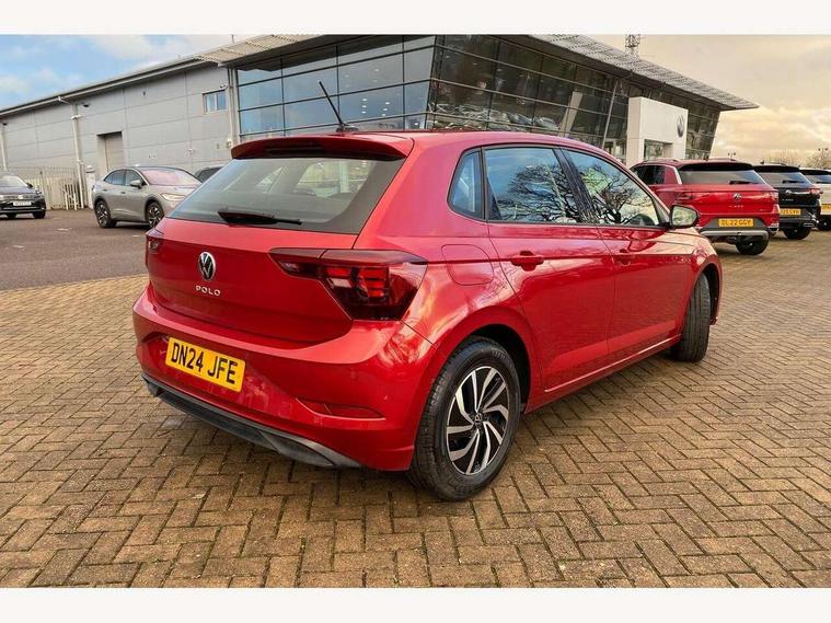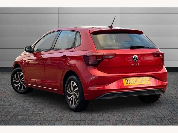 Adaptive cruise control without follow-to-stop and speed limiter, Advanced driver attention and drowsiness monitor, Bluetooth mobile phone interface, Dynamic road sign display, Emergency call service, Power assisted speed sensitive steering, Preparation for navigation system with media and internet package, Preparation for We connect and We connect plus, Speedo and rev counter, electronic odometer, trip, service interval display and exterior temperature gauge, Standard rear axle, Travel Assist - Lane keeping system and traffic jam assist, Travel assist including emergency assist, Trip computer, Warning signal and warning light for front and rear seatbelts not fastened, Washer fluid level indicator, Wireless app connect, Front wheel drive, Rear shock absorpion, Start-stop system with battery regeneration (recuperation - energy recovery during braking), DAB Digital radio, Diversity antenna for FM reception, Front and rear 6 speakers, Automatic dimming interior rear view mirror, Automatic headlight control with LED separate daytime running lights with coming/leaving home function, Body colour bumpers with chrome inserts, Body colour door handles, Body colour door mirrors, Electric front windows, Engine badge deletion, Headlight range adjustment, Heat insulating and laminated safety glass windshield, Heat insulating darkened glass in side and rear windows, Heat insulating glass windscreen, LED Headlights, LED rear combination lamps, Power folding adjustable/heated exterior mirrors and front passenger exterior mirror lowering function, Rain sensor, Rear electric windows, Rear fog light, Rear side wing doors, Rear windscreen washer and wiper with interval delay, Third brake light, 12V power socket in centre console, 2 front and 2 rear reading lights with switch off delay and dimmer, 2 USB-C ports in the front, 2 USB-C charging sockets on the center console in the rear, 3 rear head restraints, 60/40 split folding rear seat and rear seat bench not split, Ceramique roof lining, Chrome plated radiator grille inserts, air vent surrounds and light switch surrounds, Door and side trim panel, Driver and front passenger seat height adjustment, Driver/passenger sunvisors with illuminated vanity mirrors, Front centre armrest, Front seat backrest storage pockets, Front standard seats, Handbrake lever handle in leather, Hartley/Thomas cloth upholstery, Headliner in recycled material, Isofix child seat preparation easy-fit (for two outer rear seats, and front passenger seat) compatible with I-size, Leather trimmed gear knob, Luggage compartment cover, Luggage compartment lighting, Removable luggage compartment floor, Single front passenger seat, Standard climatic zones, Standard pedal cluster, Three spoke leather wrapped multifunction steering wheel, Light and vision pack - Polo, 3 point height adj front seatbelts + pretensioners, 3x3 point rear seatbelts, ABS, Driver and front passenger airbag with front passenger airbag deactivation, Drivers and front passengers safety optimised head restraints, ESC (Electronic stability control) + EDL (Electronic Differntial lock) and ASR (Traction control), Extended and predictive pedestrian/ cyclist protection, Front assist with autonomous emergency braking (for Adaptive Cruise Control ACC up to 130 mph), Front curtain and side airbags with center airbag, Front disc brakes, Hill hold control, Manual child lock in rear doors, Rear drum brakes, Single tone horn, Tyre pressure loss indicator, Alarm with interior protection, Anti-theft alarm system with interior monitoring, backup horn, and towing protection, Anti-theft wheel bolts, Electronic engine immobiliser, Lava stone black gloss/matt decorative inserts in dash and front door panels, Low rolling resistance tyres,
