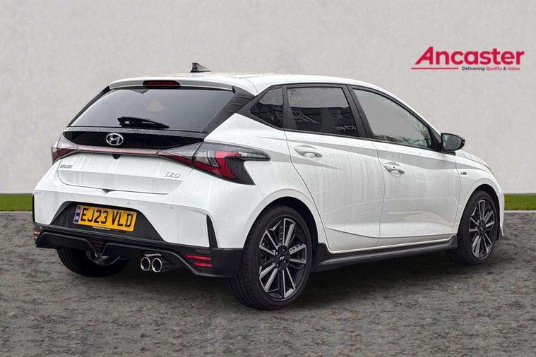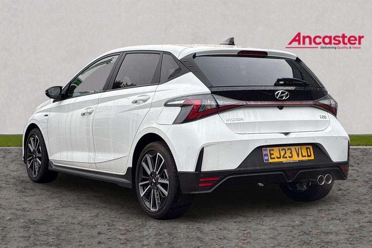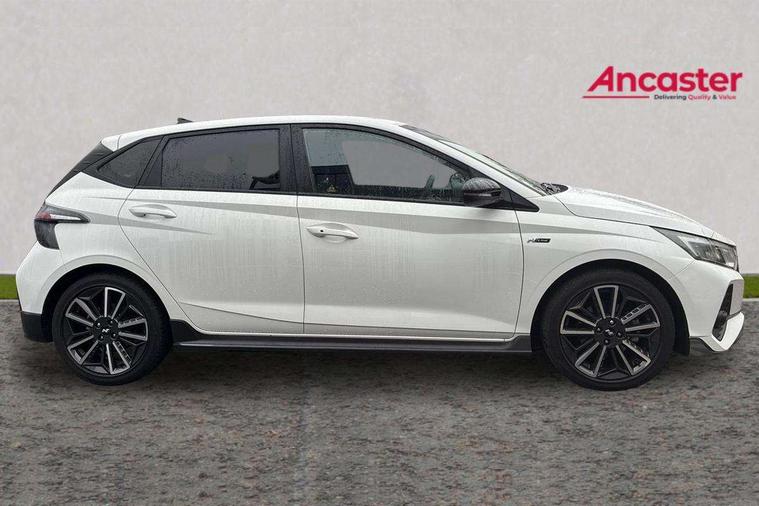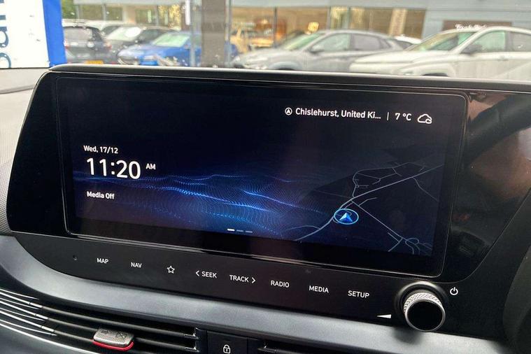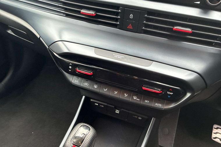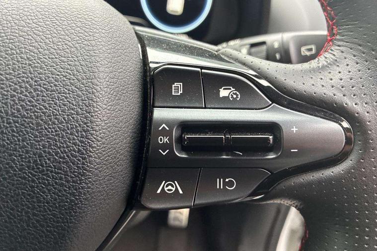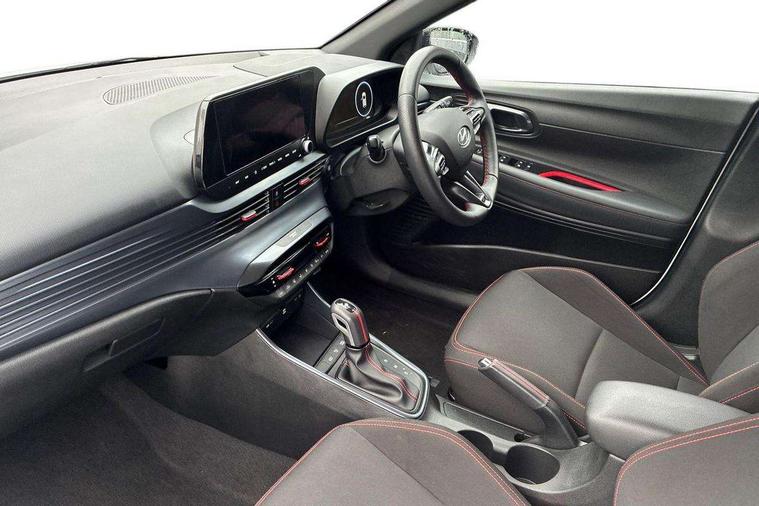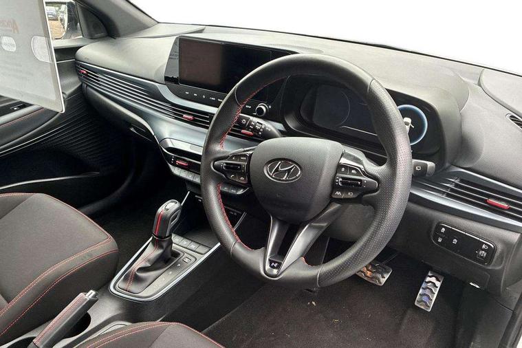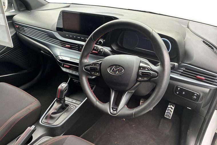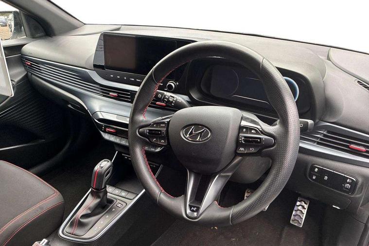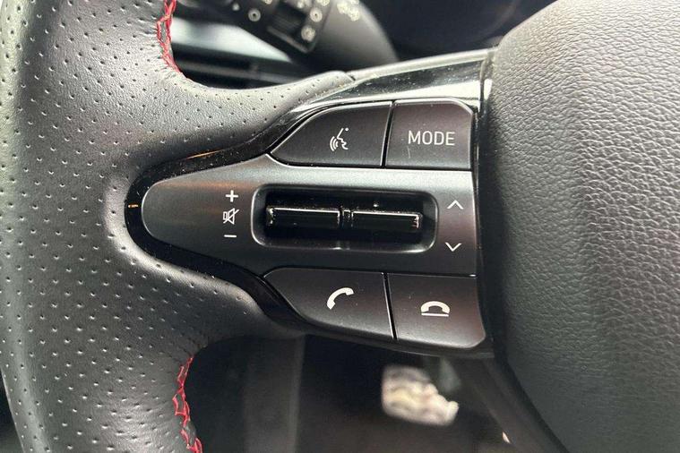 10.25" digital supervision cluster, 10.25" touchscreen centre console display satellite navigation including traffic messaging channel, map care and live services, Apple car play/Android Auto, Bluetooth connectivity with voice recognition, Cruise control + speed limiter, Drive mode selector, Driver alert system, eCall emergency call system, Electric power steering, Emergency stop signalling system, Forward collision assist with pedestrian monitoring and cycle detection, Haptic steering, Lane departure warning system, Lane keep assist, Rear parking sensor, Rear view camera, Trip computer, Vehicle Stability Control (VSC), 6 speakers (2 front, 2 tweeters, 2 rear), Auxiliary input socket, DAB Digital radio, Steering wheel mounted audio/telephone controls, USB connection, Adjustable intermittent front windscreen wipers with aero wiper blade, Auto dimming rear view mirror, Automatic defog system for front windscreen, Automatic headlights with dusk sensor, Automatic windscreen wipers with rain sensor, Black window surrounds, Body colour door mirrors with integrated indicators, Body colour exterior door handles, Body coloured bumpers, Drivers one touch up/down with anti-trap, Electric adjustable heated door mirrors, Electric folding door mirrors, Electric front windows, Electric rear windows, Front fog lights, High beam assist, LED rear combination lights, MFR - LED headlights, N line body kit bumpers, N Line exclusive gloss black radiator grille, Privacy glass - Rear windows and tailgate, Rear dual exhaust muffler, Rear side wing doors, Rear spoiler with integrated LED brake light, Rear Windscreen Wiper - Intermittent Function, Shark fin antenna, Signature LED daytime running lights integrated into headlamp, Static Cornering lights, Tinted windows, 12v power outlet - front, 3 seat bench in 2nd row, 60/40 split folding rear seat, Adjustable head restraints, Black roof liner, Blue interior mood lighting, Climate control, Driver/passenger sunvisors and illuminated vanity mirrors, Front armrest with storage box, Front map reading lights, Height adjustable driver's seat, Height/reach adjustable steering column, Isofix rear child seat preparation, Leather wrapped gear knob with N logo, Leather wrapped steering wheel with N logo, Luggage board, Luggage compartment lighting, N Line cloth trim with red stitching, Parcel shelf, Satin chrome interior door handles, Single front passenger seat, 3x3 point rear seatbelts, Anti-lock brake system (ABS), Autonomous emergency braking, Childproof rear door locks, Curtain airbags, Driver/Front Passenger airbags, ESP, Fasten seatbelt reminder, Front seatbelt pretensioners, Front side airbags, Height adjustable front seatbelts, Hill start assist control (HAC), Impact sensing auto door unlocking, Passenger airbag deactivate switch, Tyre pressure monitoring system, Deadlocks, Immobiliser, Locking wheel nuts, Perimeter alarm, Remote central locking, Smart key with keyless entry and engine start/stop button, Speed sensitive auto door locking, Black N line exclusive with red accents, 17" N Line exclusive design alloy wheels, Michelin Tyre brand, Tyre repair kit,